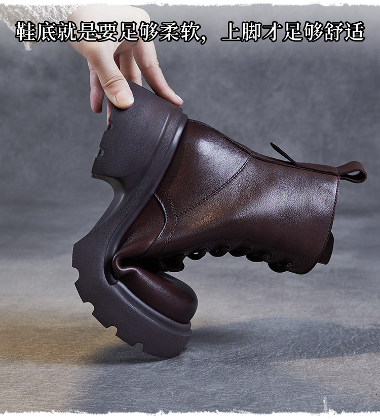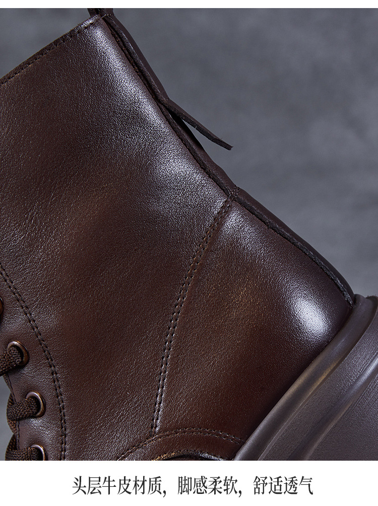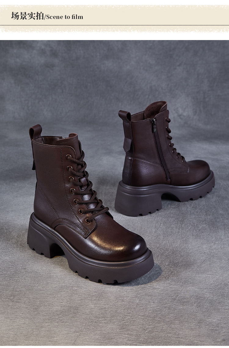 정품 가죽 플랫폼 마틴 부츠 여성 영국 스타일 발목 부츠 2024 가을 및 겨울 새로운 첫 번째 레이어 Cowhide 여성 신발 경량 싱글 부츠