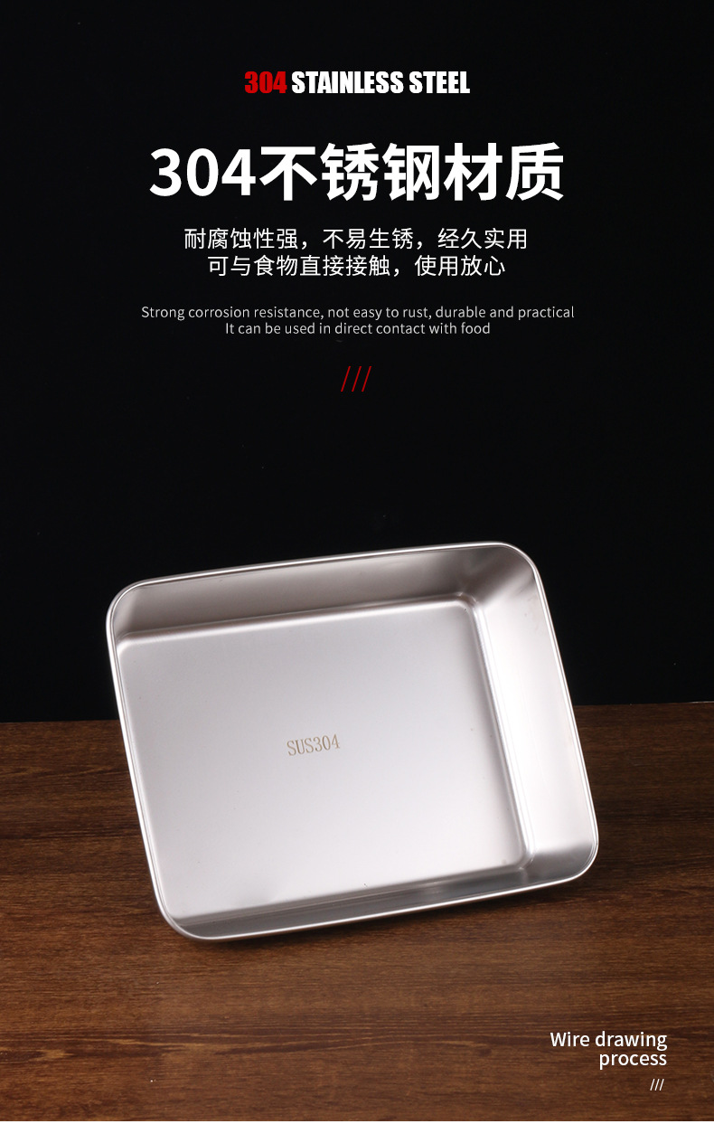 두꺼운 304 평평한 바닥 플레이트 스퀘어 플레이트 다목적 플레이트 콜드 혼합 플레이트 트레이 스테이 플레이트 아이언 라이스 플레이트 핫 팟 요리 피크닉