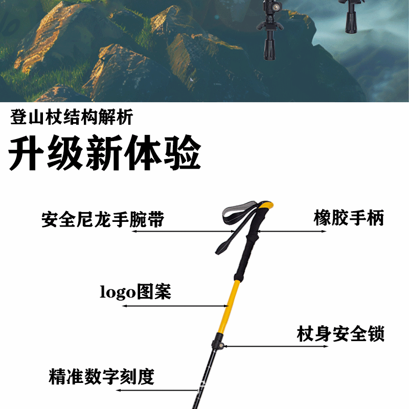 야외 하이킹 스틱 워킹 스틱 알루미늄 합금 접이식 등반 스틱 전문 야외 망원경 외부 잠금 하이킹 울트라 라이트 워킹 스틱스토어 가기