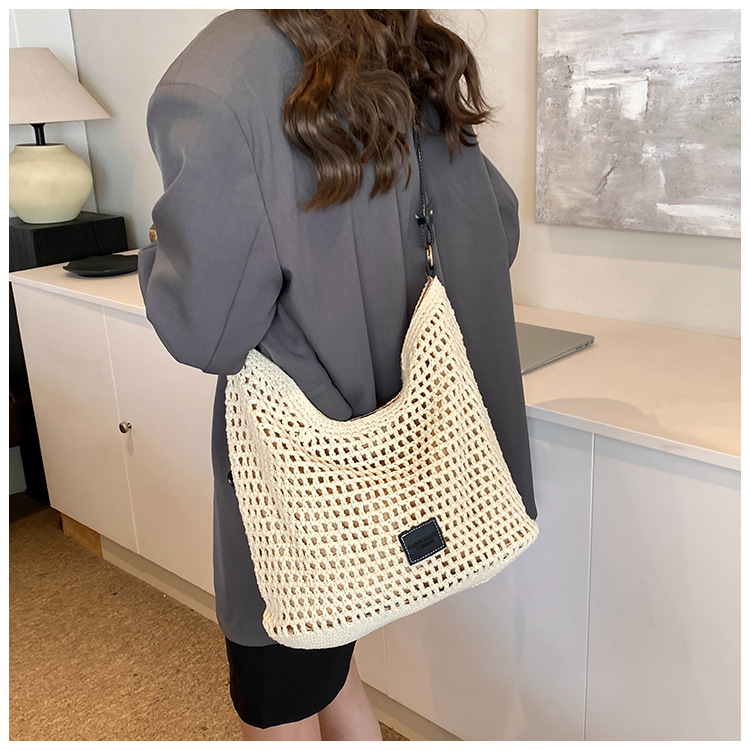 해변 휴가용 여성용 비치 니트 가방 2026 신상 펀칭 니트 핸드백 대용량 숄더/겨드랑이백스토어 가기