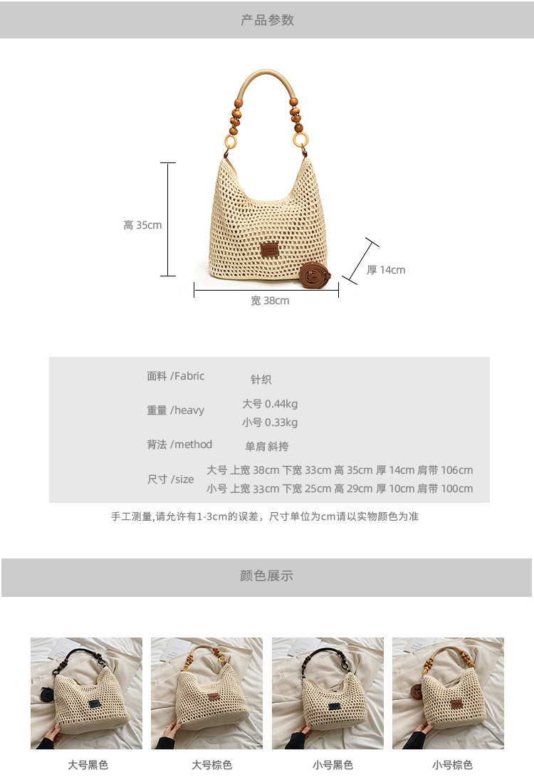 해변 휴가용 여성용 비치 니트 가방 2026 신상 펀칭 니트 핸드백 대용량 숄더/겨드랑이백