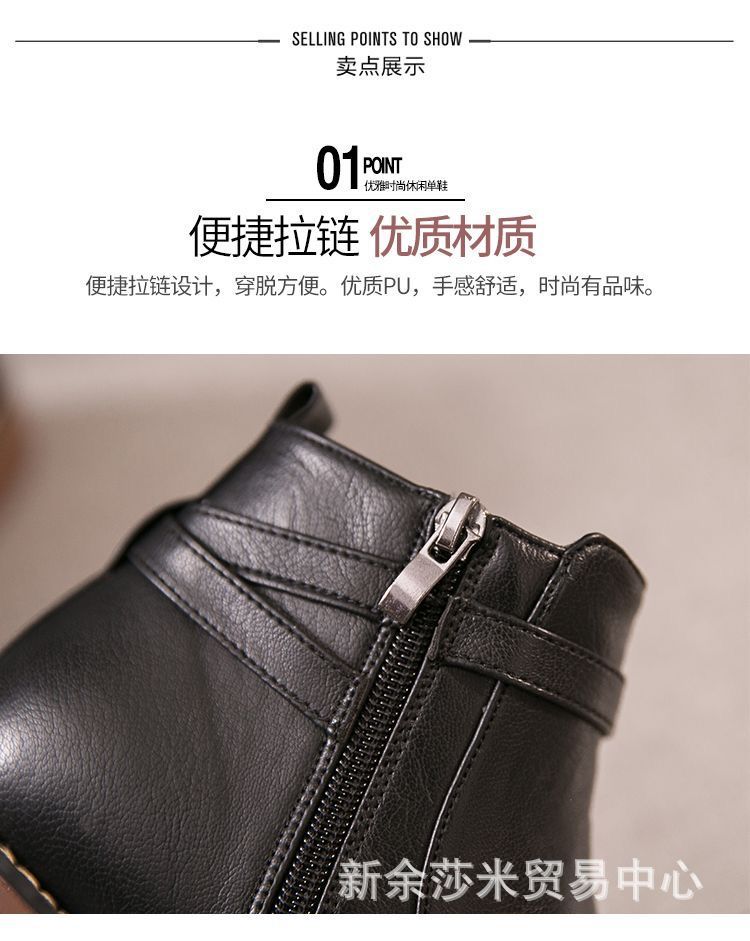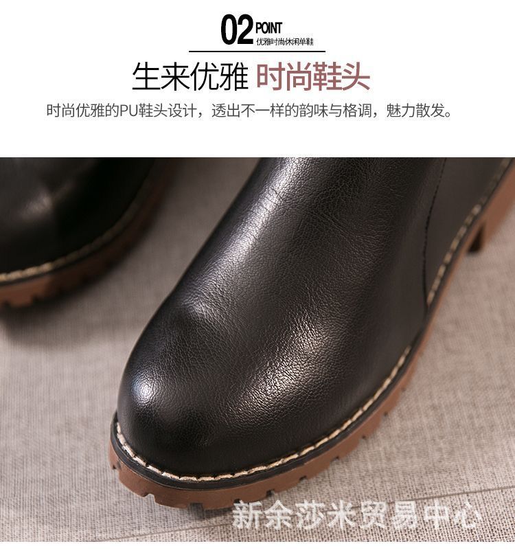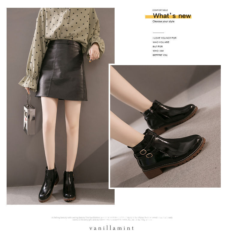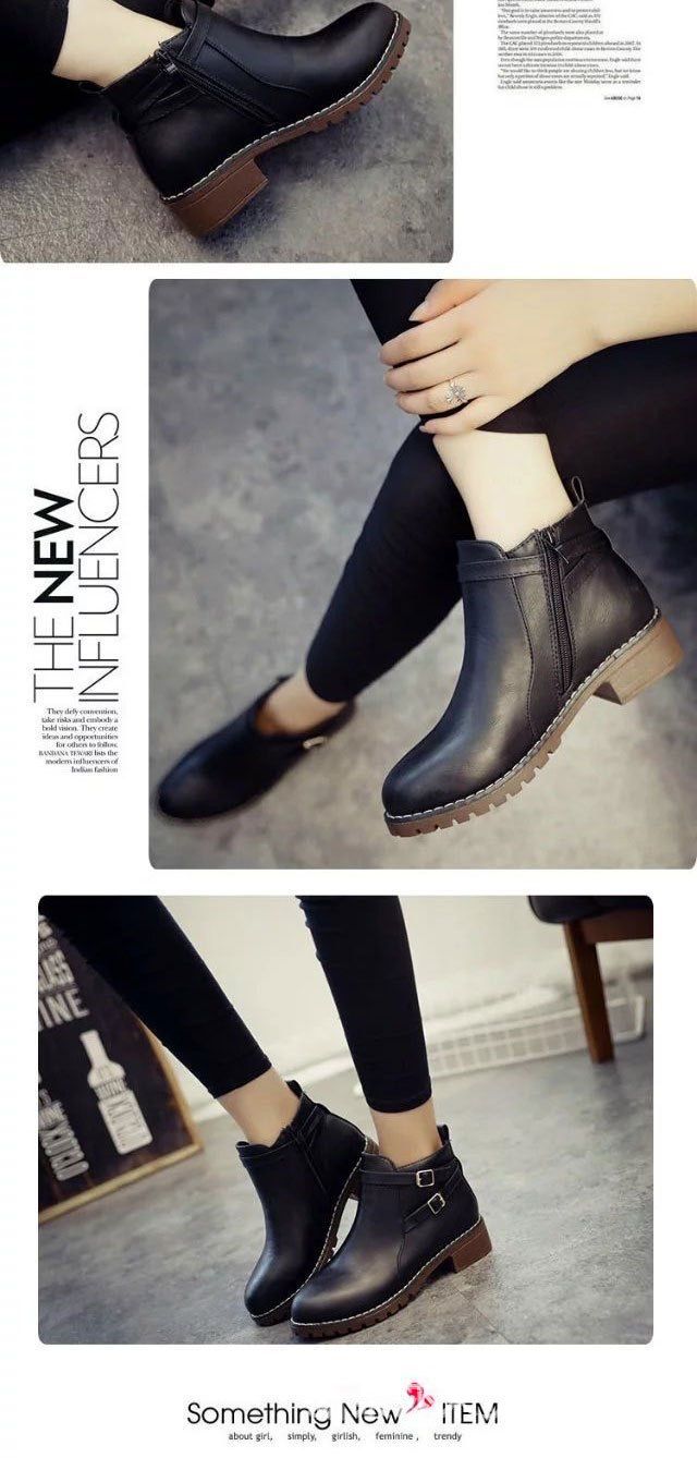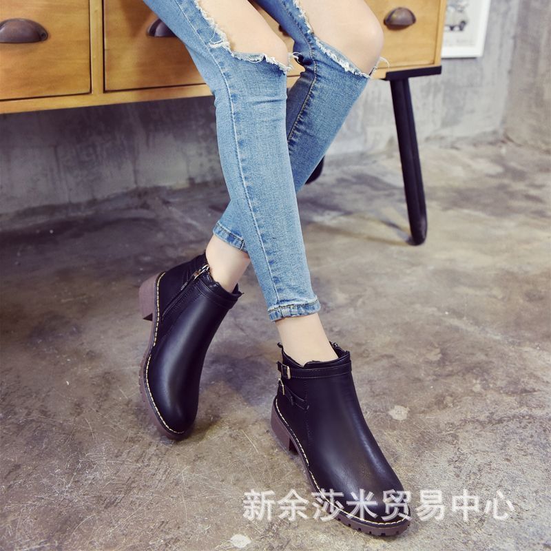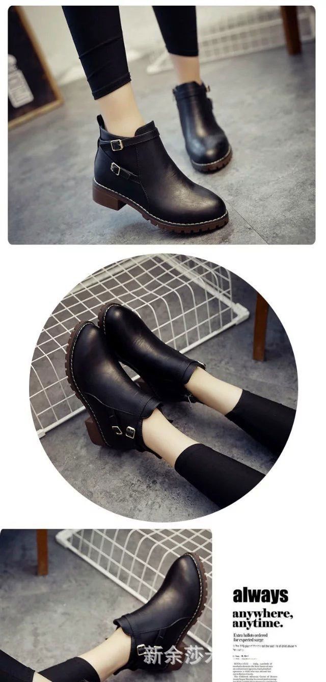 국경 간 마틴 부츠 가을 2024 유럽과 미국 스타일의 새로운 라운드 헤드 중간 두꺼운 힐 패션 벨트 버클 단색 낮은 부츠스토어 가기