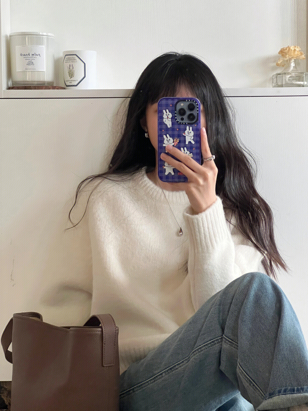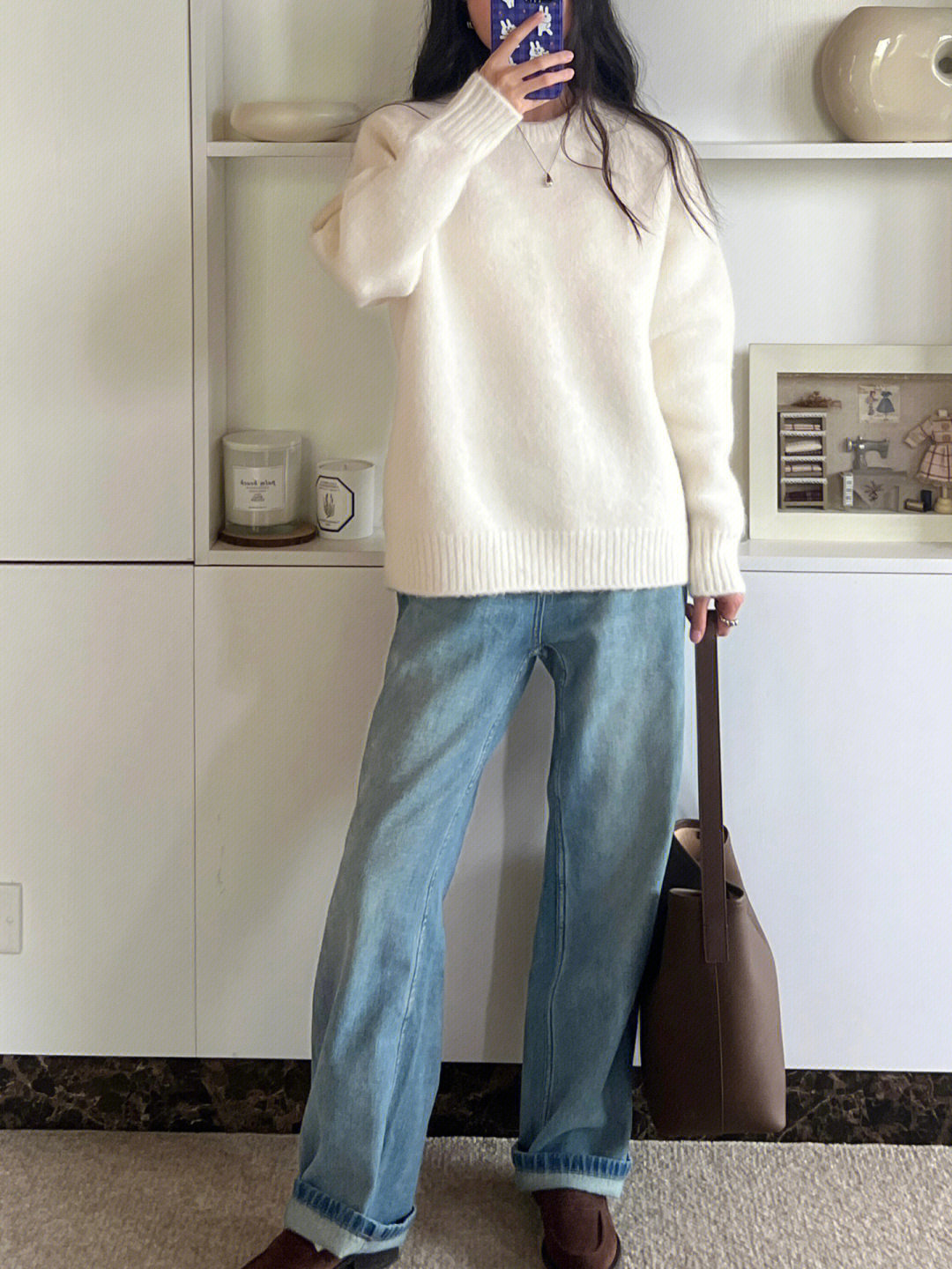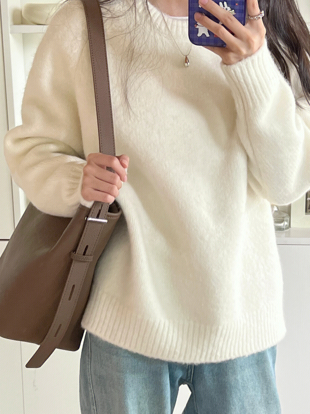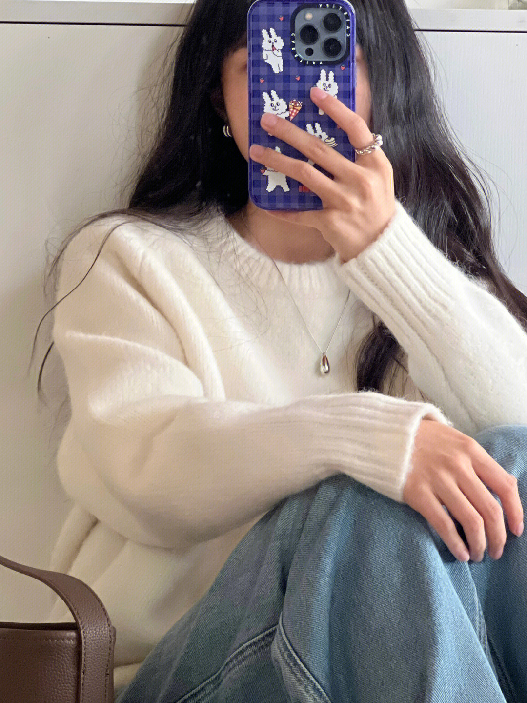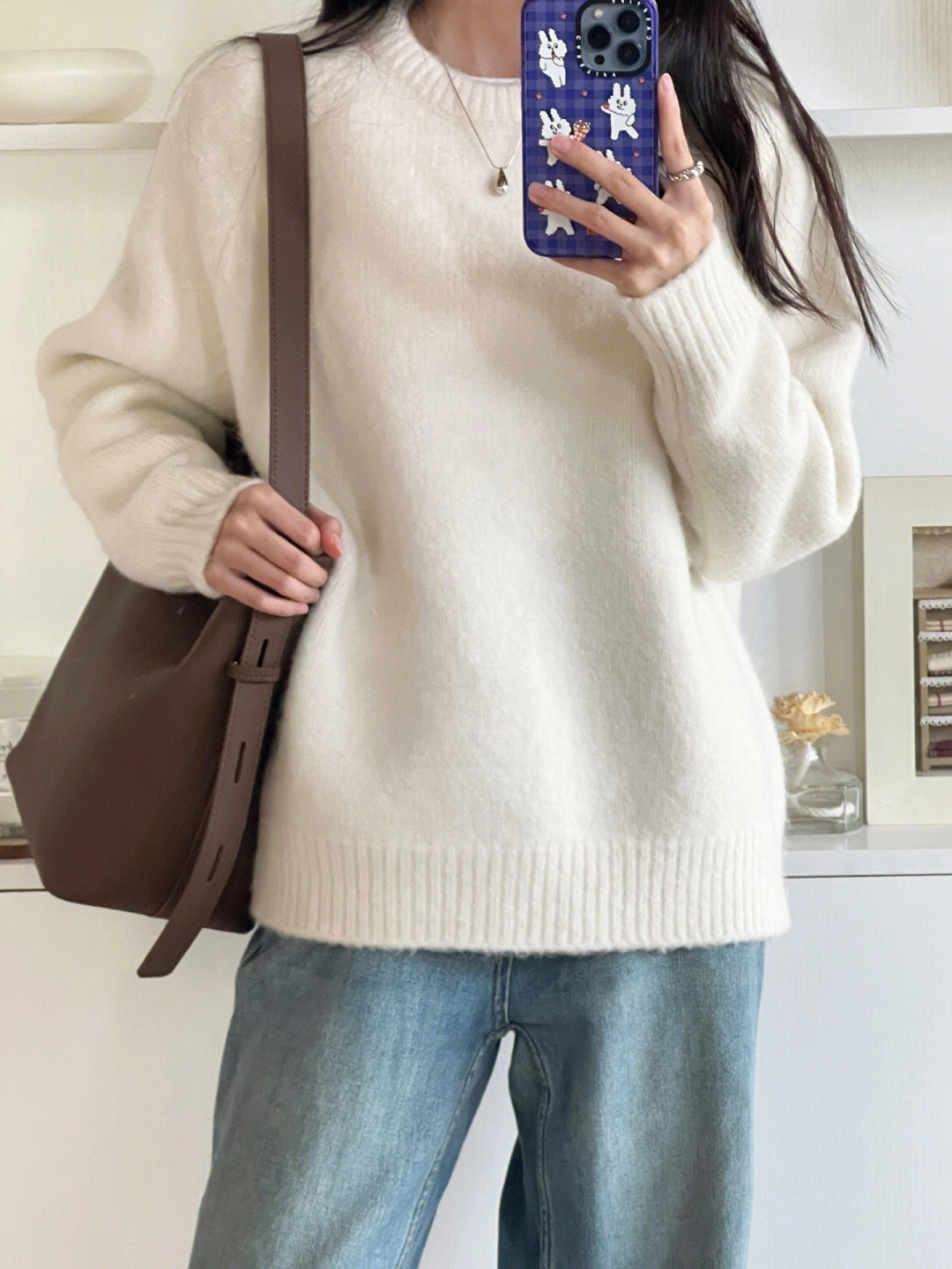 2024 가을과 겨울을위한 새로운 도착 게으른 스타일 밀크 화이트 스웨터 여성의 느슨한 두꺼운 스웨터 탑
