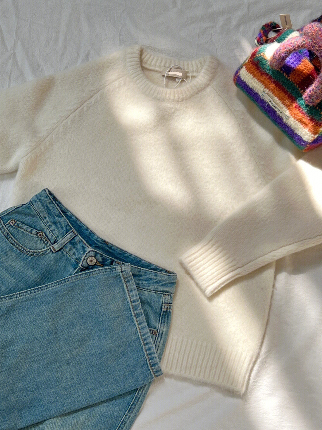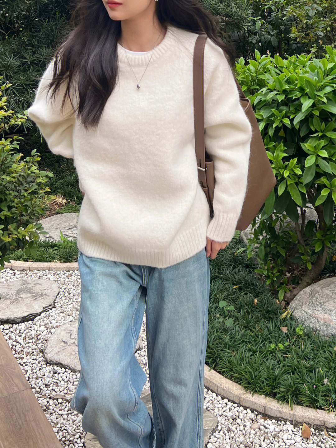 2024新款小个子慵懒风奶fufu白色毛衣女秋冬季宽松加厚针织衫上衣