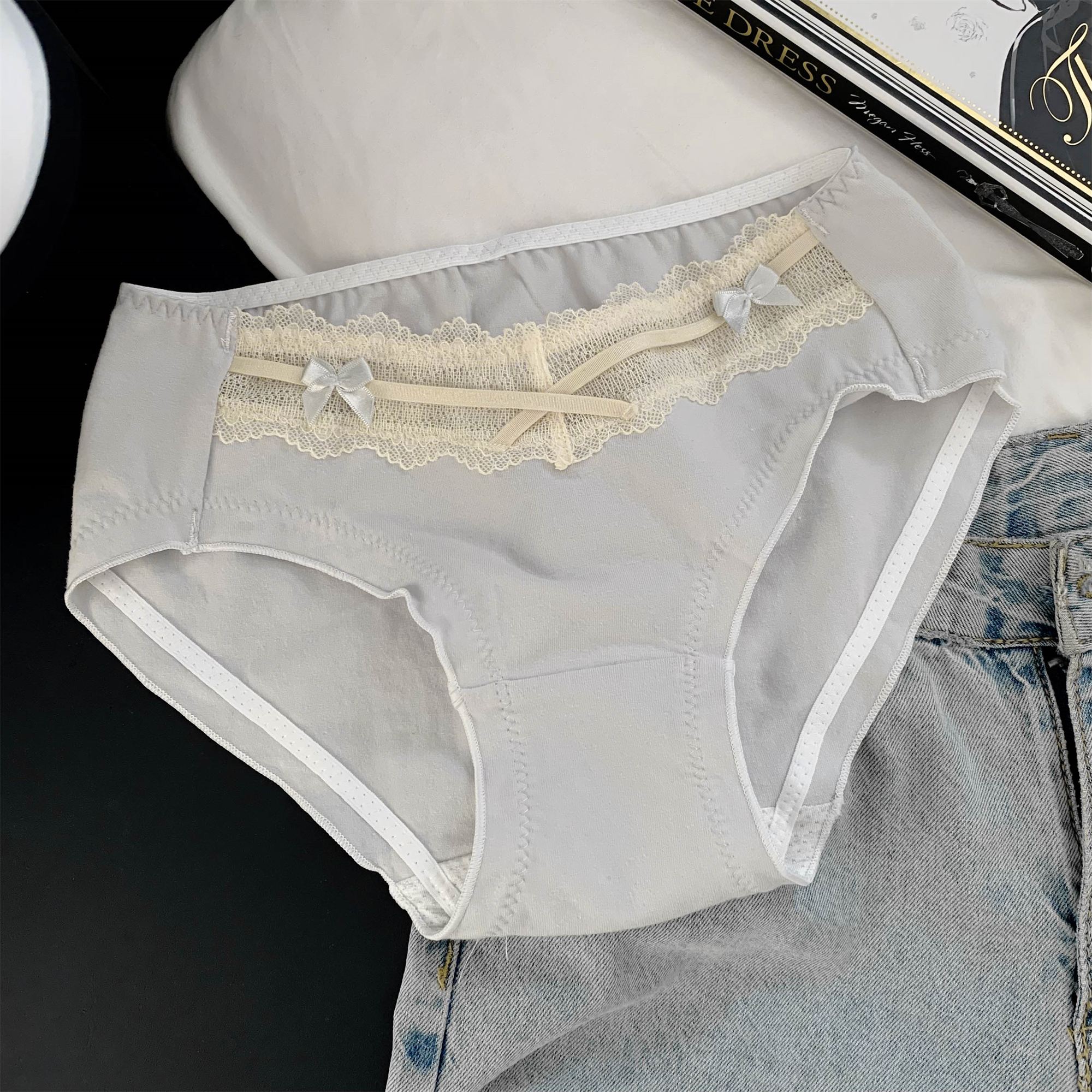 화이트 티 소녀 ~ 프랑스 스타일 레이디 스위트 레이스 순수한 섹시한 소녀 항균 속옷 여성의 2024 새로운 스타일스토어 가기