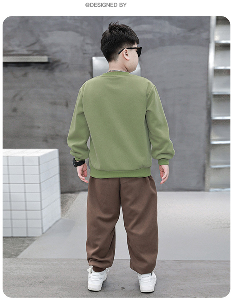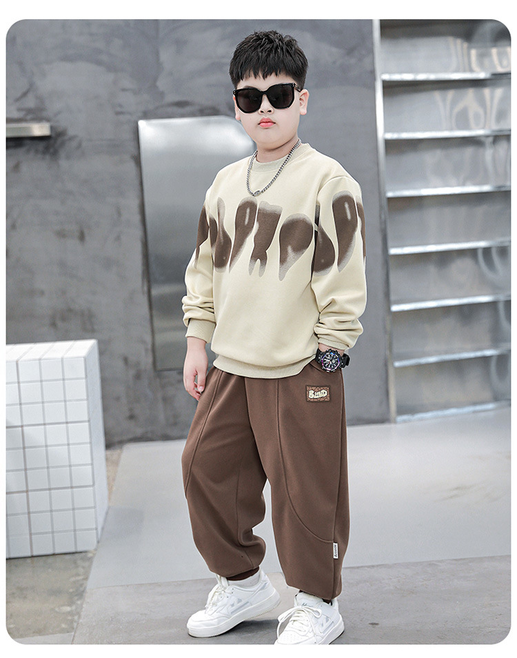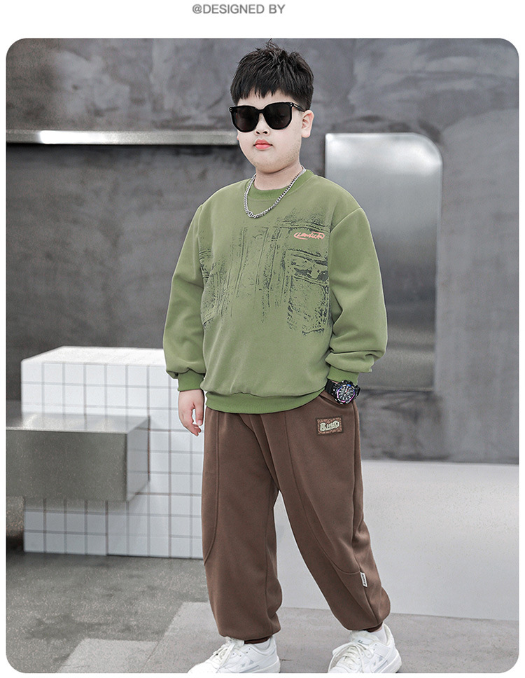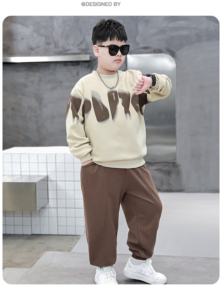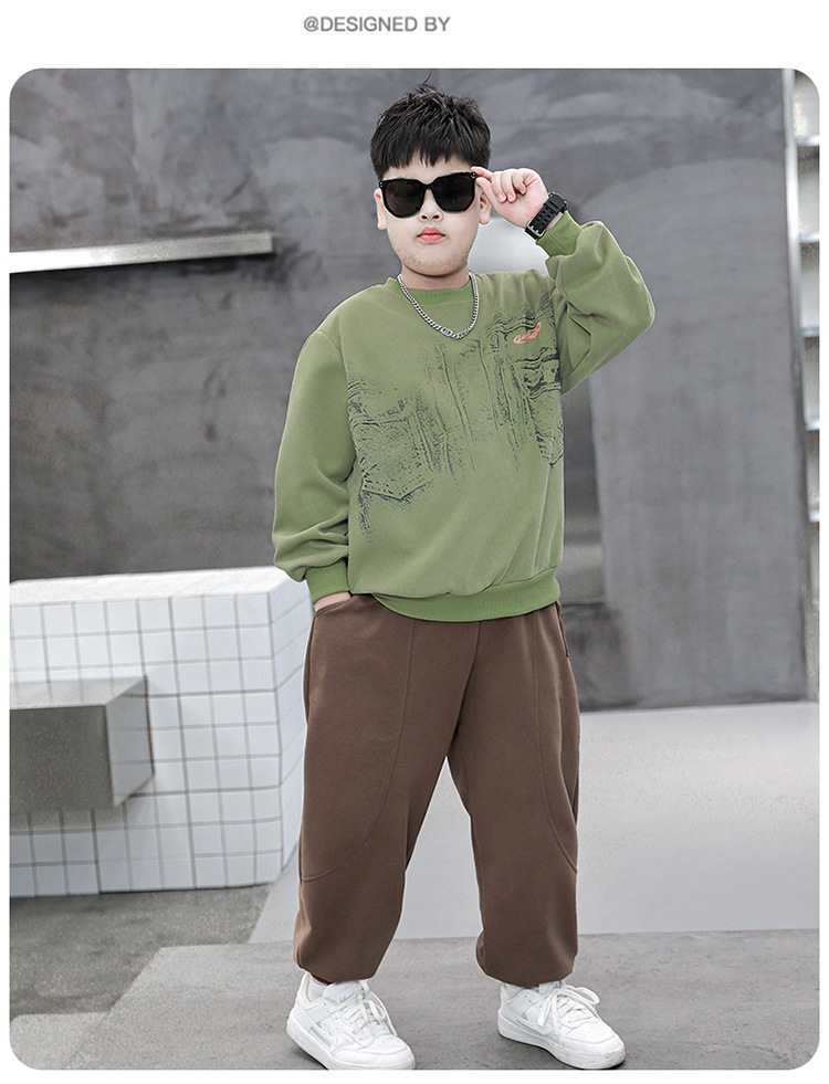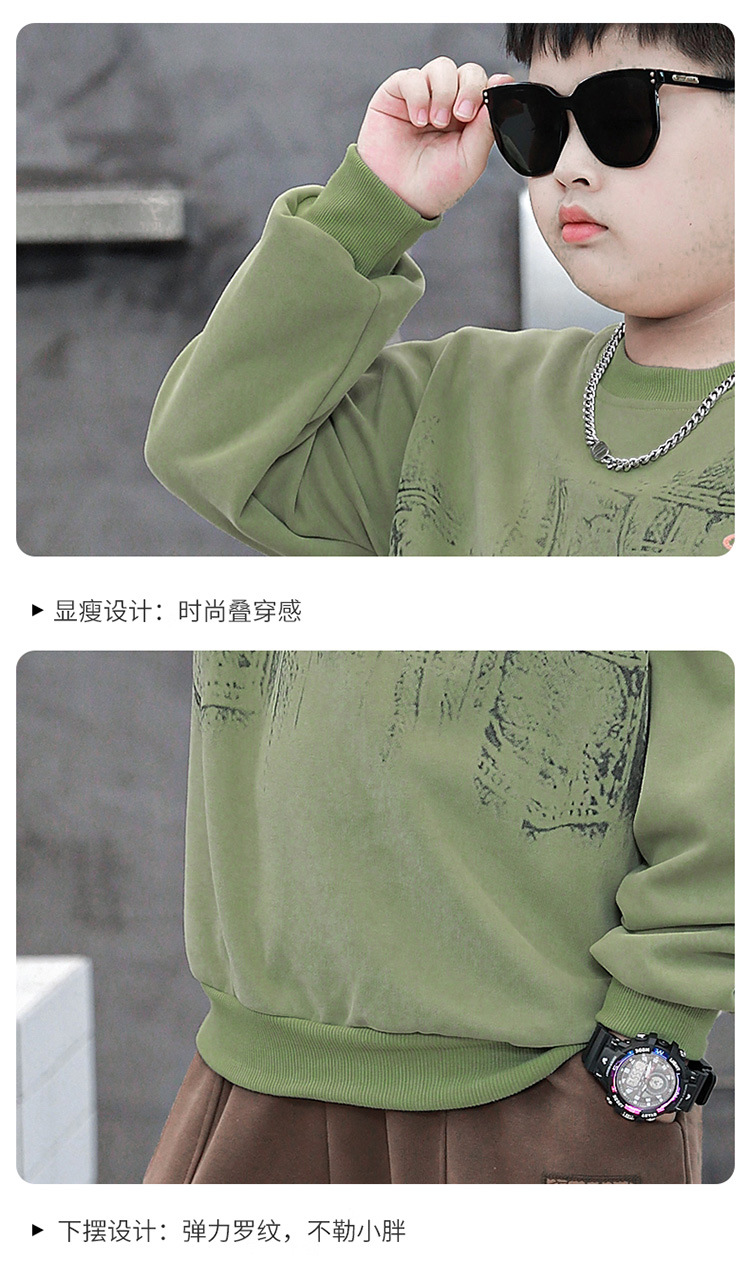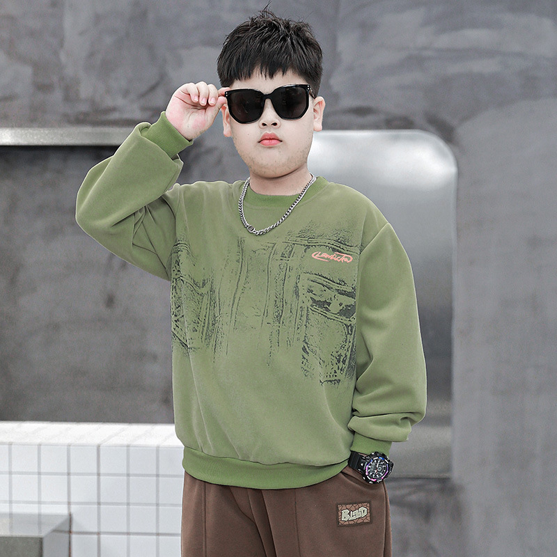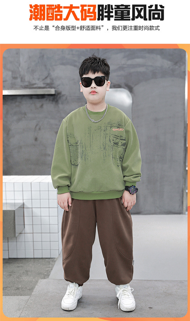 2024 봄 및 가을 새로운 중대형 어린이 면화베이스 셔츠 어린이 스포츠 탑 트렌디 플러스 사이즈 뚱뚱한 소년 운동복