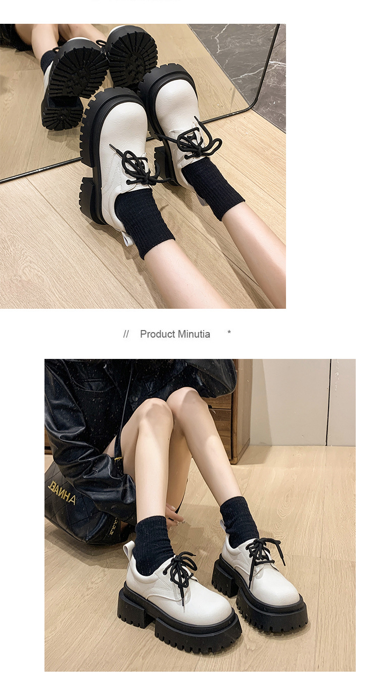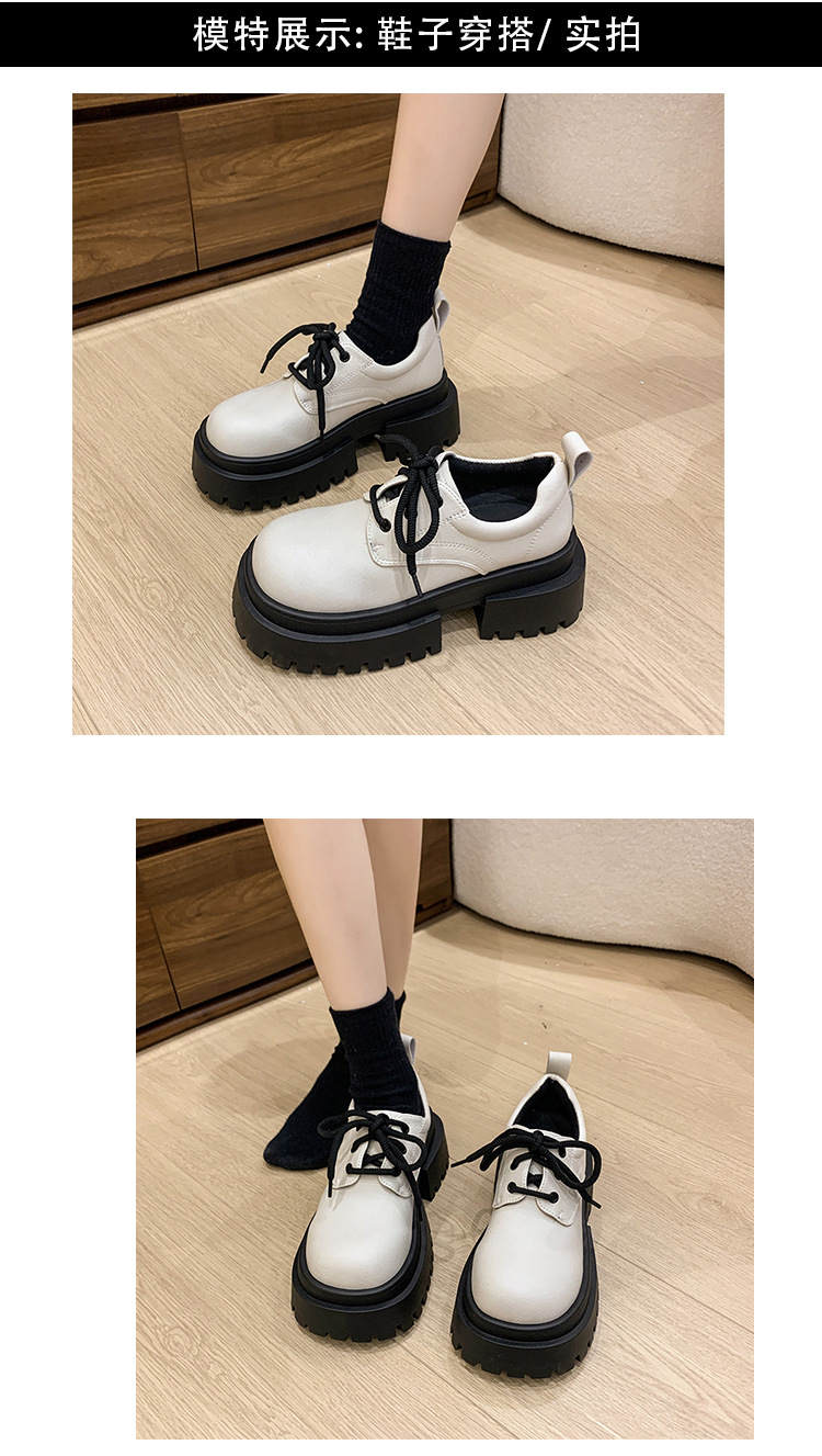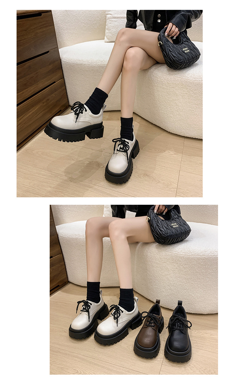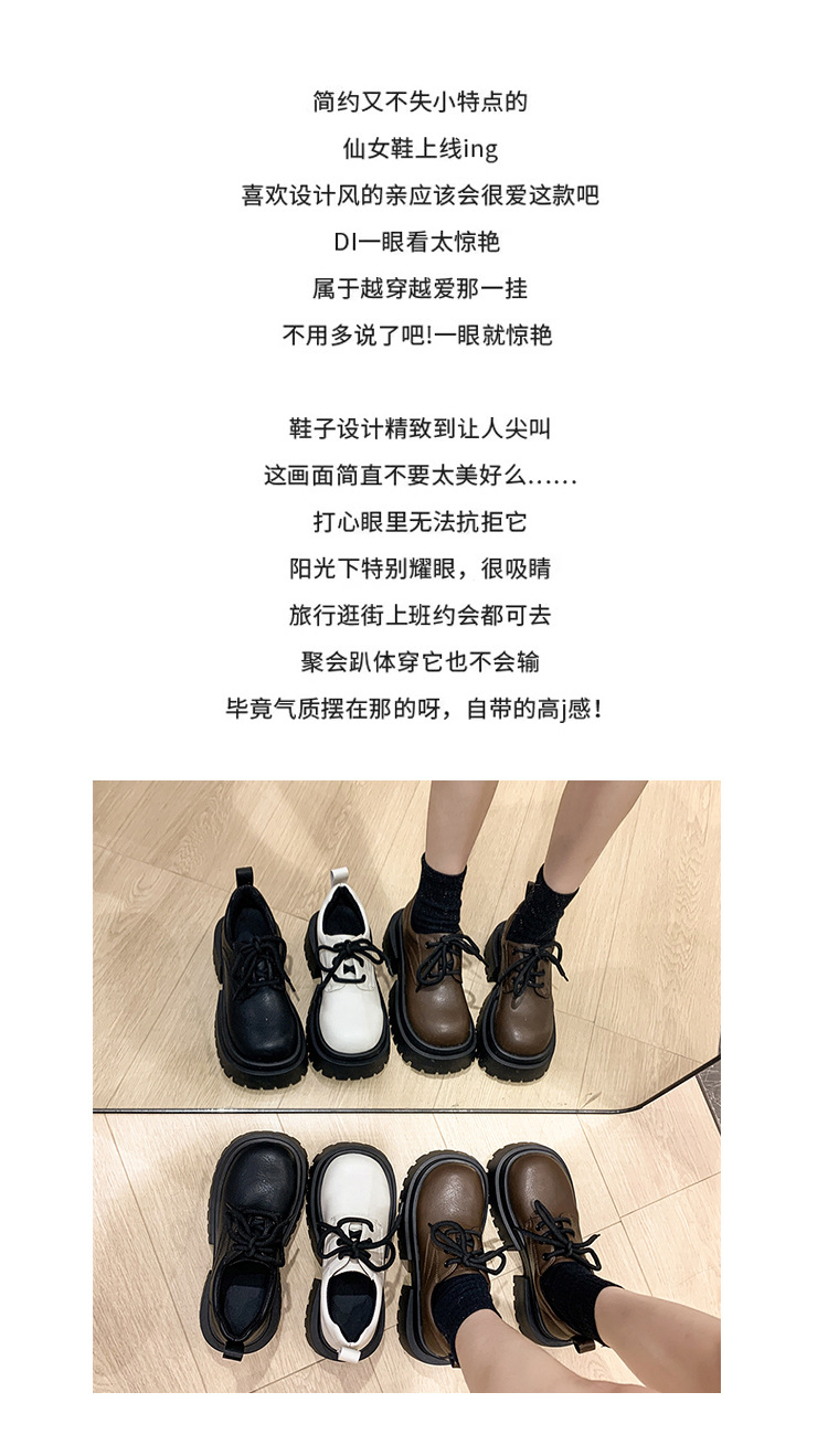 여성용 봄 가을 고급스러운 두꺼운 굽의 가죽 신발 여성용 레이스업 빈티지 스타일 스커트와 어울리는 패션 신발스토어 가기