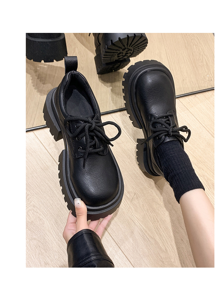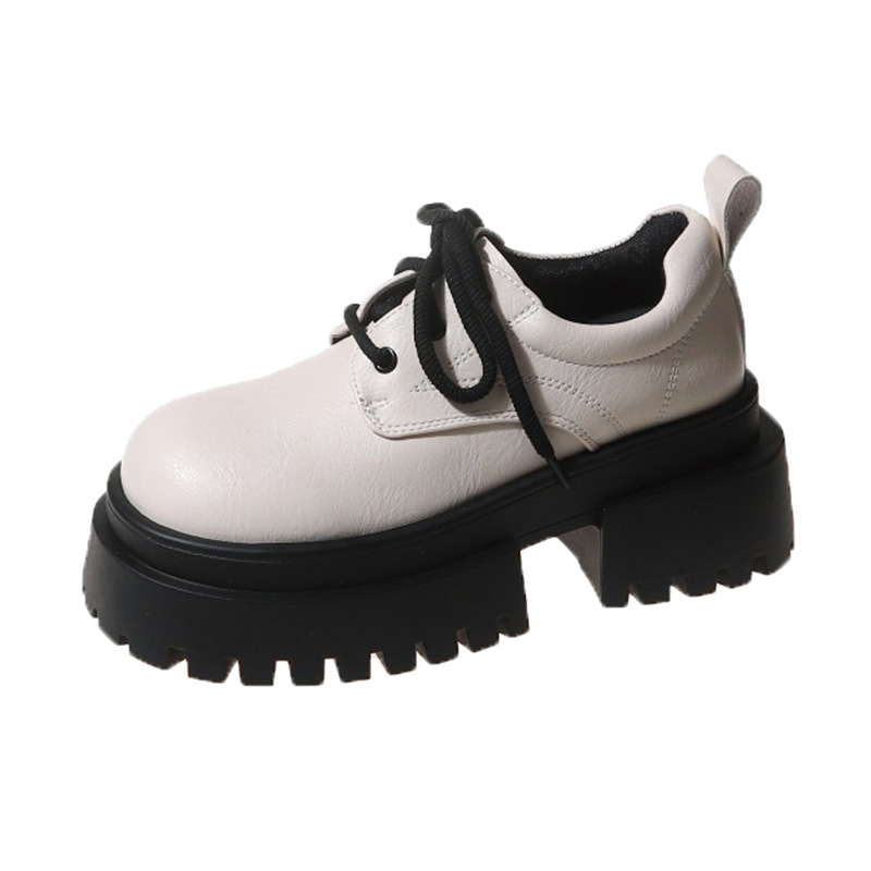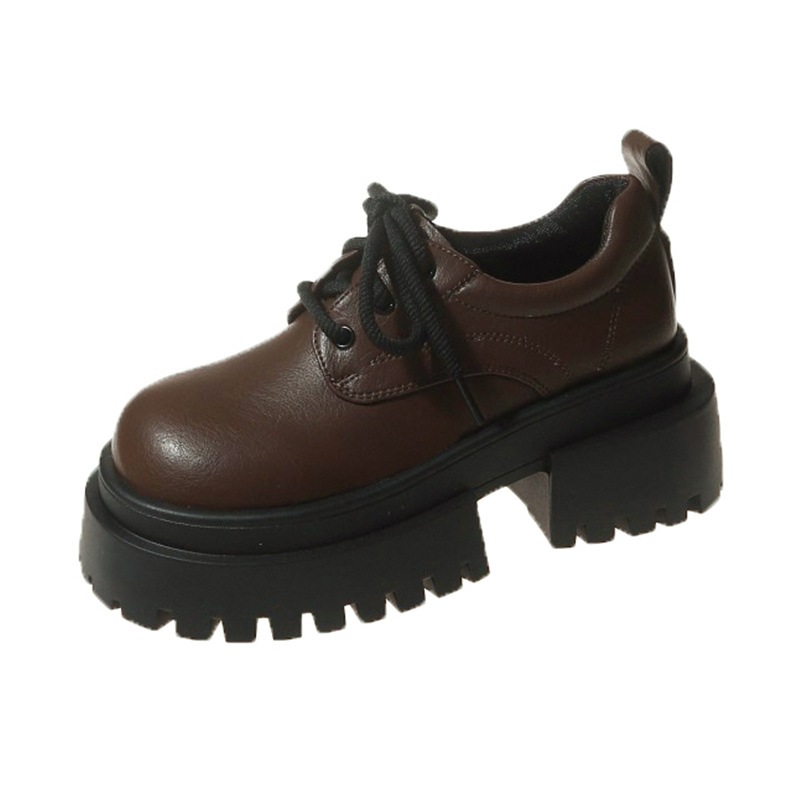 여성용 봄 가을 고급스러운 두꺼운 굽의 가죽 신발 여성용 레이스업 빈티지 스타일 스커트와 어울리는 패션 신발