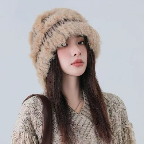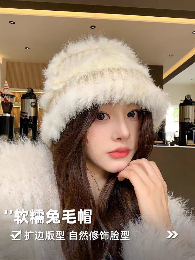 귀여운 곰 귀 푹신한 모자 여성의 겨울 따뜻한 큰 머리 니트 모자 양모 모자 모든 경기 귀 보호 작은 얼굴스토어 가기