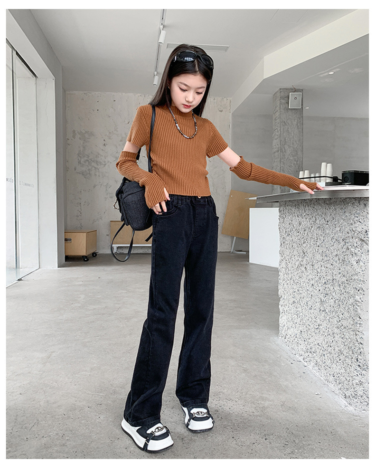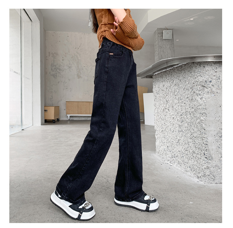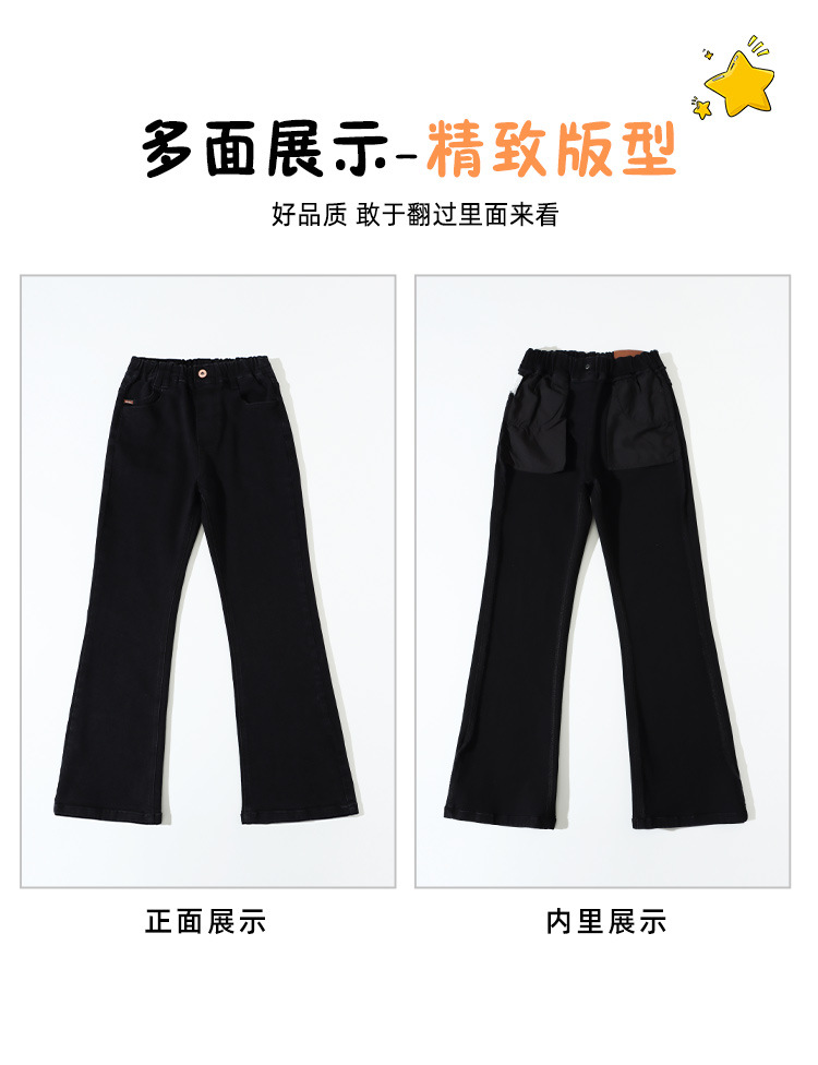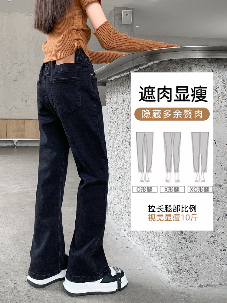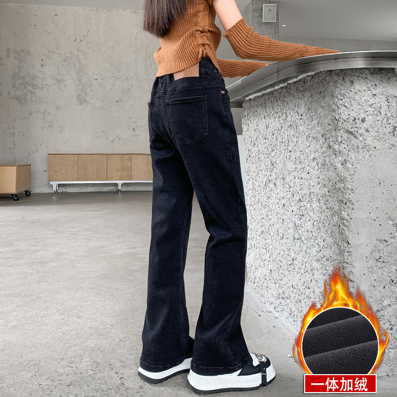 여아 데님 바지 가을 겨울 아동 가을옷 바지 2025 신상 중대형 아동용 플리스 안감 캐주얼 마이크로 플레어 팬츠