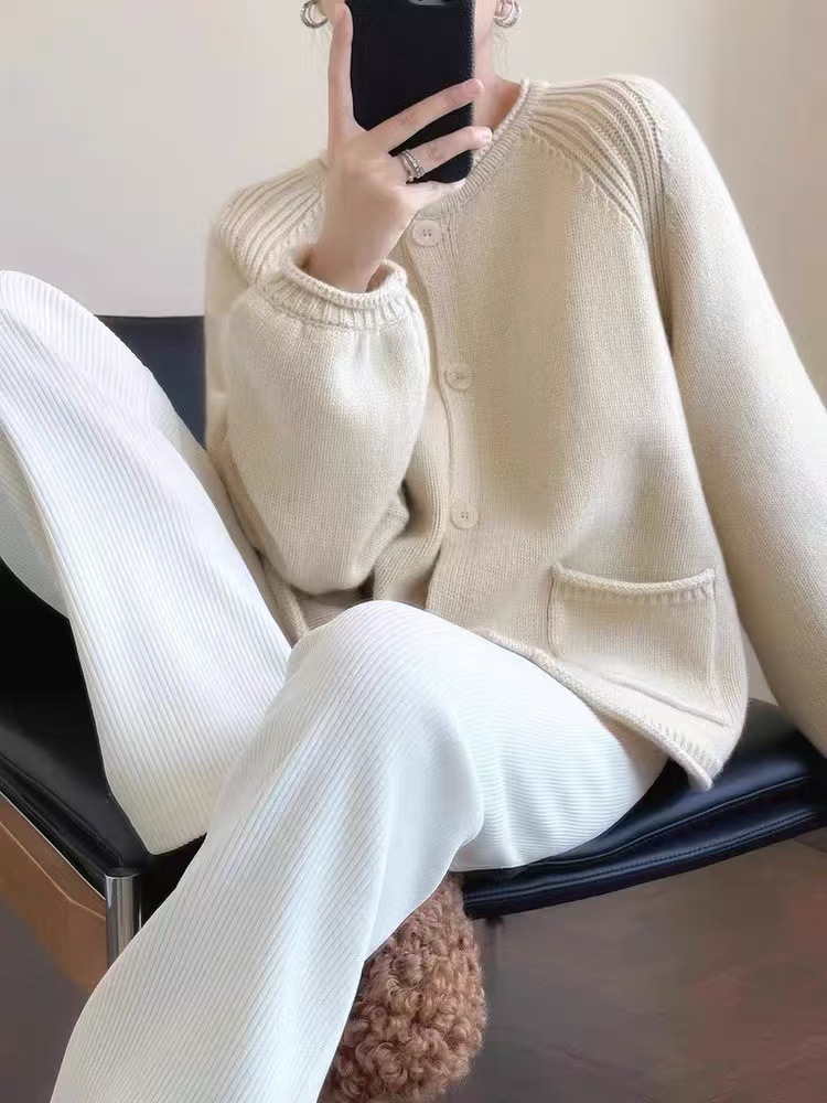 클라인 블루 니트 카디건 스웨터 코트 여성의 이른 봄 느슨한 게으른 스타일 디자인 틈새 랜턴 슬리브 탑