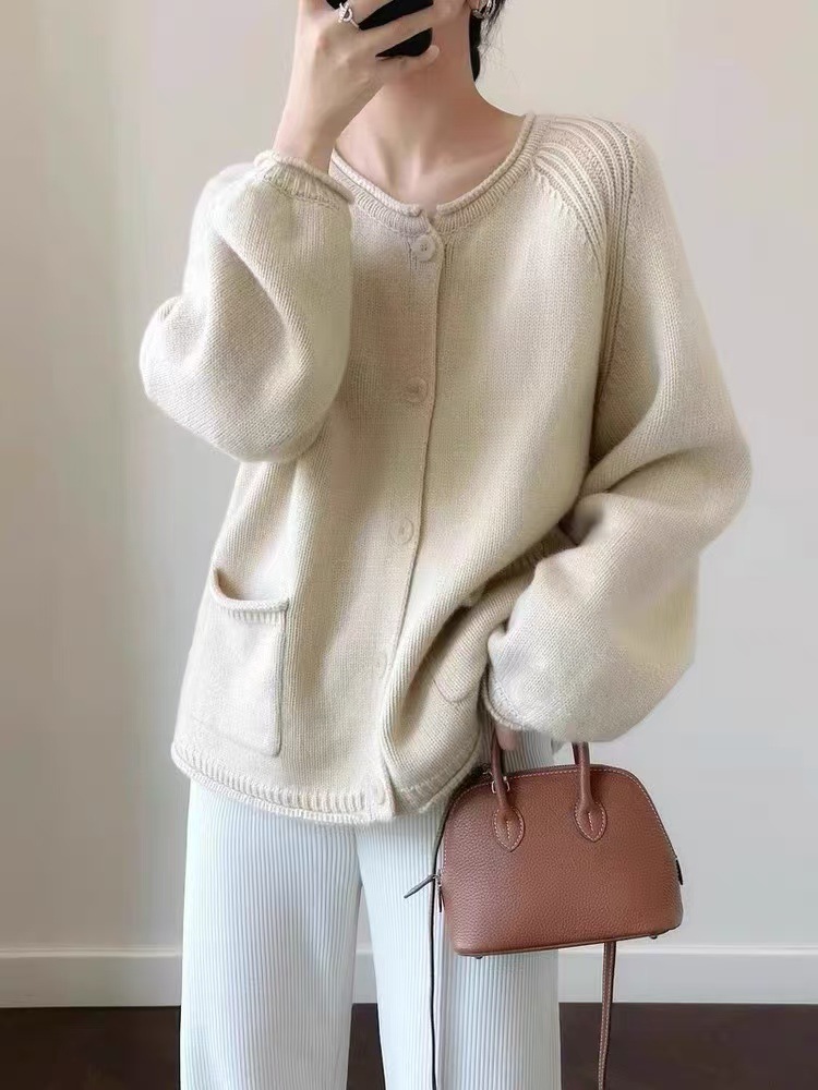 클라인 블루 니트 카디건 스웨터 코트 여성의 이른 봄 느슨한 게으른 스타일 디자인 틈새 랜턴 슬리브 탑스토어 가기