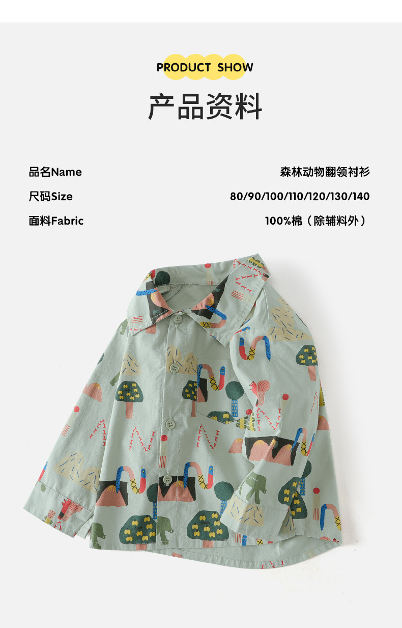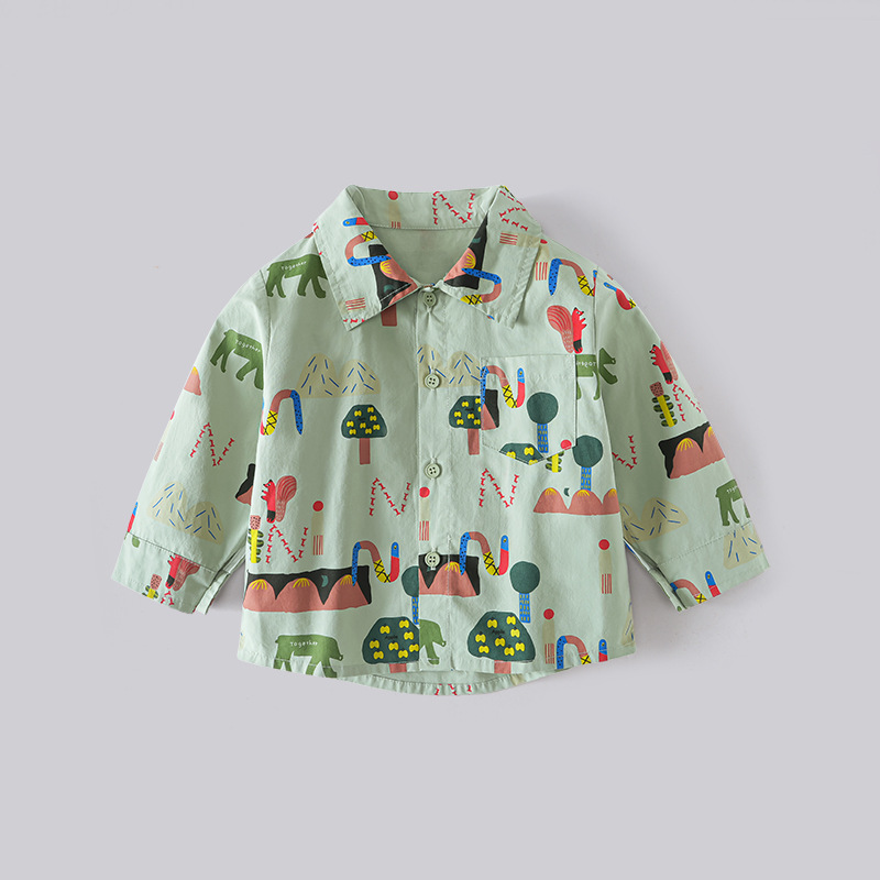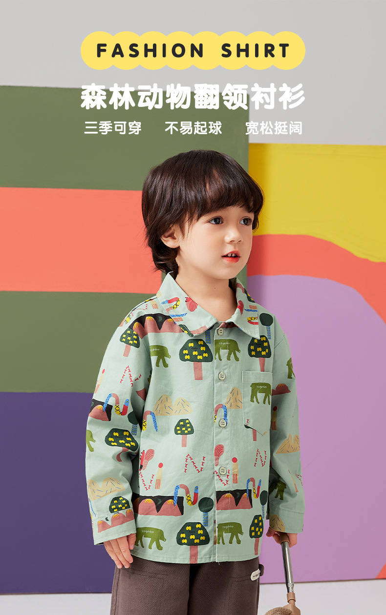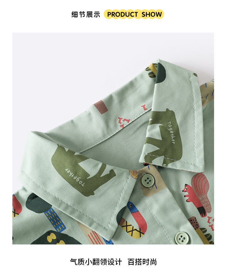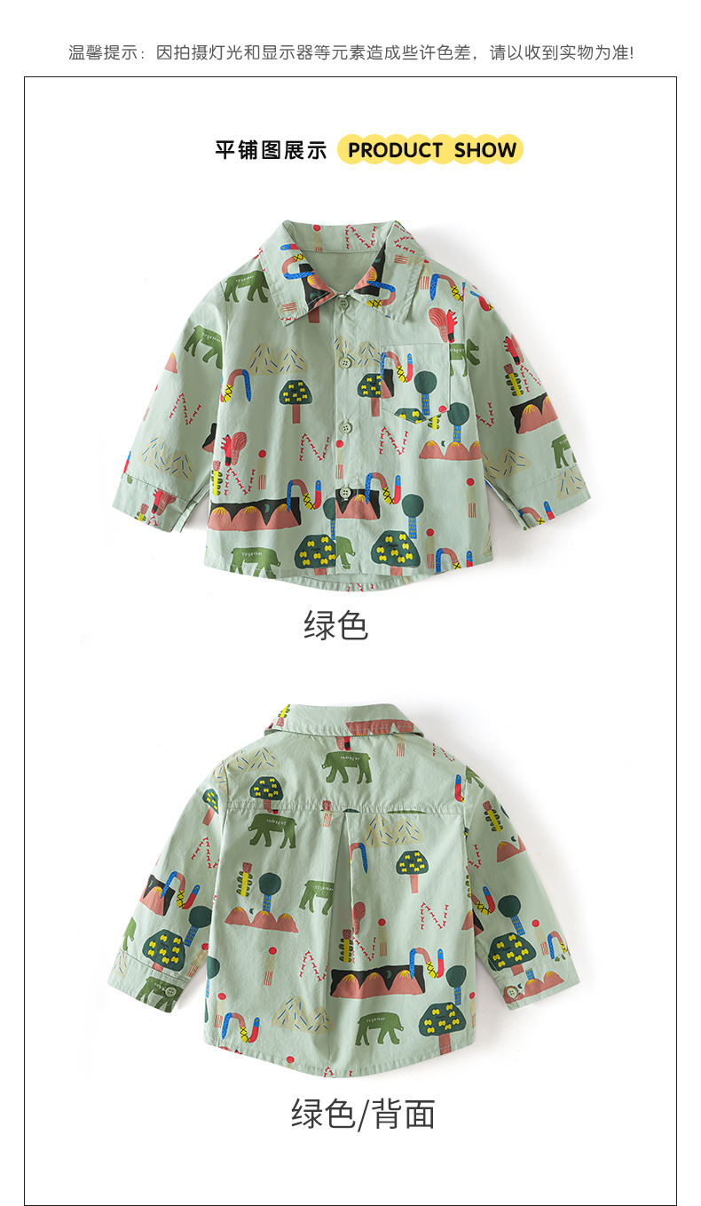 새로운 소년 셔츠 트렌디 한 팬 숲 동물 옷깃 탑 카디건 봄과 가을 얇은 자켓 어린이 긴 소매 셔츠스토어 가기