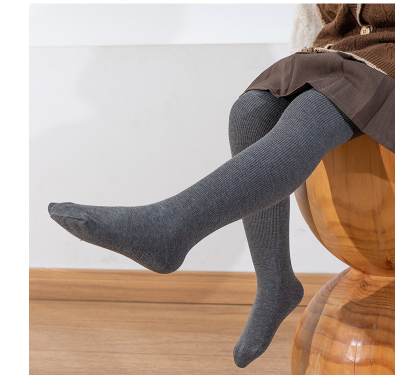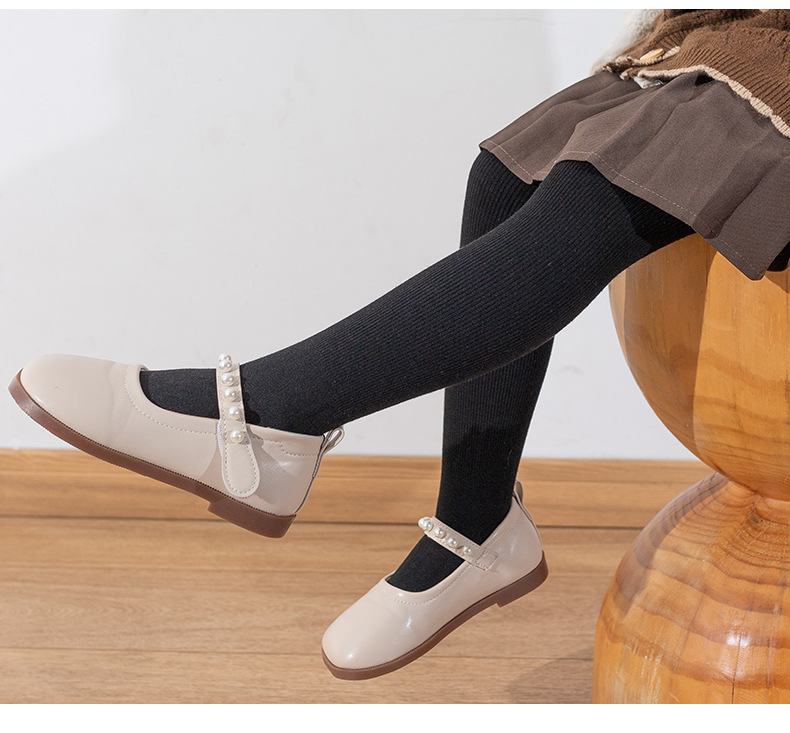 가을과 겨울 새로운 흰색 얇은 벨벳 빛 얇은 세로 줄무늬 어린이 레깅스 단색 기모 따뜻한 소녀 팬티 스타킹