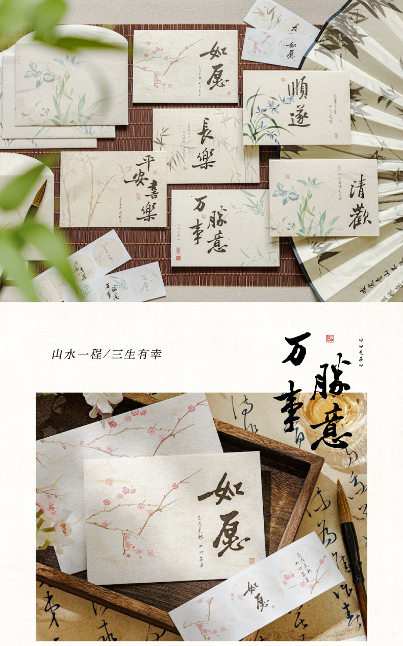 Mo Mo 인사말 카드 봉투 세트 좋은 시즌 시리즈 문학과 예술 국가 스타일 테마 선물 장식 축복 카드 제공스토어 가기