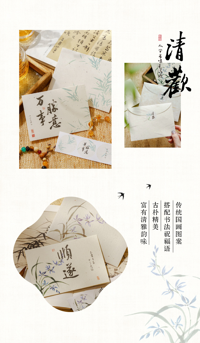 Mo Mo 인사말 카드 봉투 세트 좋은 시즌 시리즈 문학과 예술 국가 스타일 테마 선물 장식 축복 카드 제공
