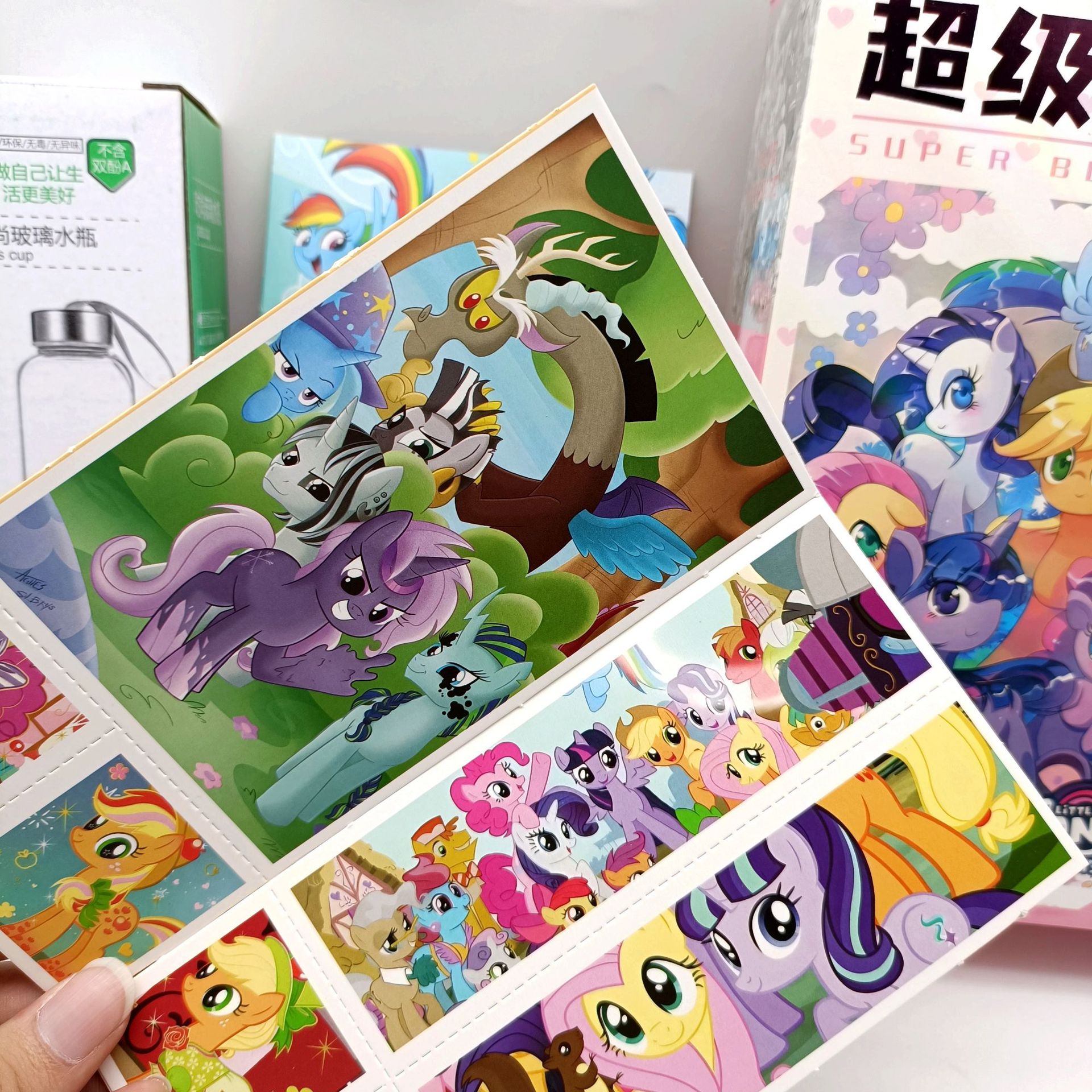 만화 포니 폴리 워터 컵 블라인드 박스 창조적 인 유리 만화 패턴 엽서 그림책 세트 크로스 테두리스토어 가기