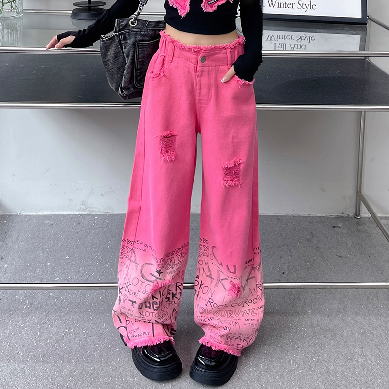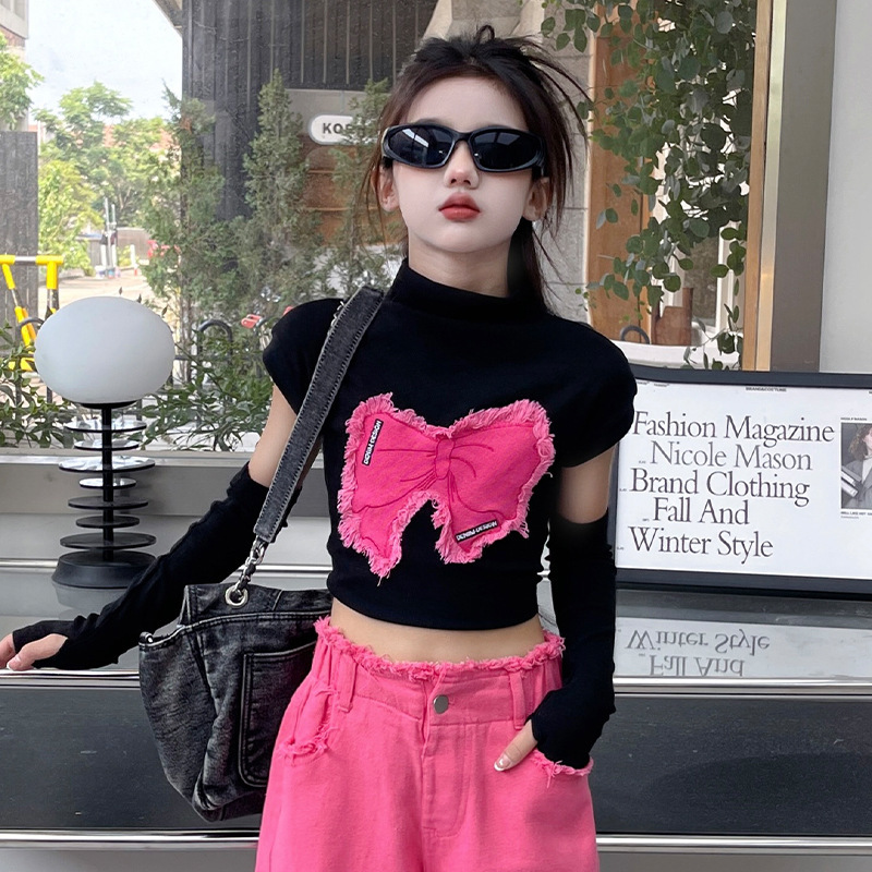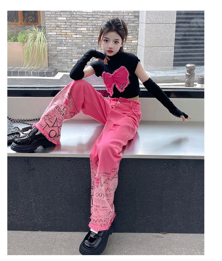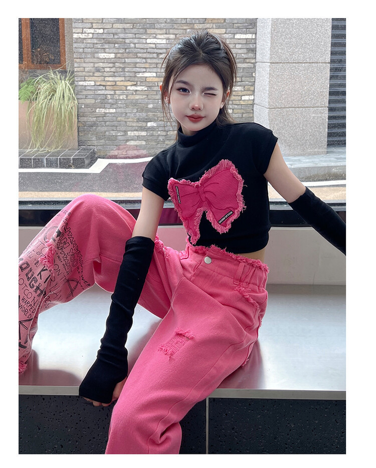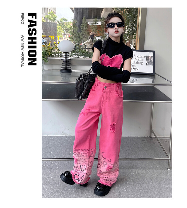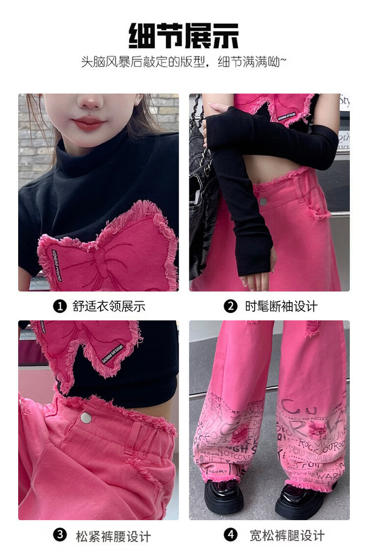 대외 무역 타이드 퀴어 아동복 소녀 점진적 변화 세트 한 팬 Zhong Da 어린이 유행 깨진 소매 티셔츠 와이드 레그 바지 투피스 세트스토어 가기