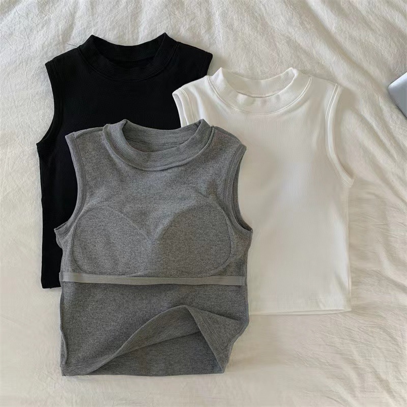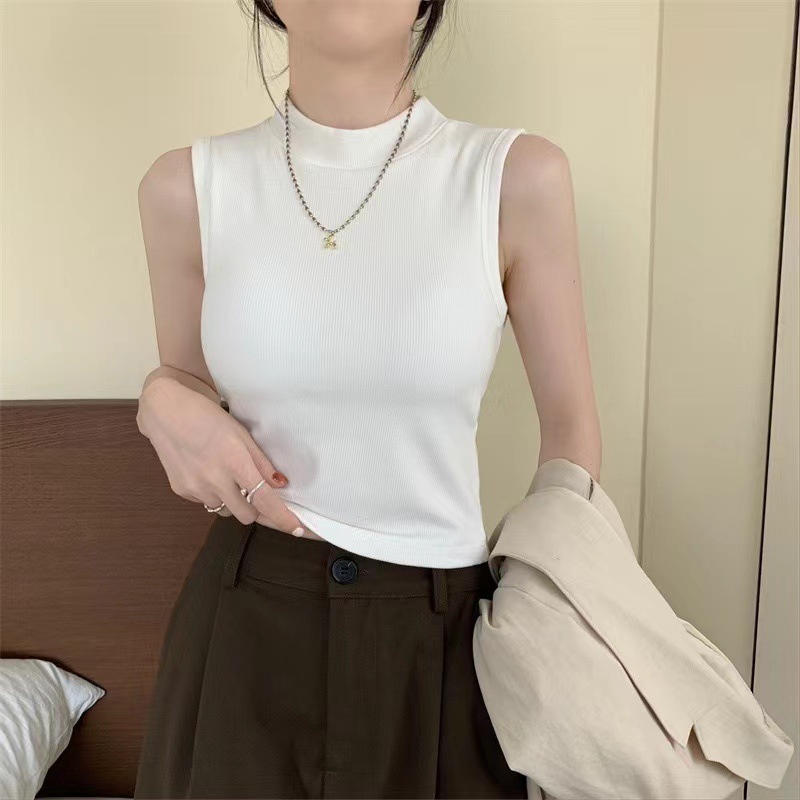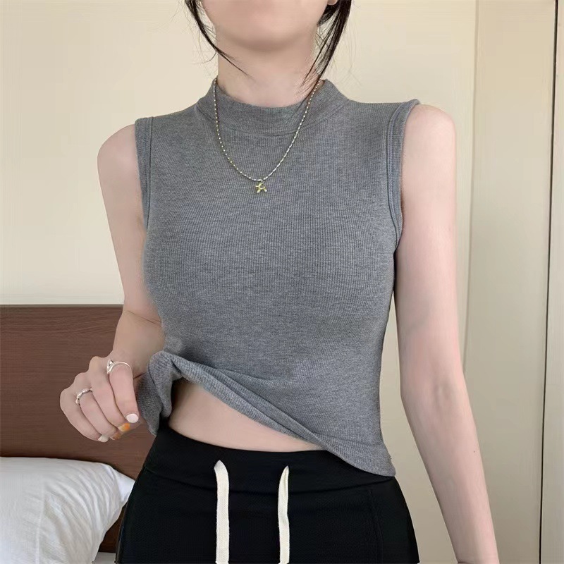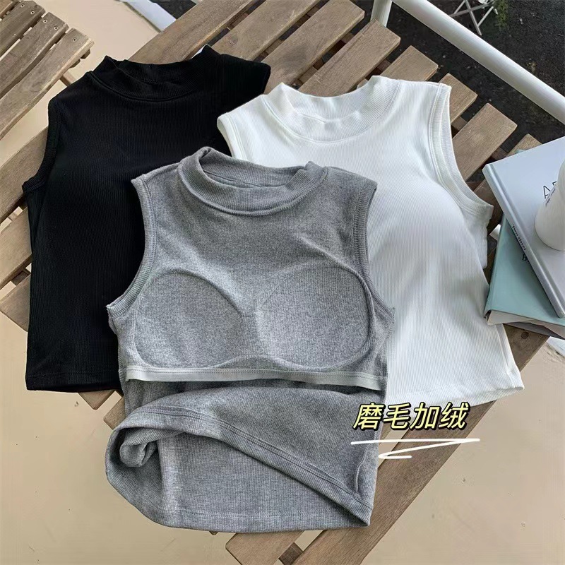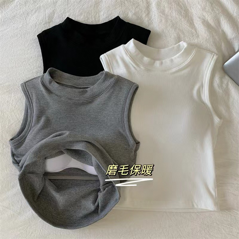 브랜딩 세미 하이 넥 원피스 가슴 패드 소녀 조끼 외부 착용베이스 민소매 가을과 겨울 기모 열 속옷스토어 가기