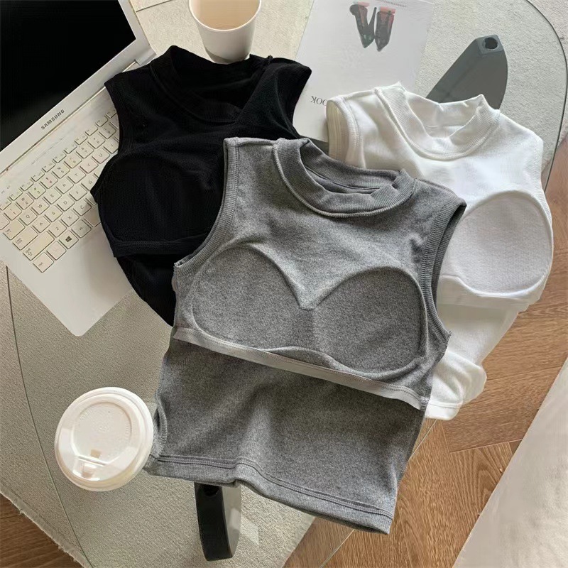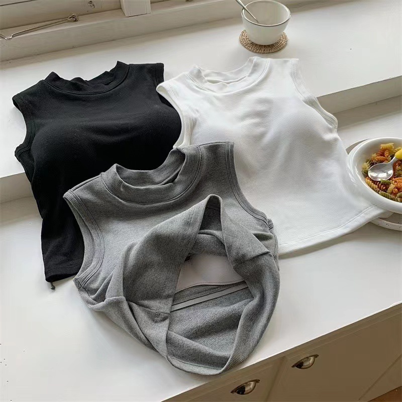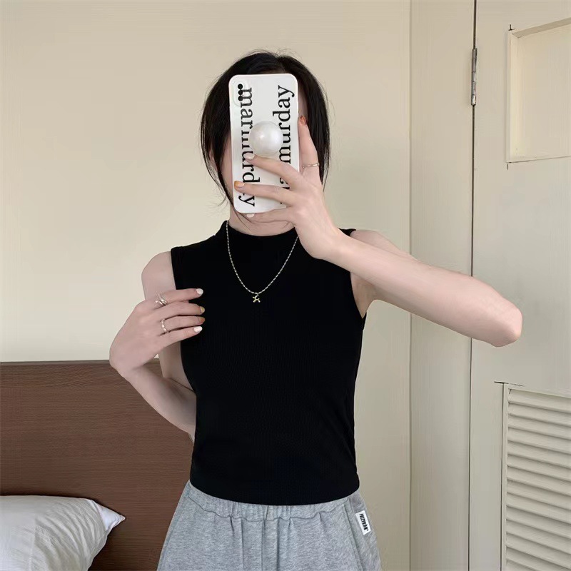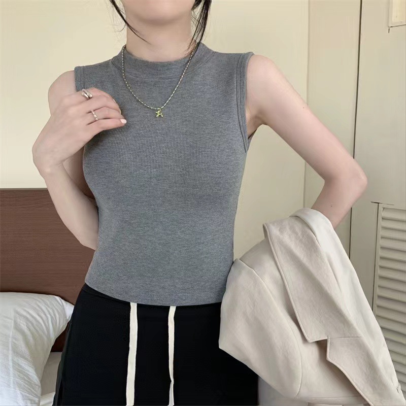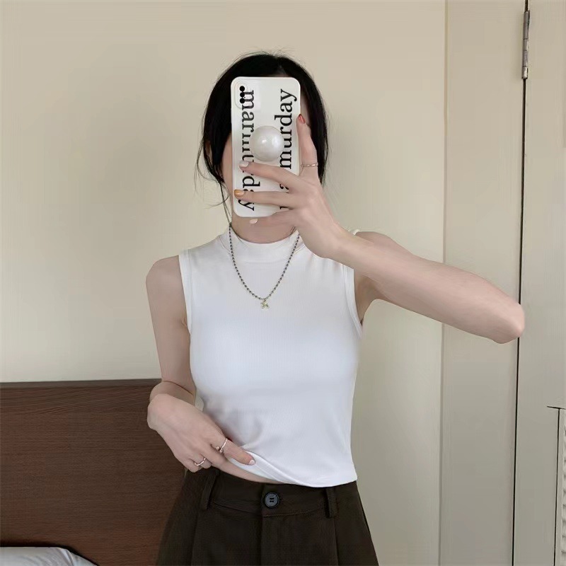 브랜딩 세미 하이 넥 원피스 가슴 패드 소녀 조끼 외부 착용베이스 민소매 가을과 겨울 기모 열 속옷스토어 가기
