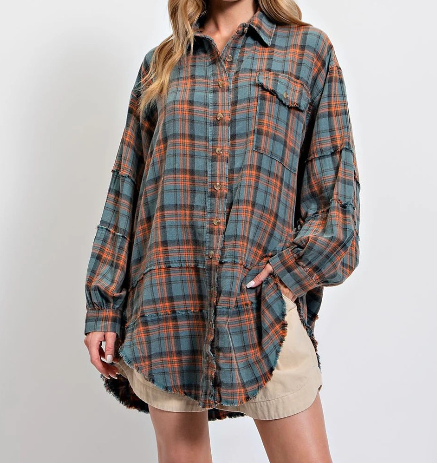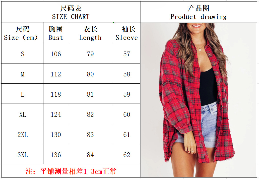 Spot 2025 국경 간 유럽과 미국 대외 무역 여성 가을, 겨울 새로운 스타일 Amazon Raw Edge 랜턴 슬리브 느슨한 격자 무늬 셔츠스토어 가기
