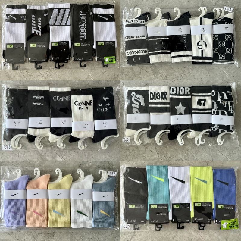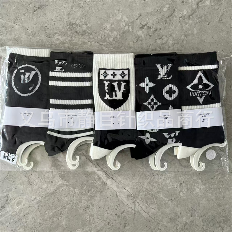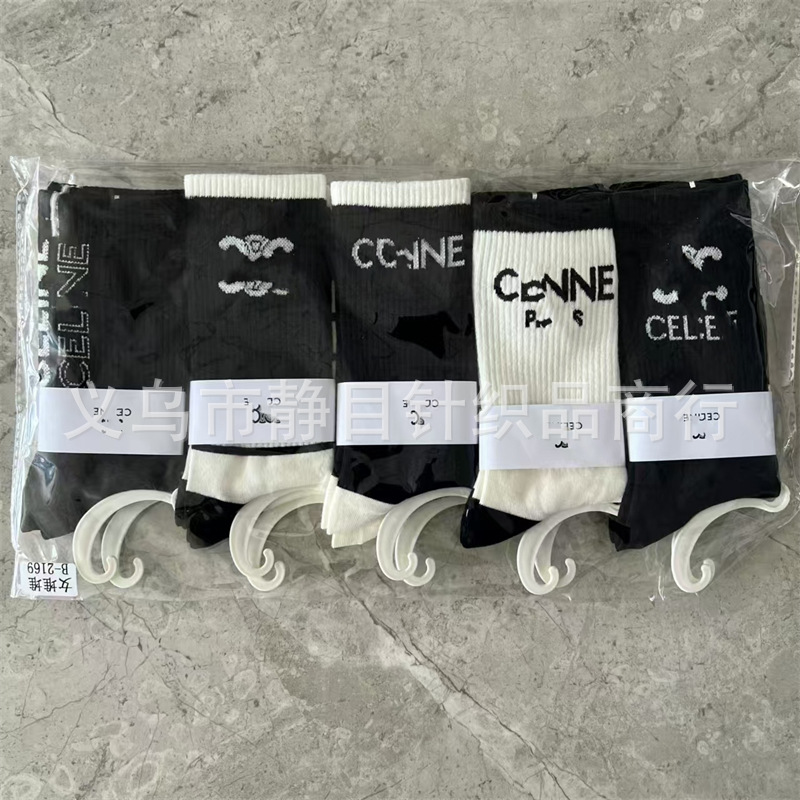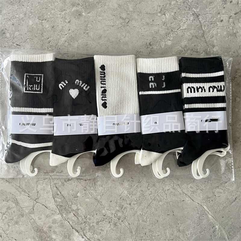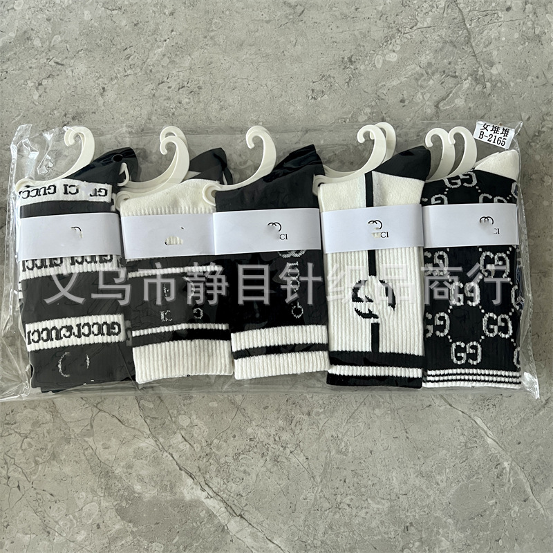 24 새로운 가을과 겨울 여성 양말, 조수 브랜드 편지 스타킹 송아지 양말 큰 브랜드 그물 레드 여성 양말 도매