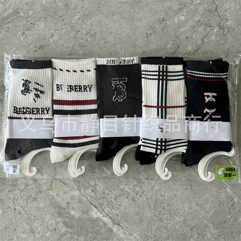24 새로운 가을과 겨울 여성 양말, 조수 브랜드 편지 스타킹 송아지 양말 큰 브랜드 그물 레드 여성 양말 도매스토어 가기