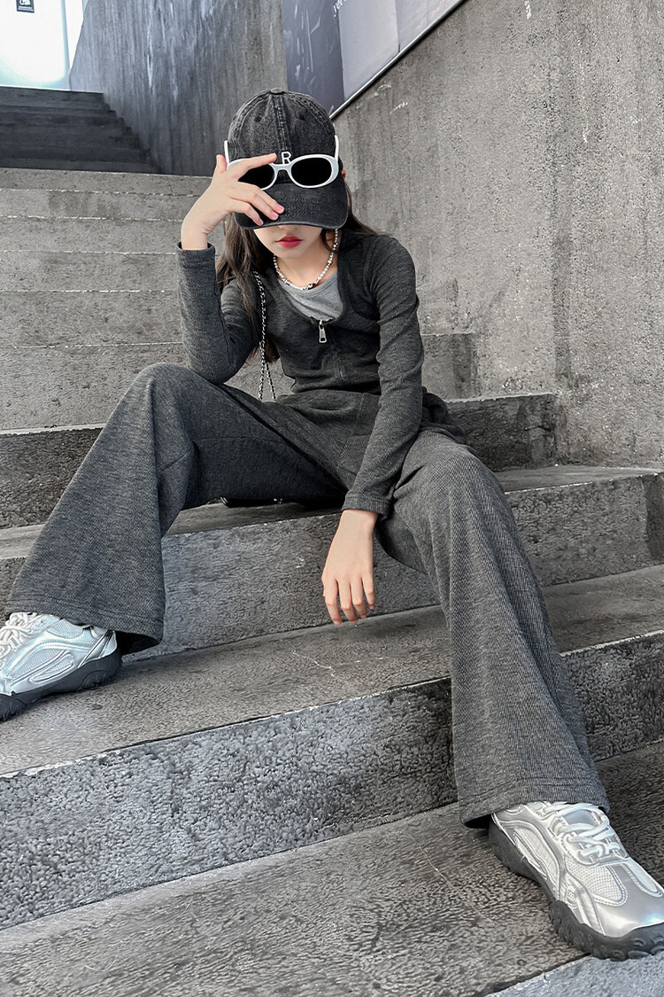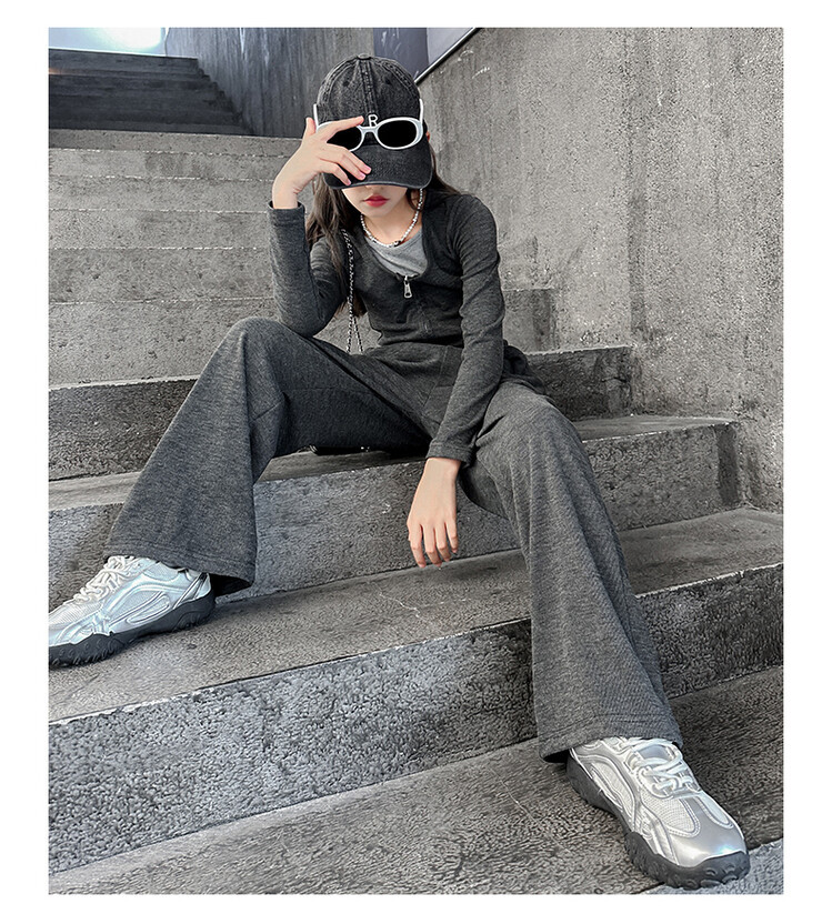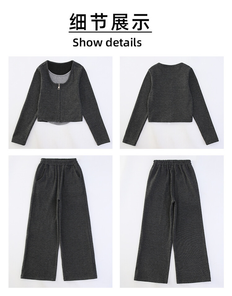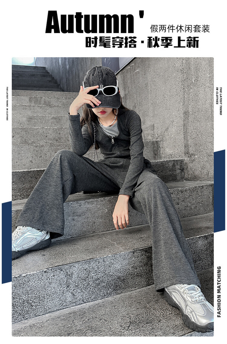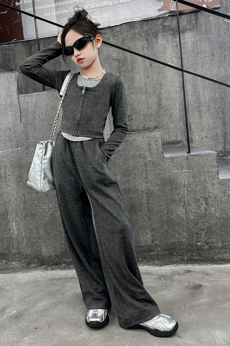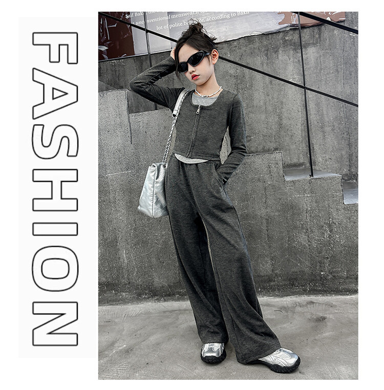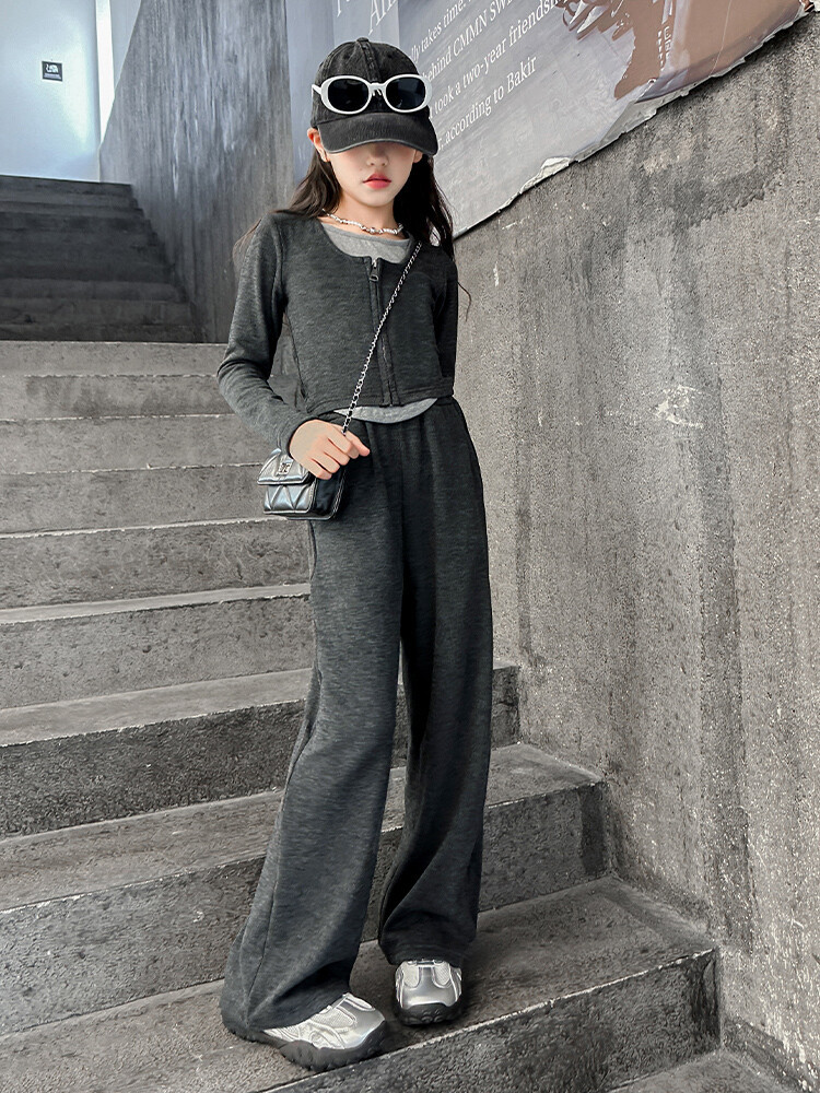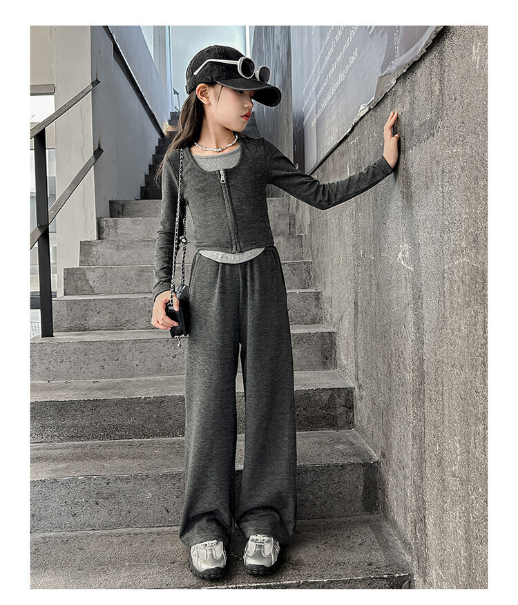 어린이 캐주얼 가짜 투피스 탑 와이드 레그 바지 니트 스포츠 투피스 세트 소녀 2024 가을 세트 새로운스토어 가기