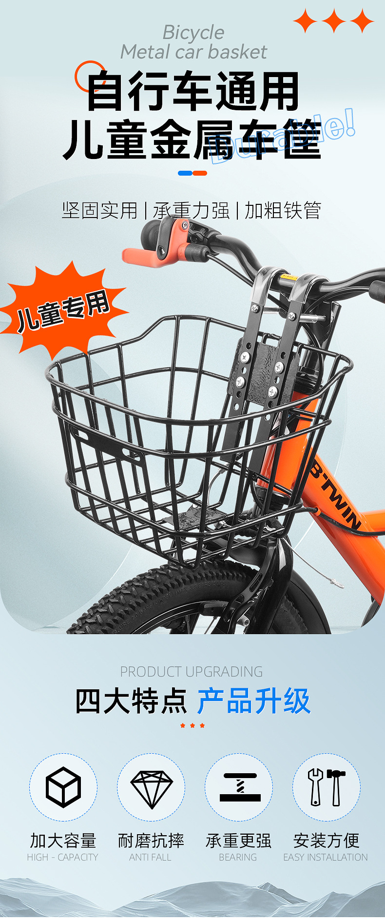 어린이 자전거 바구니 균형 자동차 걸이 바구니 철 바구니 어린이 자전거 아기 차 앞 차 바구니 산악 자전거 액세서리