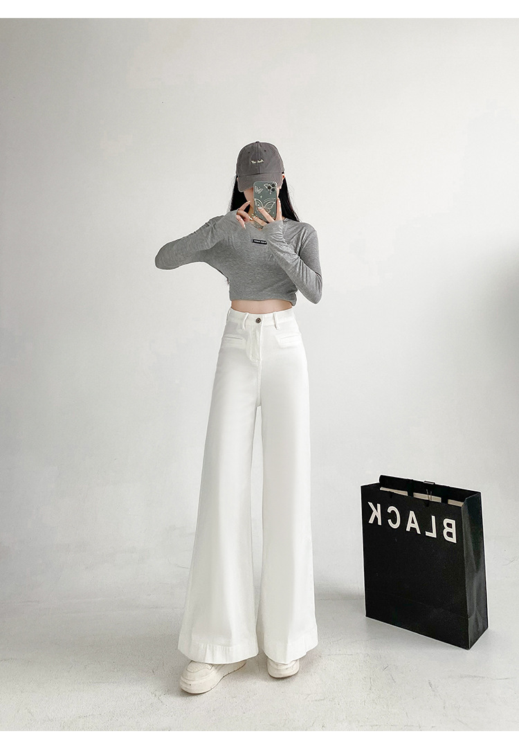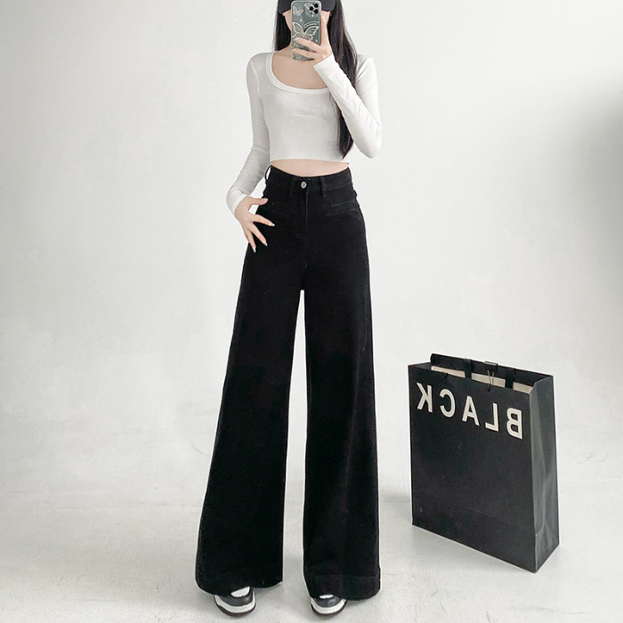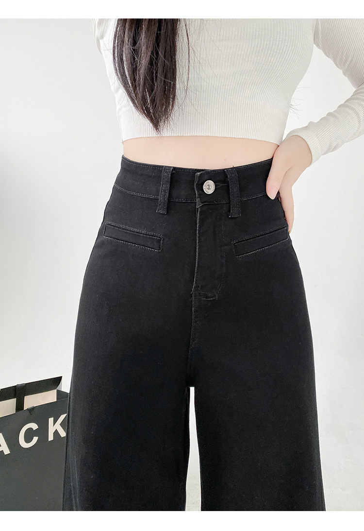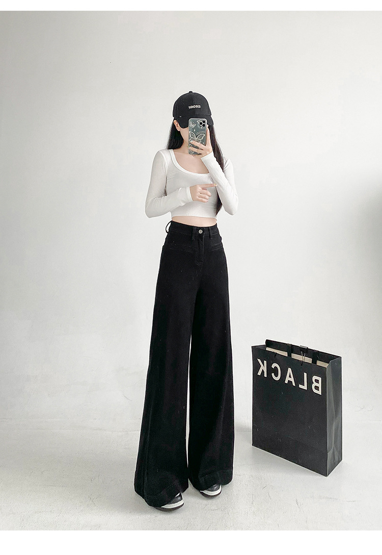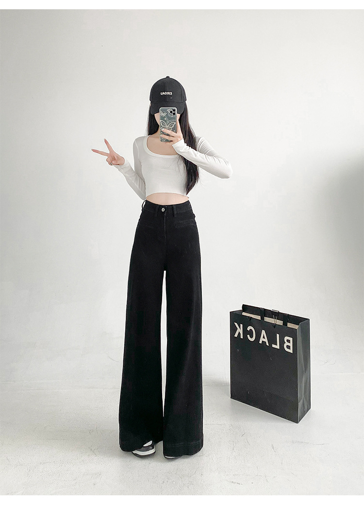 검은 스트레치 다목적 높은 허리 슈퍼 와이드 다리 청바지 여성의 2024 가을 새로운 육체 덮개 슬림 바지스토어 가기