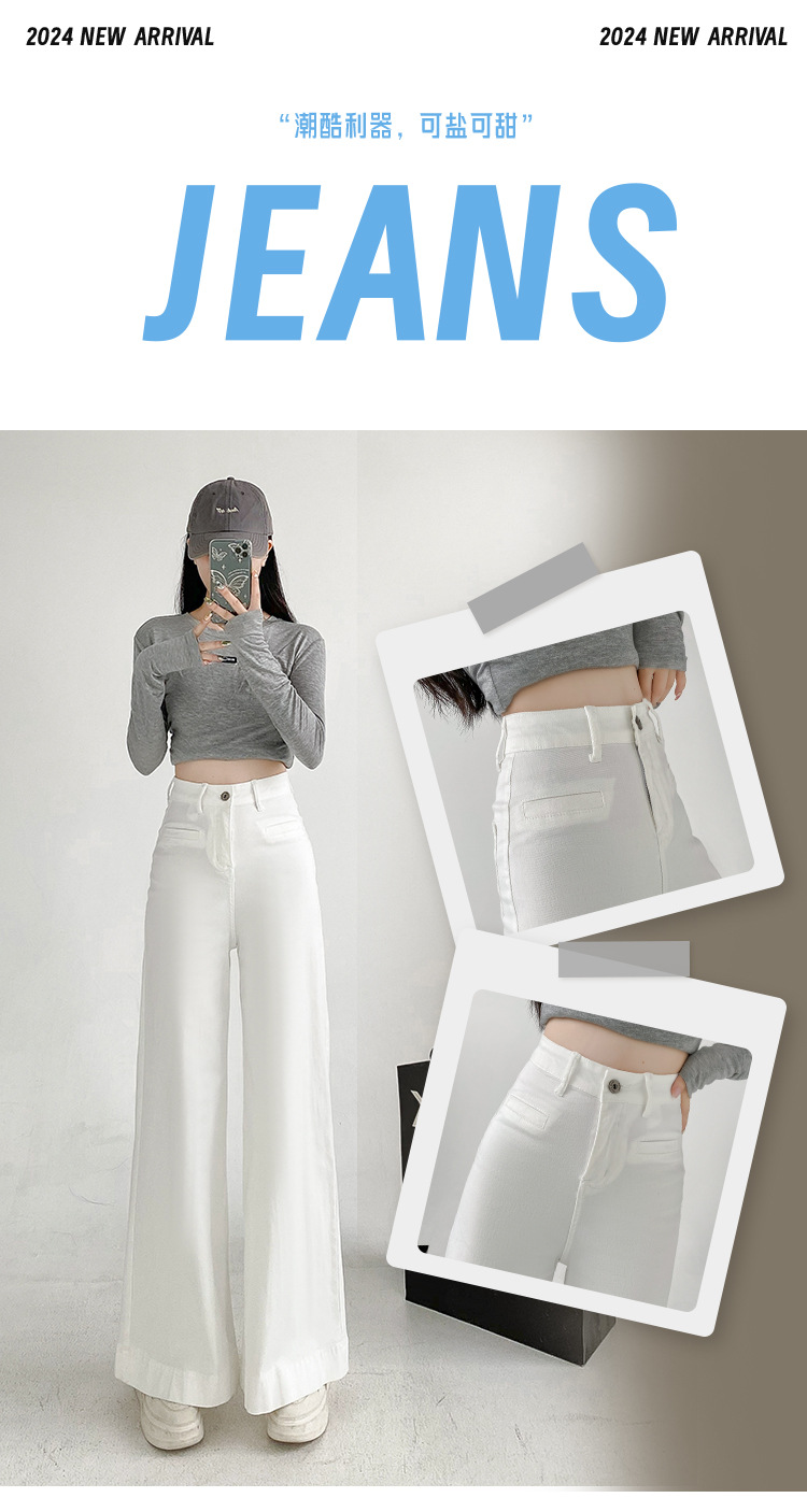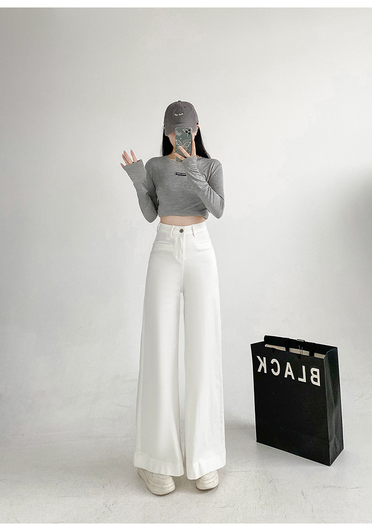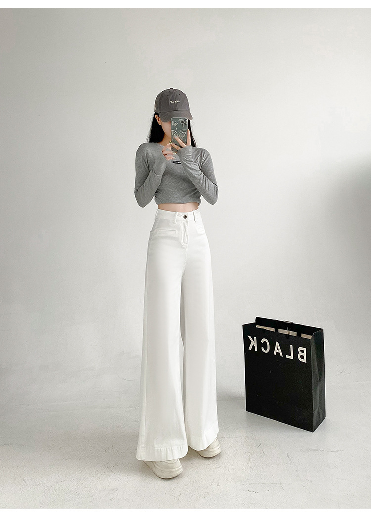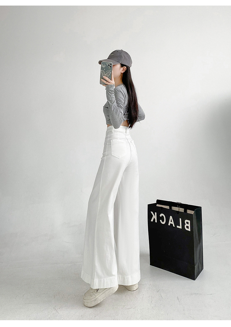 검은 스트레치 다목적 높은 허리 슈퍼 와이드 다리 청바지 여성의 2024 가을 새로운 육체 덮개 슬림 바지스토어 가기