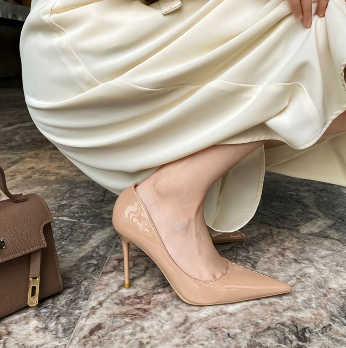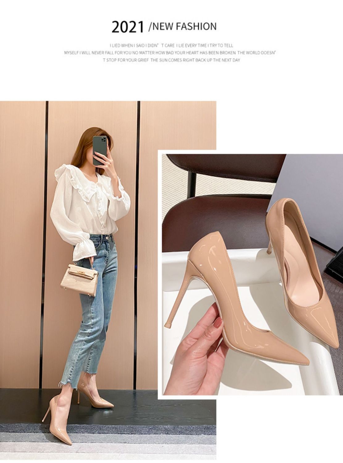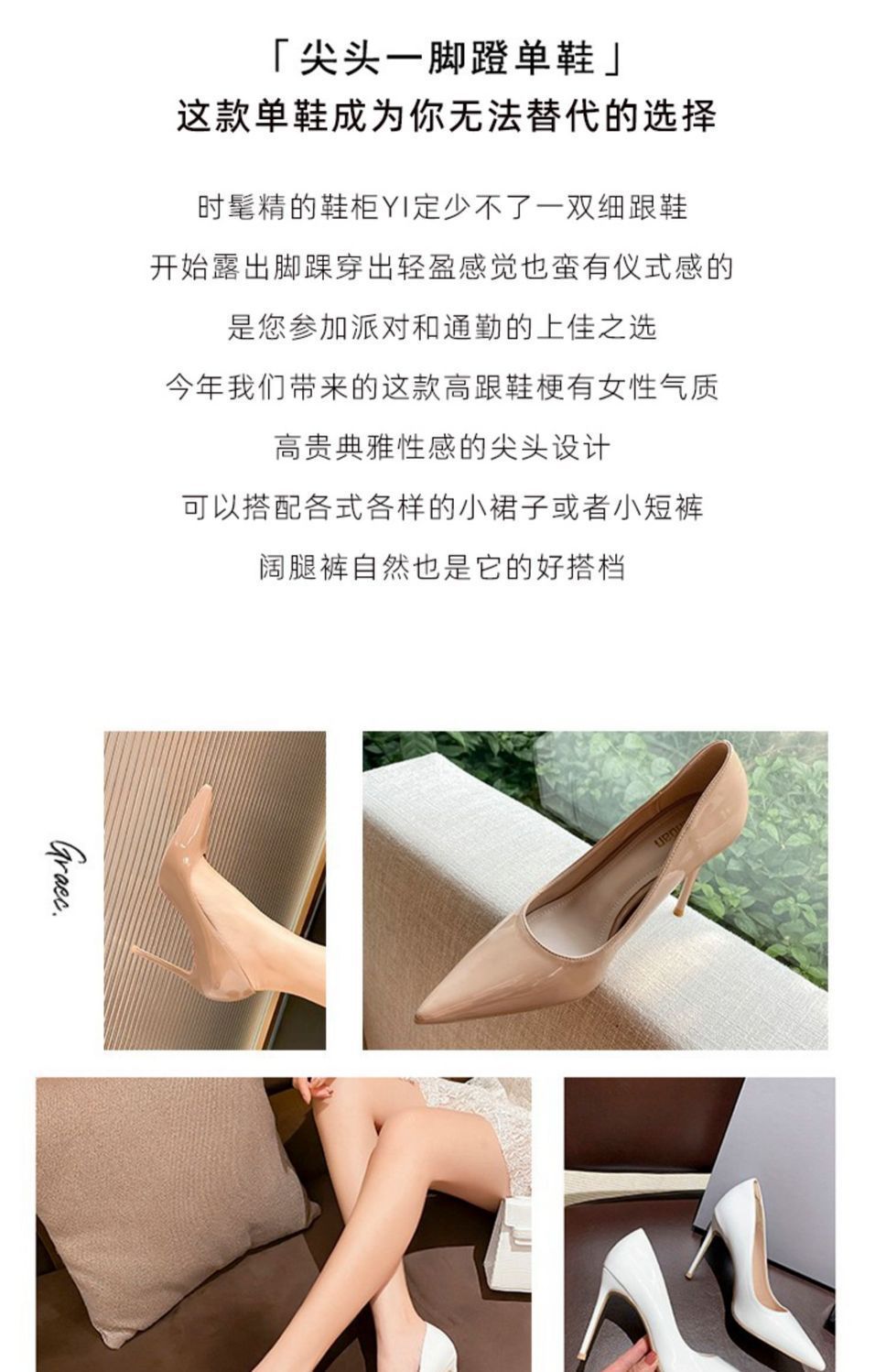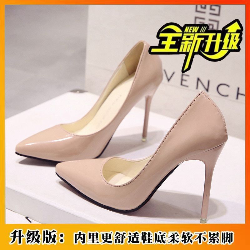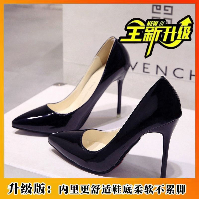2025년 봄 신상 여성용 에나멜 가죽 하이힐, 광택 있는 뾰족코 구두, 단색 통근화스토어 가기