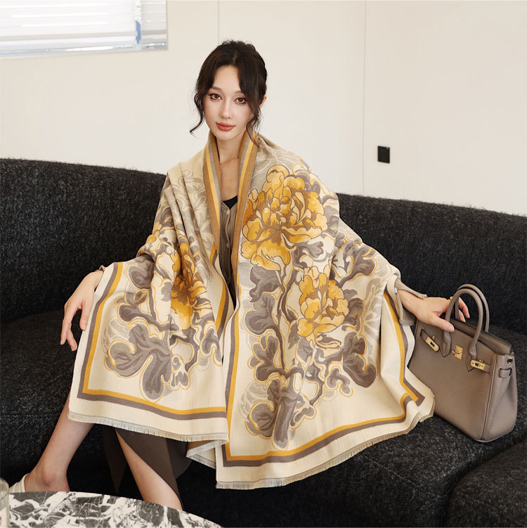 모란 스카프 여자 겨울 Guofeng 양면 자카드 목도리 따뜻한 두꺼운 외장 사진 스카프 조커 착용