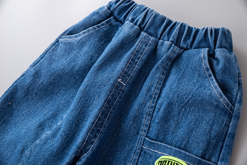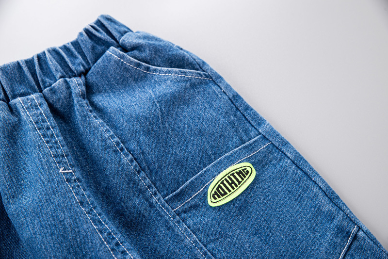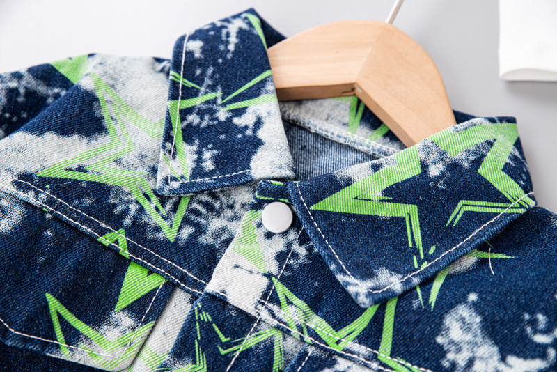 어린이 봄 가을 옷 세트 2024 새 소년 아기 잘 생긴 넥타이-염료 스타 데님 재킷 3 피스 세트스토어 가기