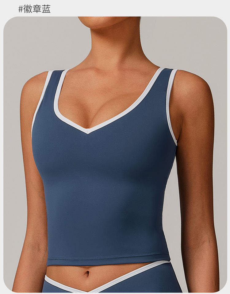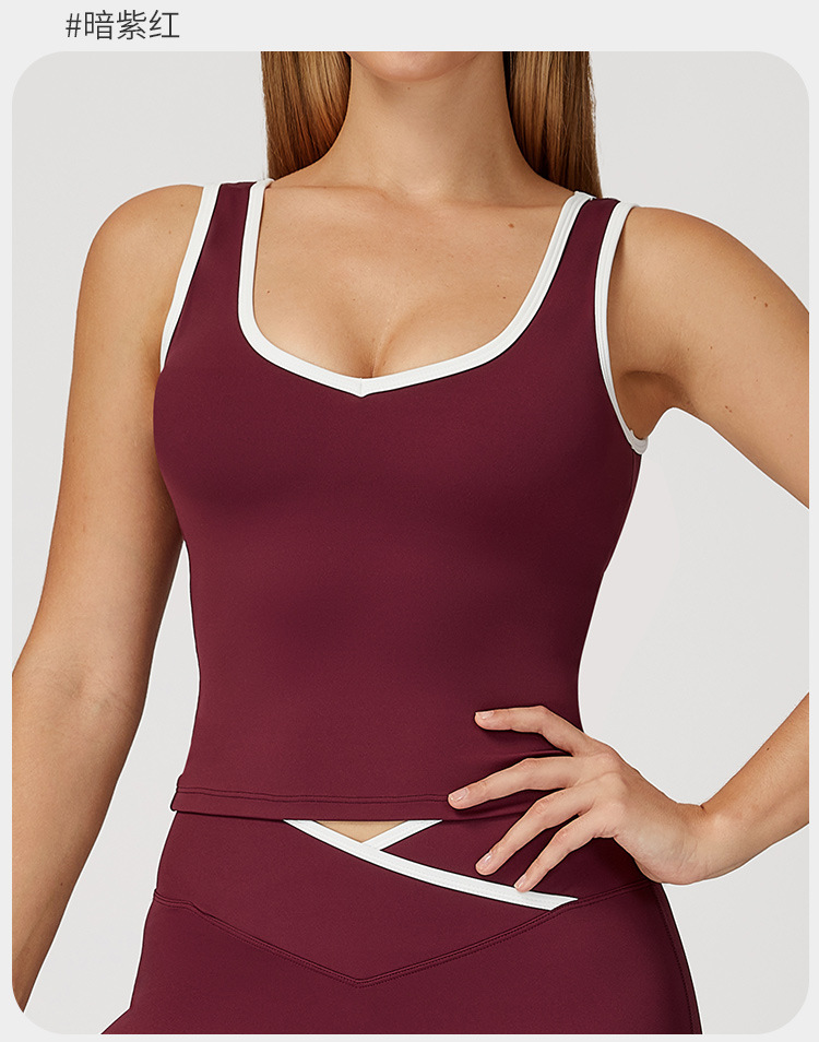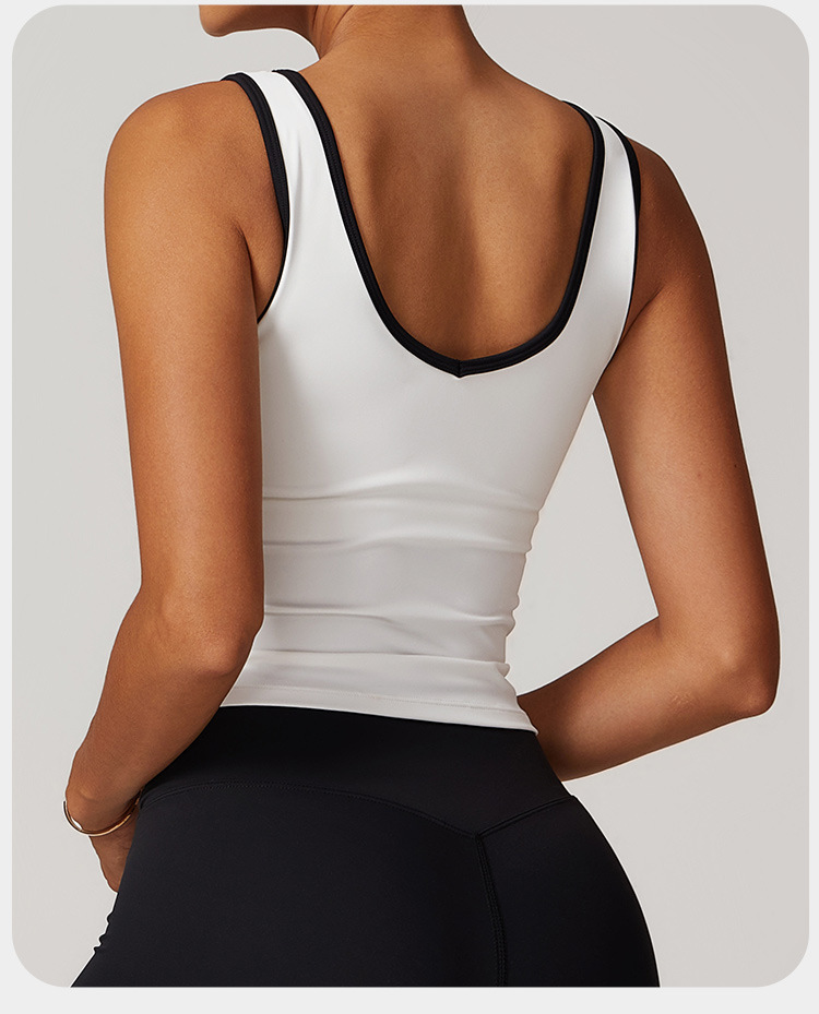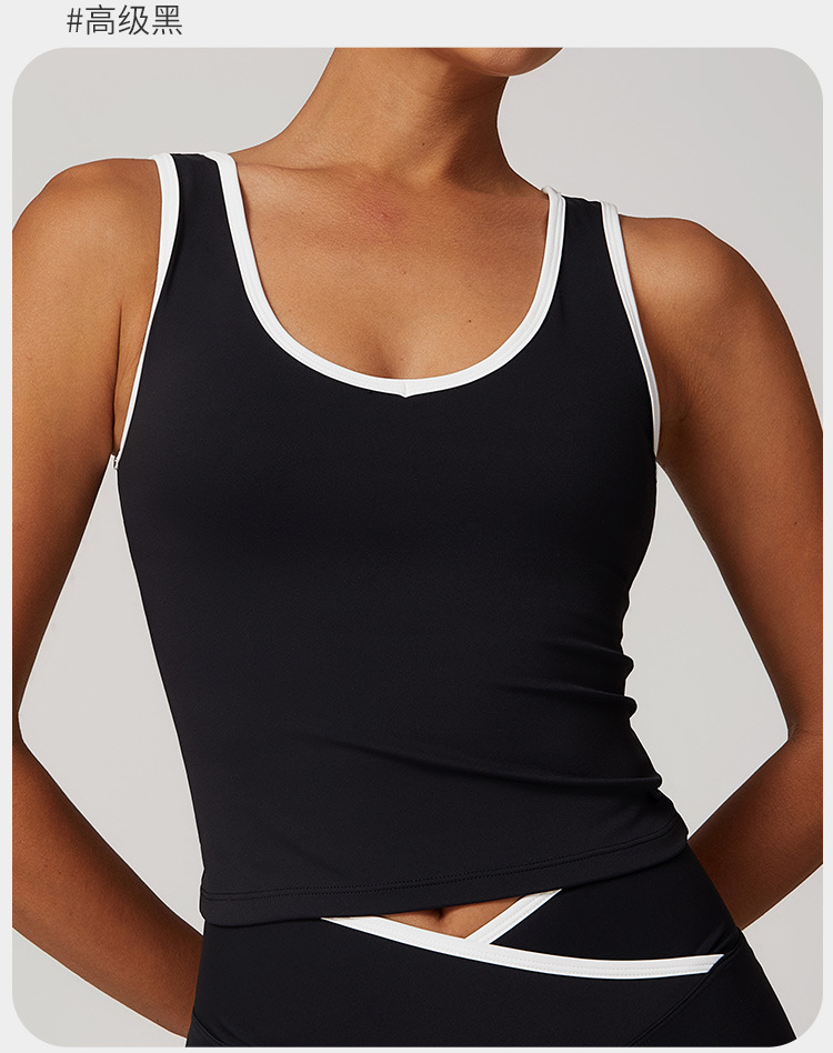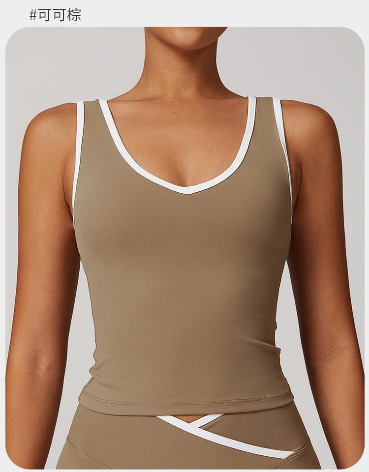 여성용 크로스보더 타이트 누드 콘트라스트 컬러 스포츠 조끼, 백리스 요가 피트니스 요가복 아우터 스포츠 탑 8843