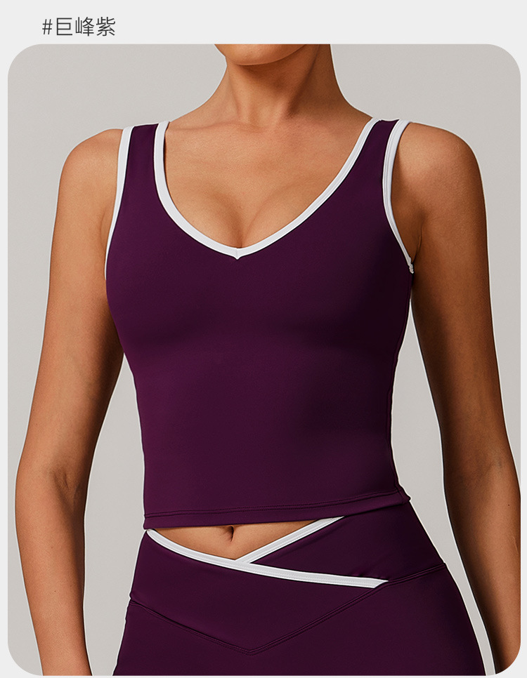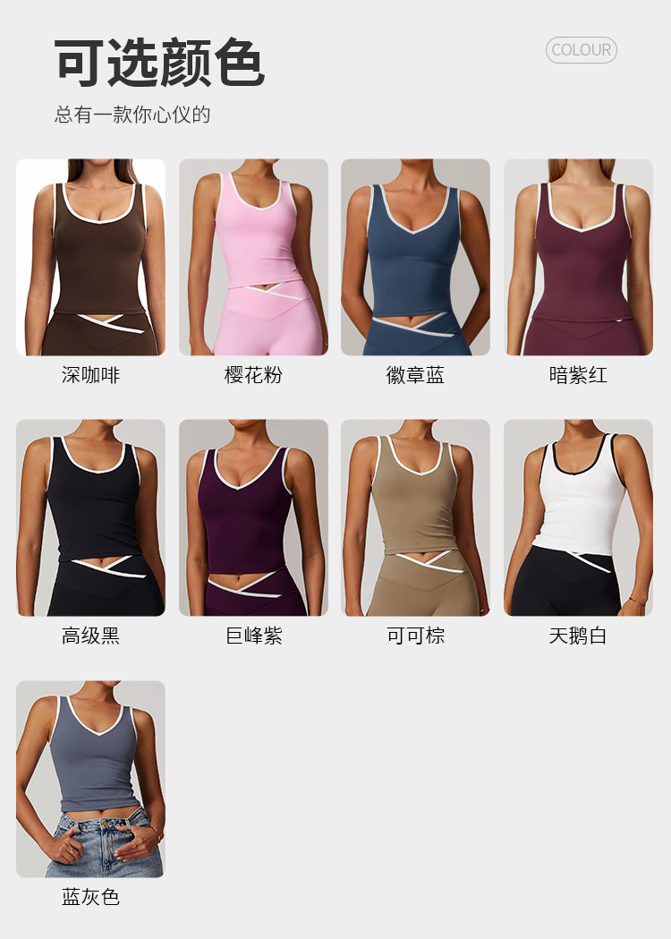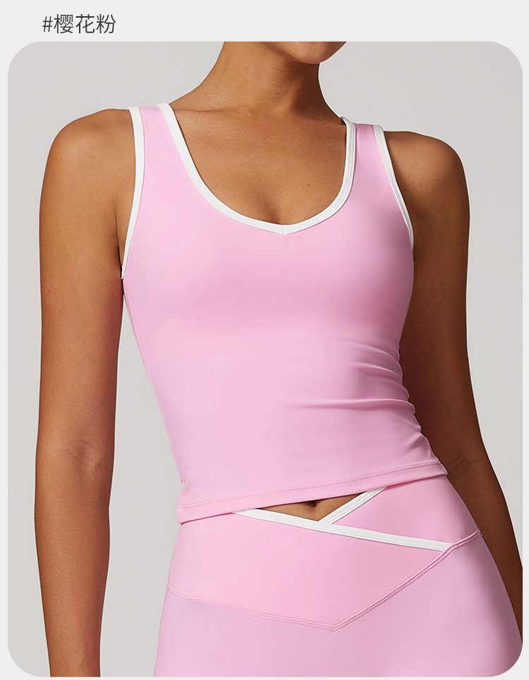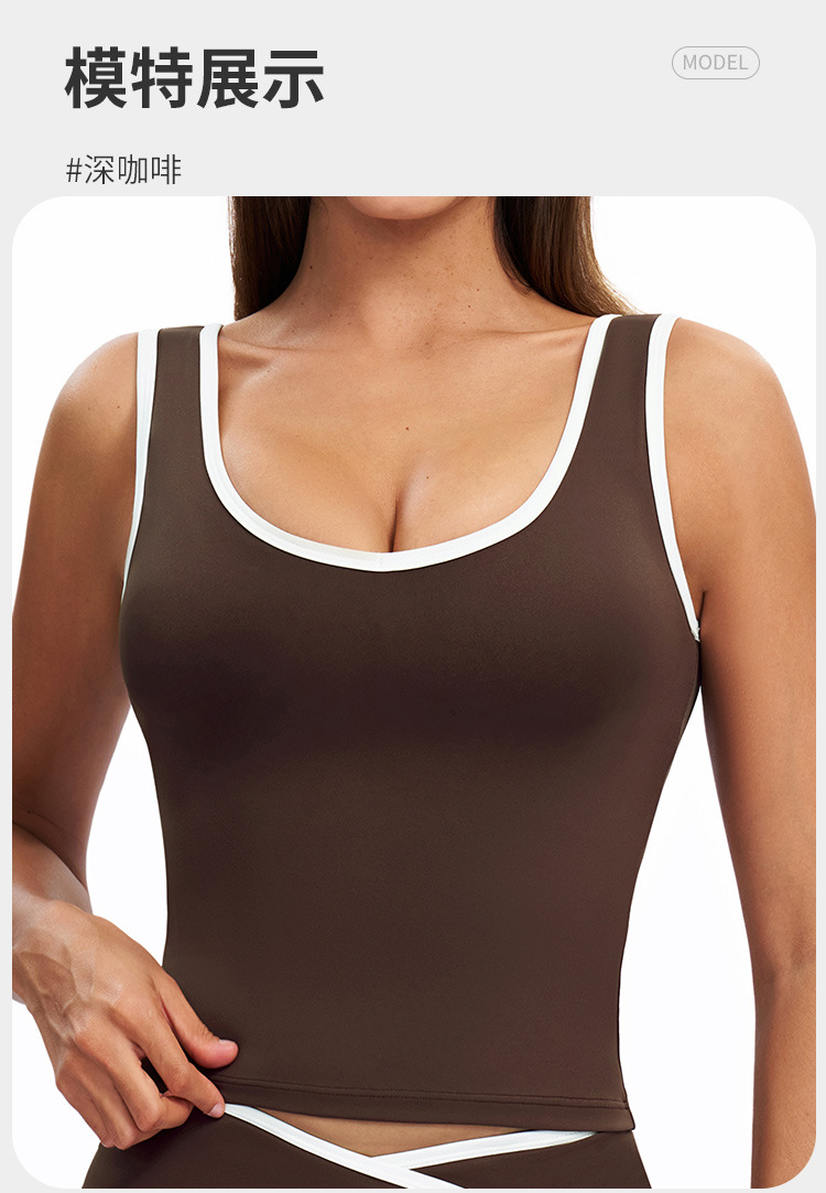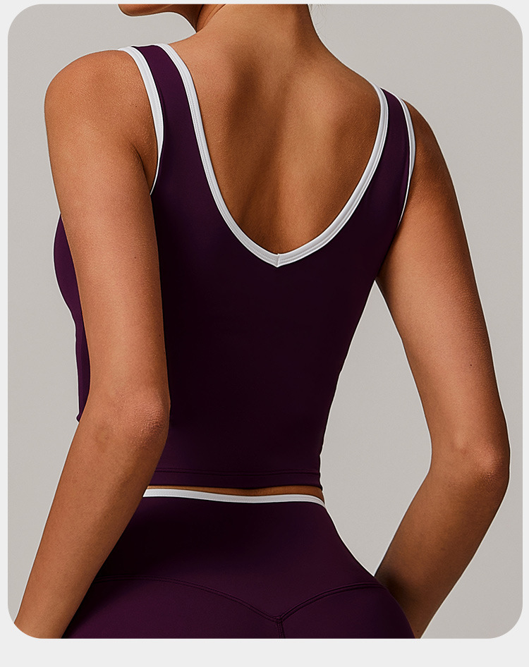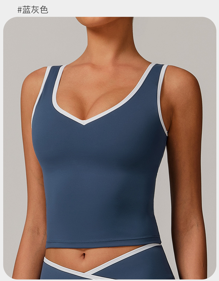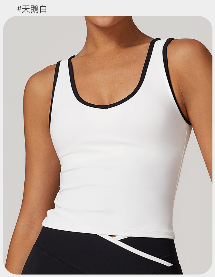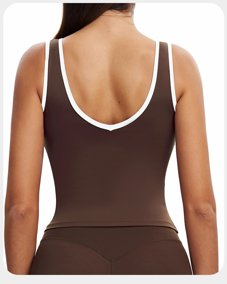 여성용 크로스보더 타이트 누드 콘트라스트 컬러 스포츠 조끼, 백리스 요가 피트니스 요가복 아우터 스포츠 탑 8843스토어 가기