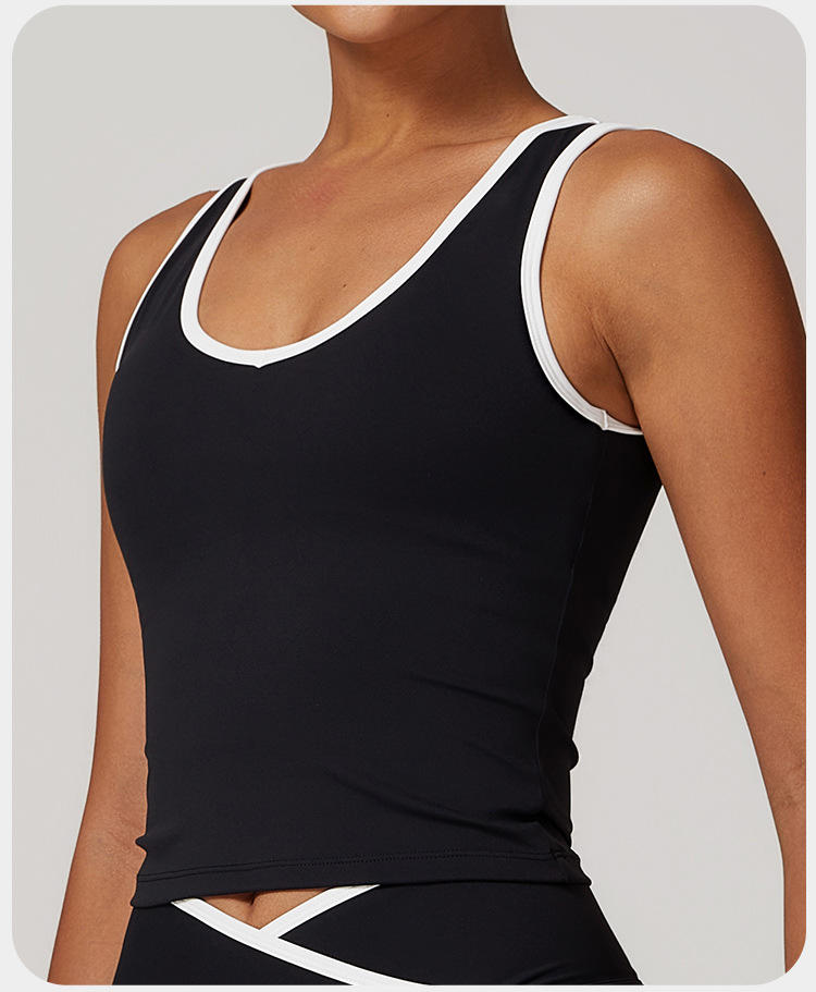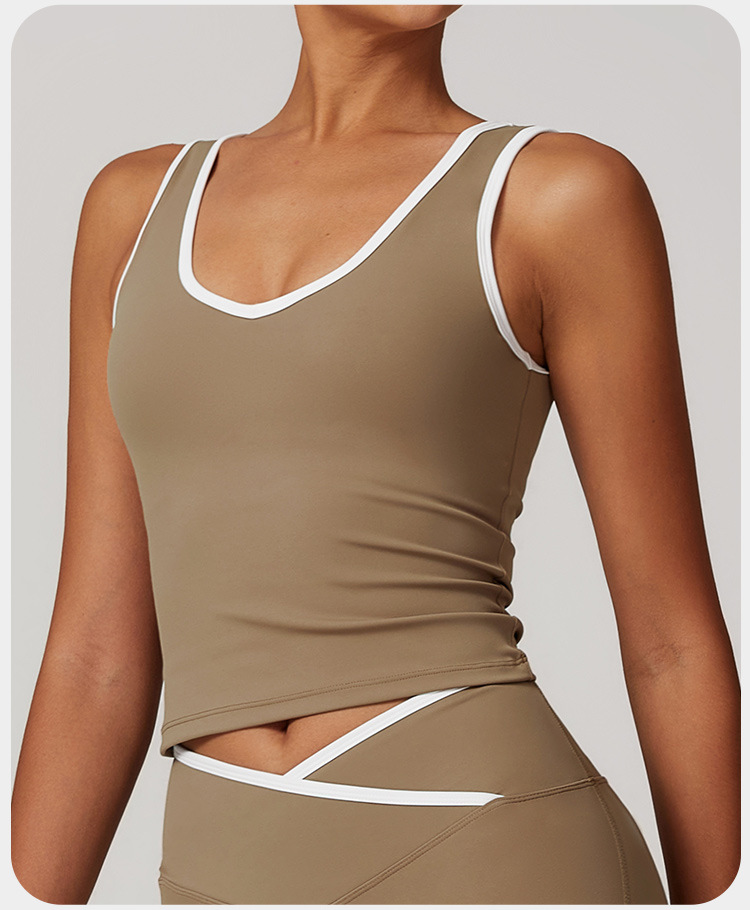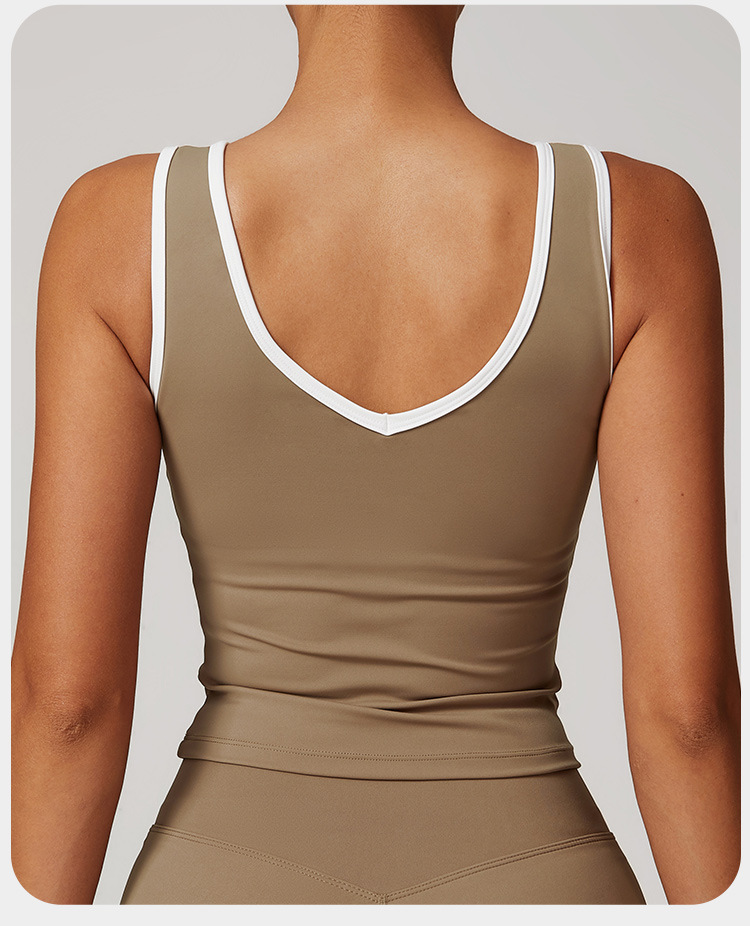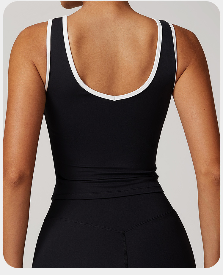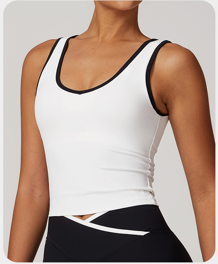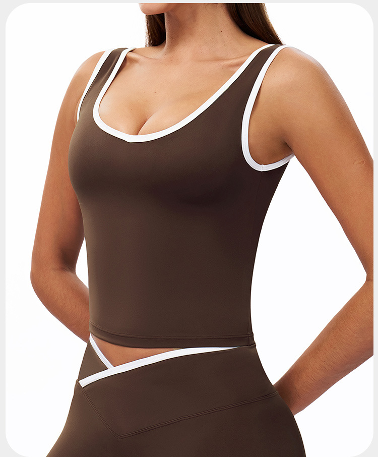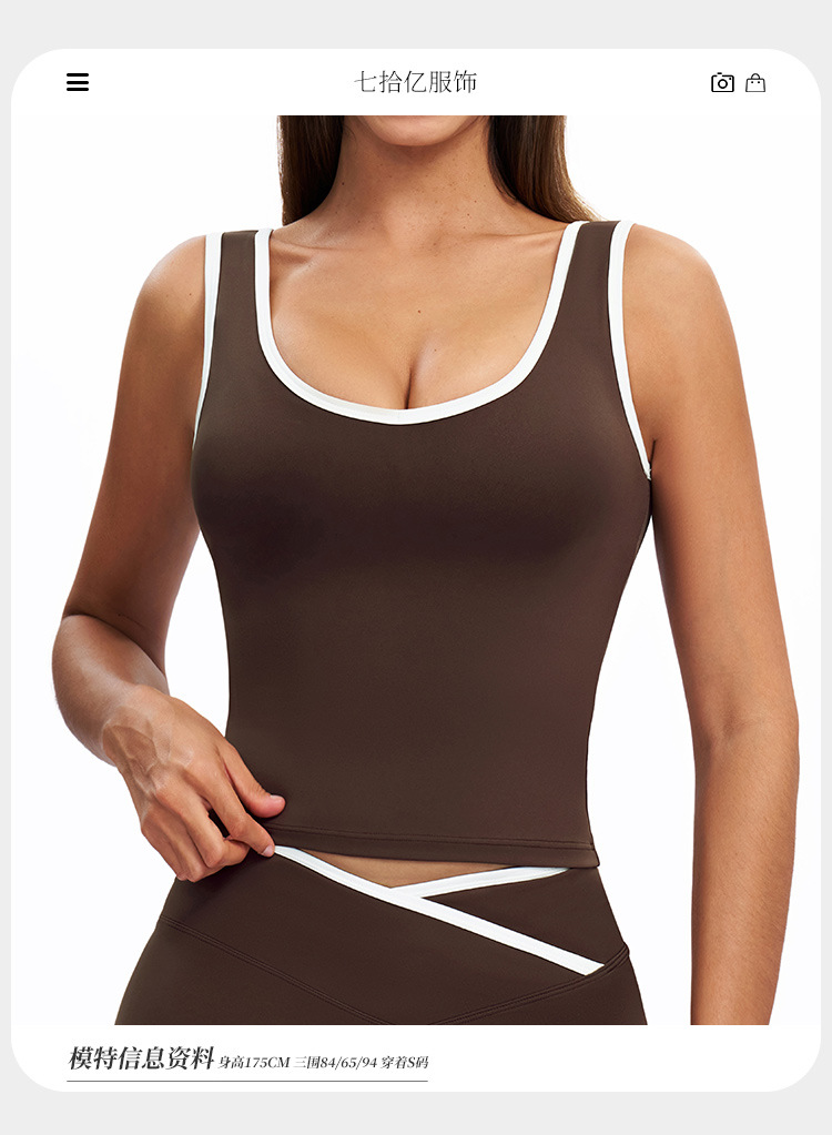 여성용 크로스보더 타이트 누드 콘트라스트 컬러 스포츠 조끼, 백리스 요가 피트니스 요가복 아우터 스포츠 탑 8843스토어 가기