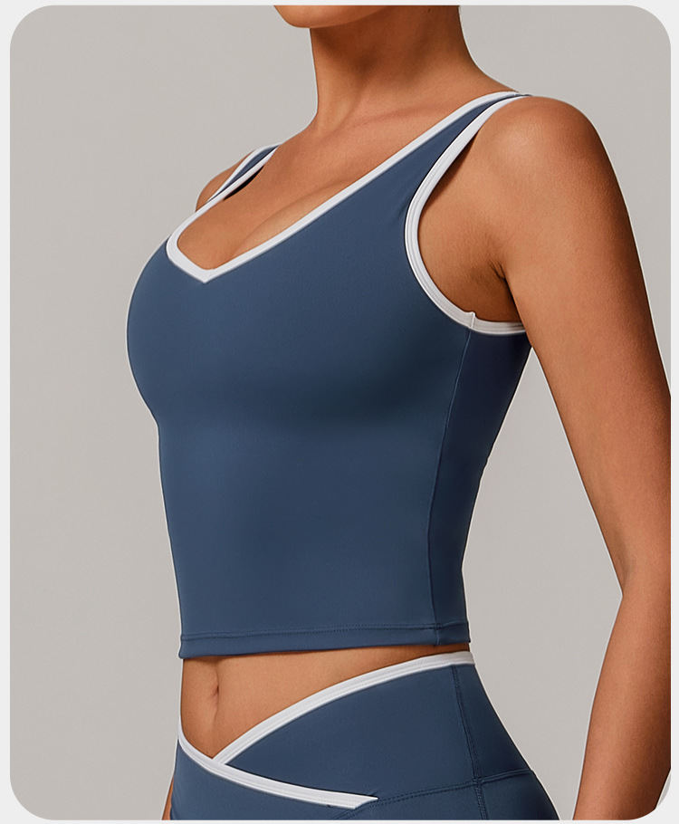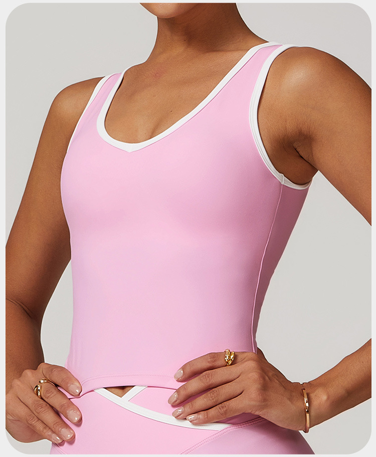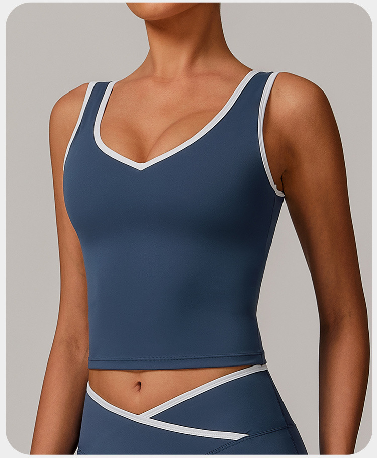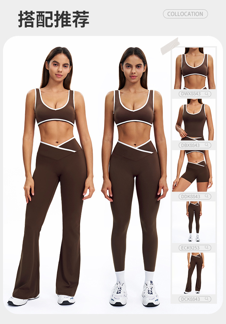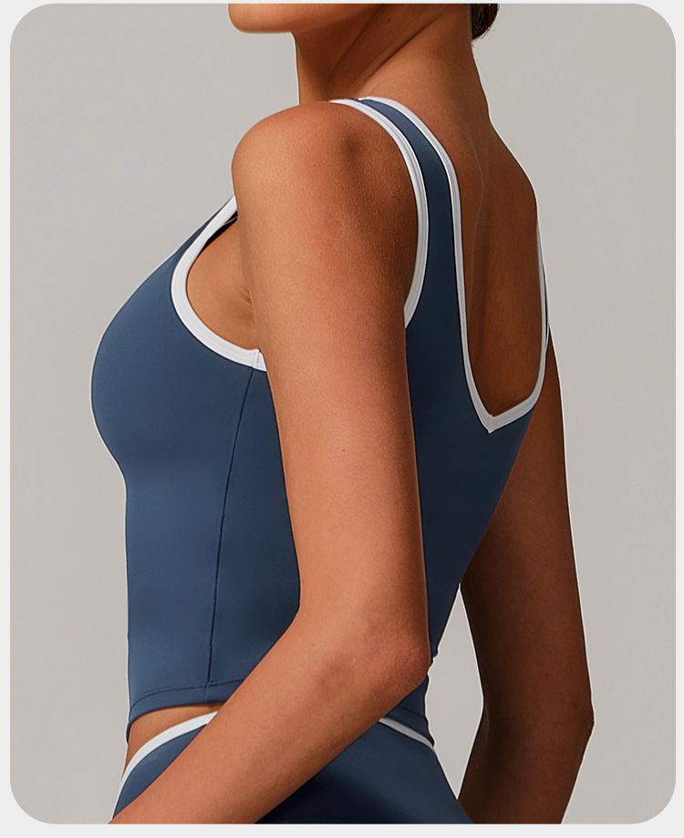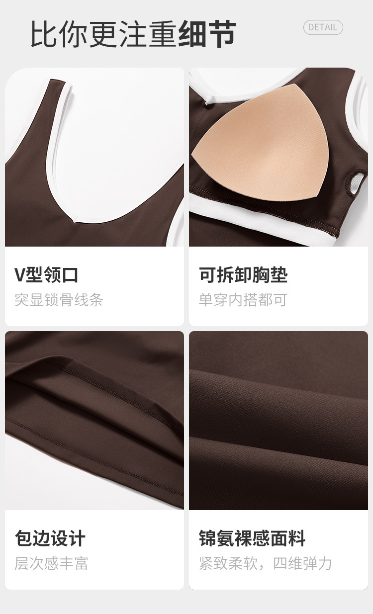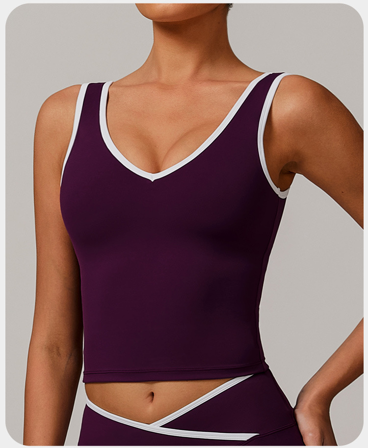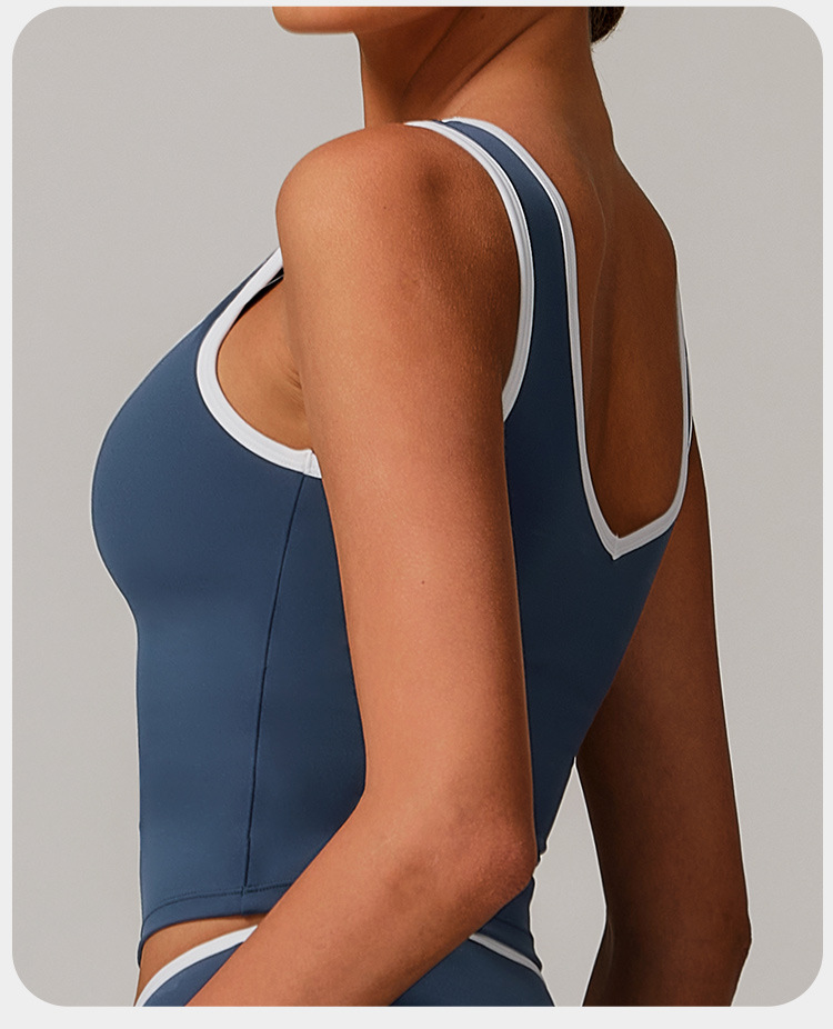 여성용 크로스보더 타이트 누드 콘트라스트 컬러 스포츠 조끼, 백리스 요가 피트니스 요가복 아우터 스포츠 탑 8843스토어 가기