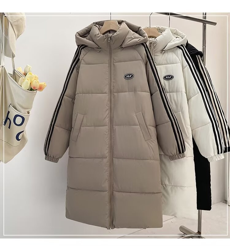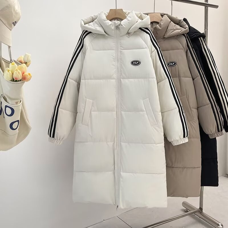 면 패딩 재킷 여성 2024 새 겨울 중간 길이의 무릎 길이 두꺼운 따뜻한 빵 느슨한 면화 패딩 캐주얼 코트스토어 가기