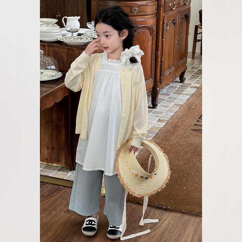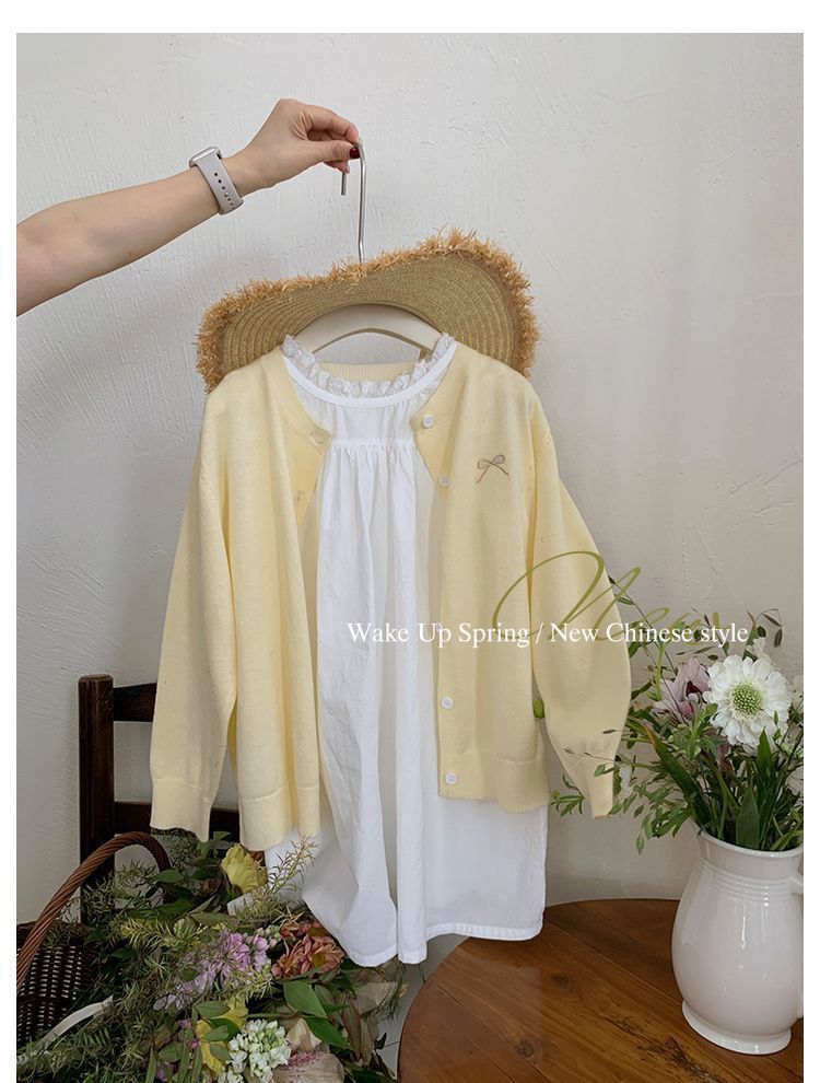 한국 소녀의 한국 스타일 유행 캐주얼 아이스 실크 니트 카디건 유행 새로운 도착 어린이 올매치 라운드 넥 재킷 트렌디스토어 가기