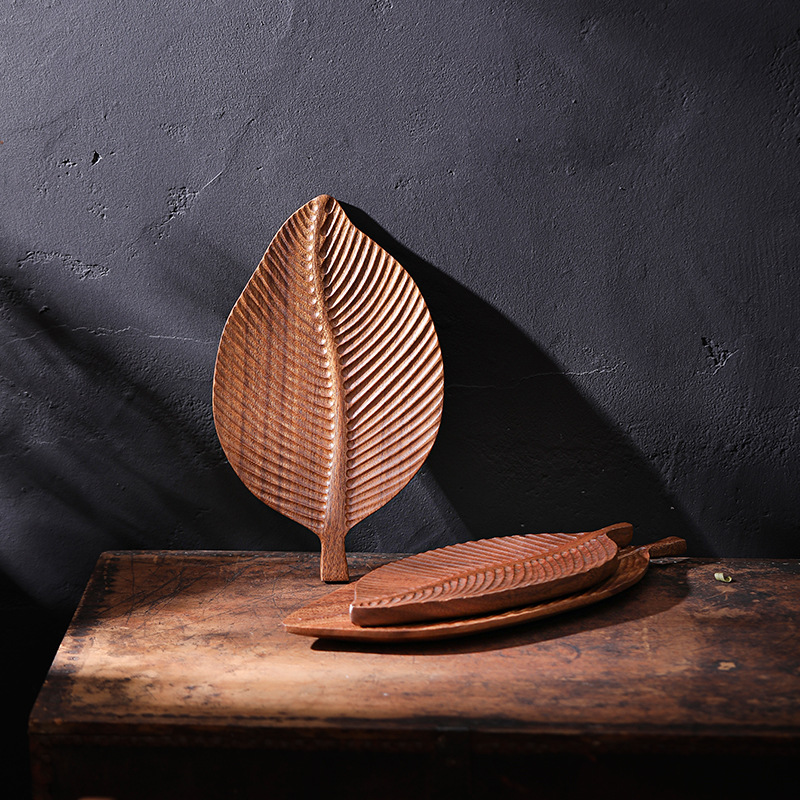 가정용 드라이 양조 차 트레이 중국 월넛 잎 모양의 전체 나무 트레이 단단한 나무 티 컵 트레이 불규칙한 나무 트레이