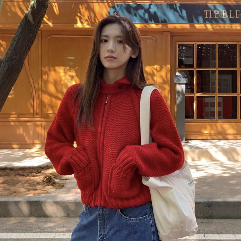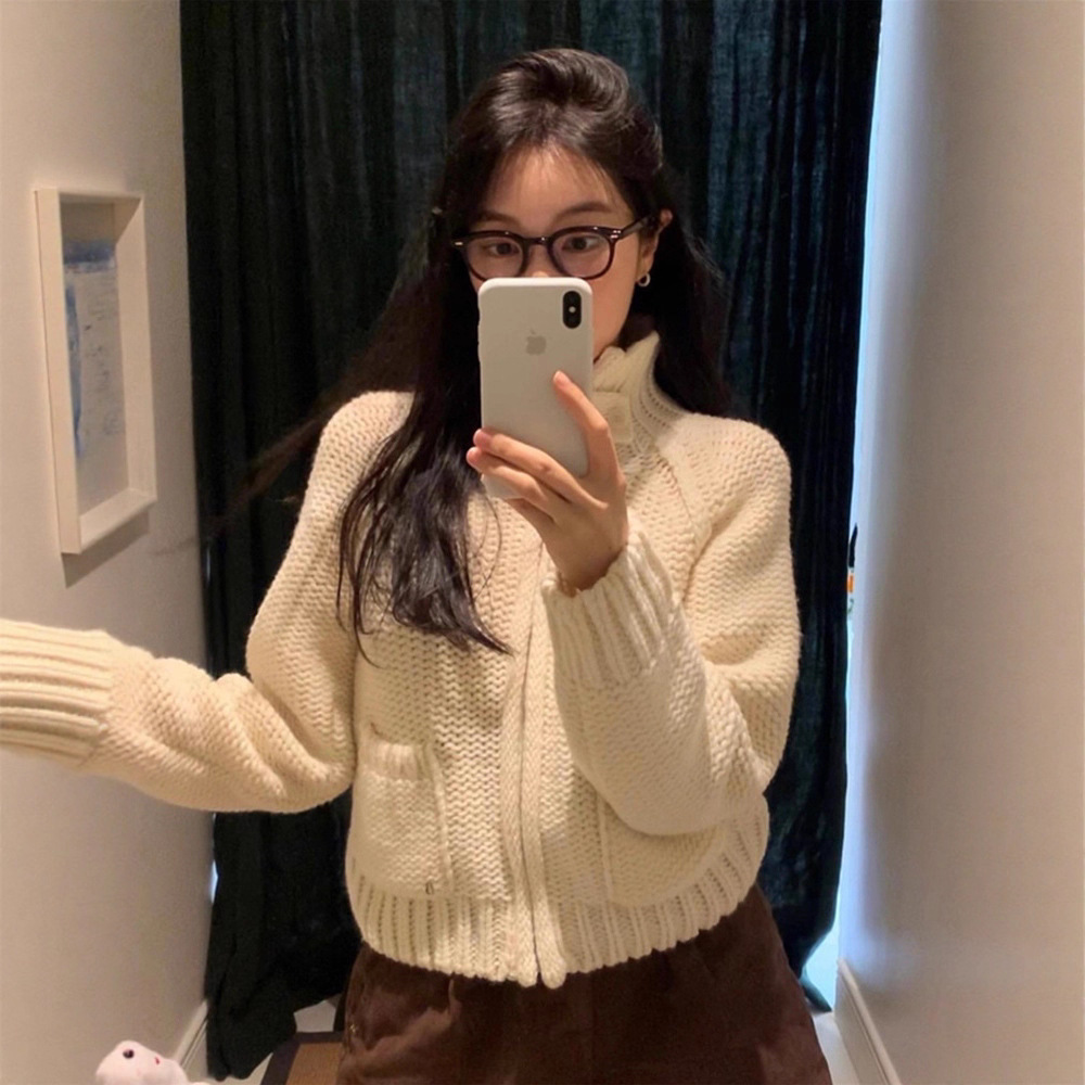 재고 바나이 무거운 두꺼운 바늘 스웨터 코트 여성 한국 스타일 수직 목 두꺼운 니트 카디건 barnn * t스토어 가기