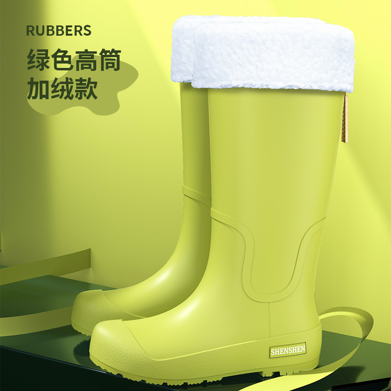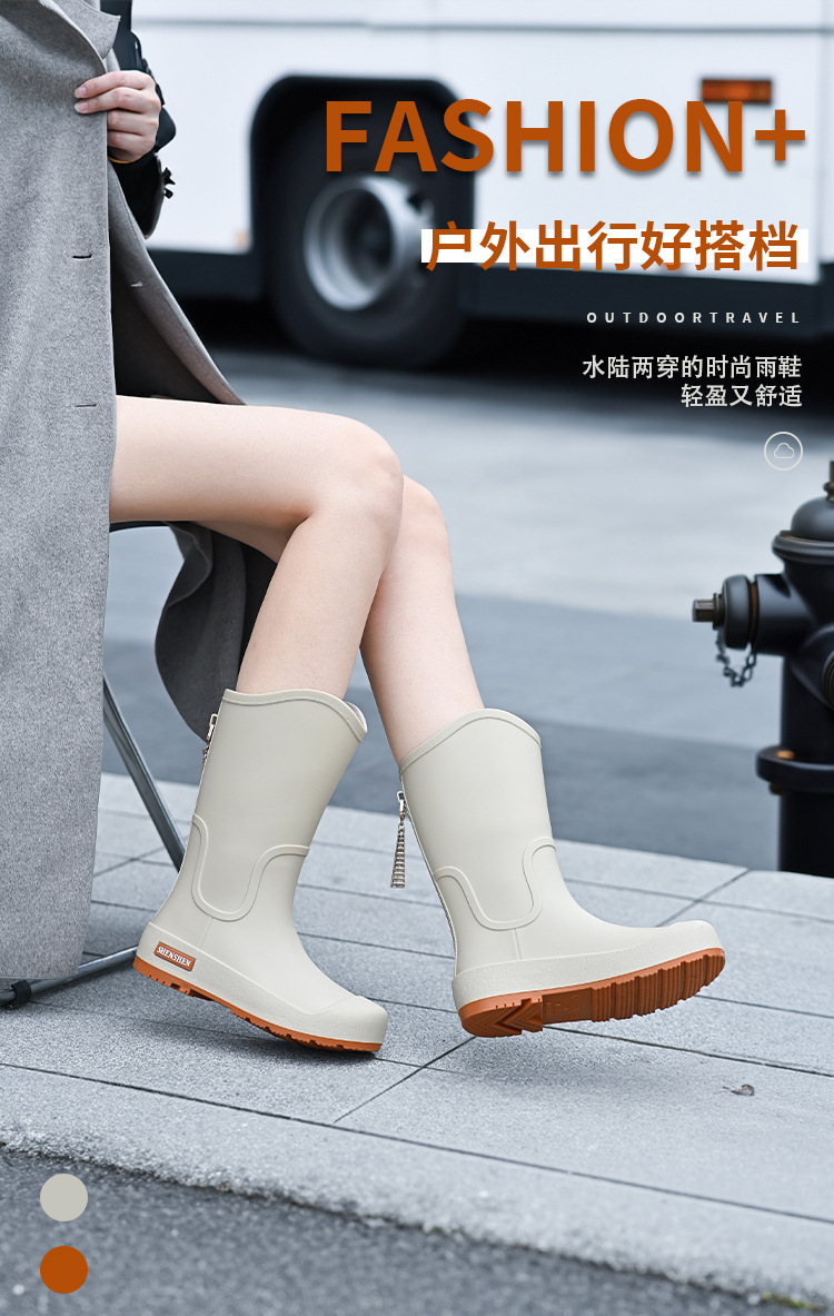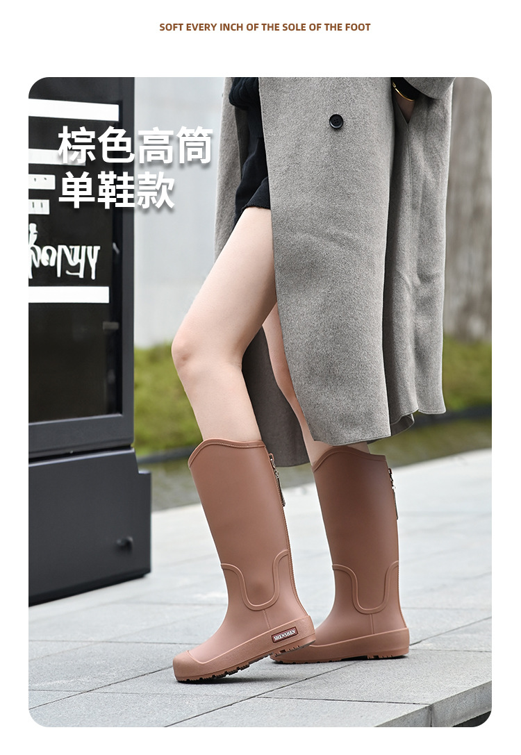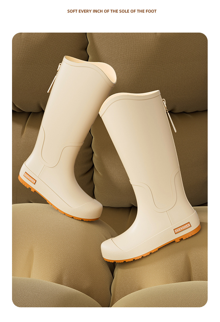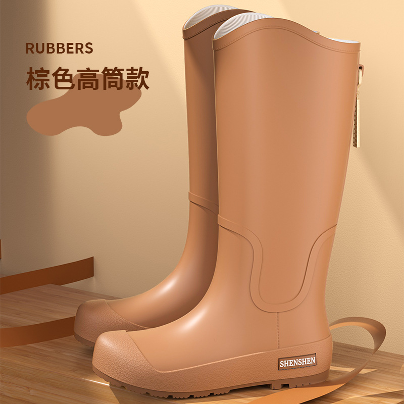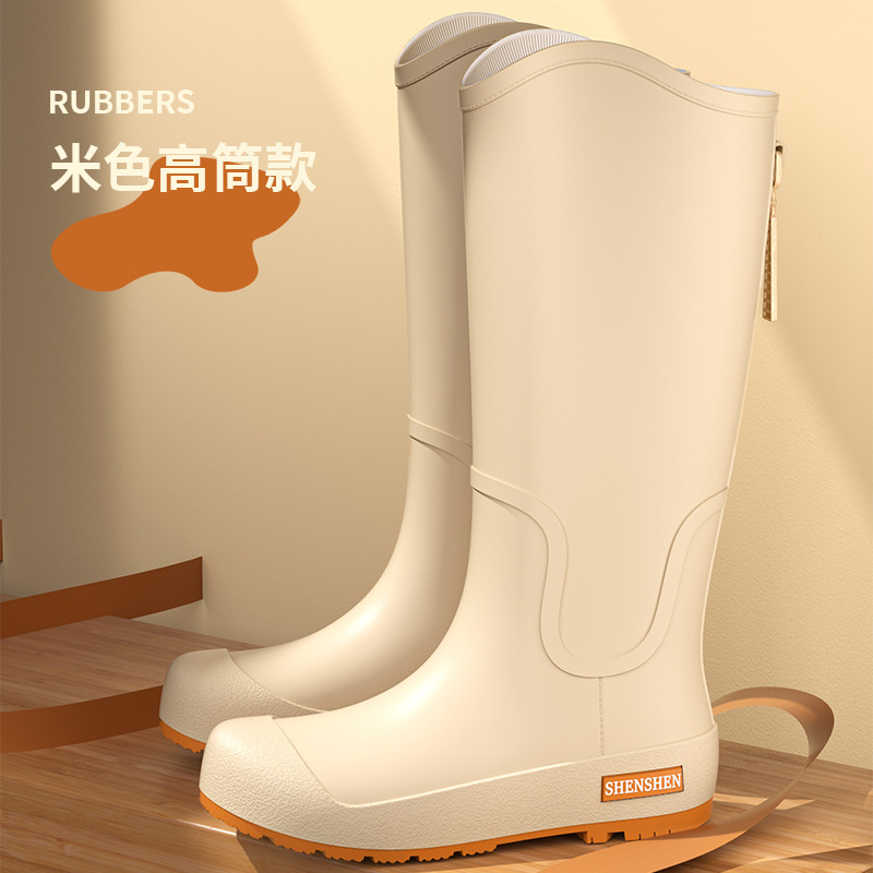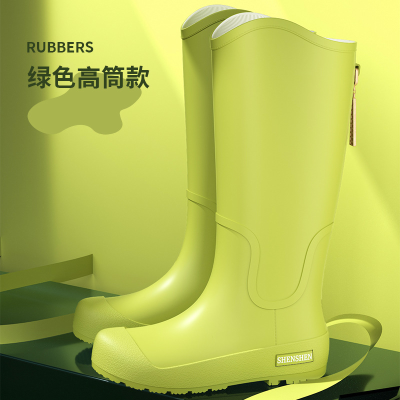 일본식 고층 비 신발 여성 유행 외부 착용 미끄럼 방지 방수 내마모성 통합 고무 신발 주방 긴 부드러운 하단 비 신발