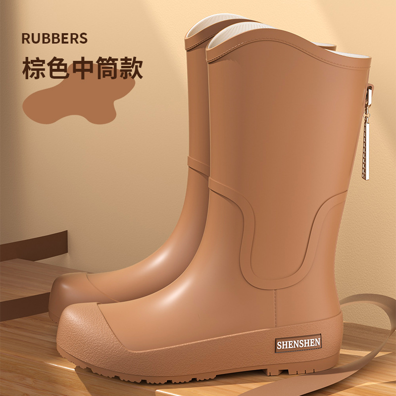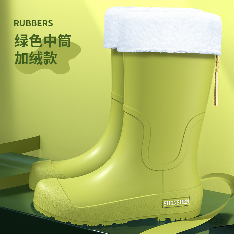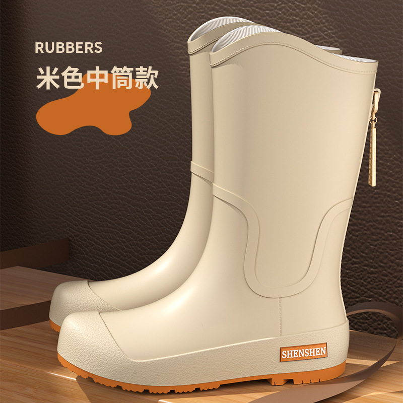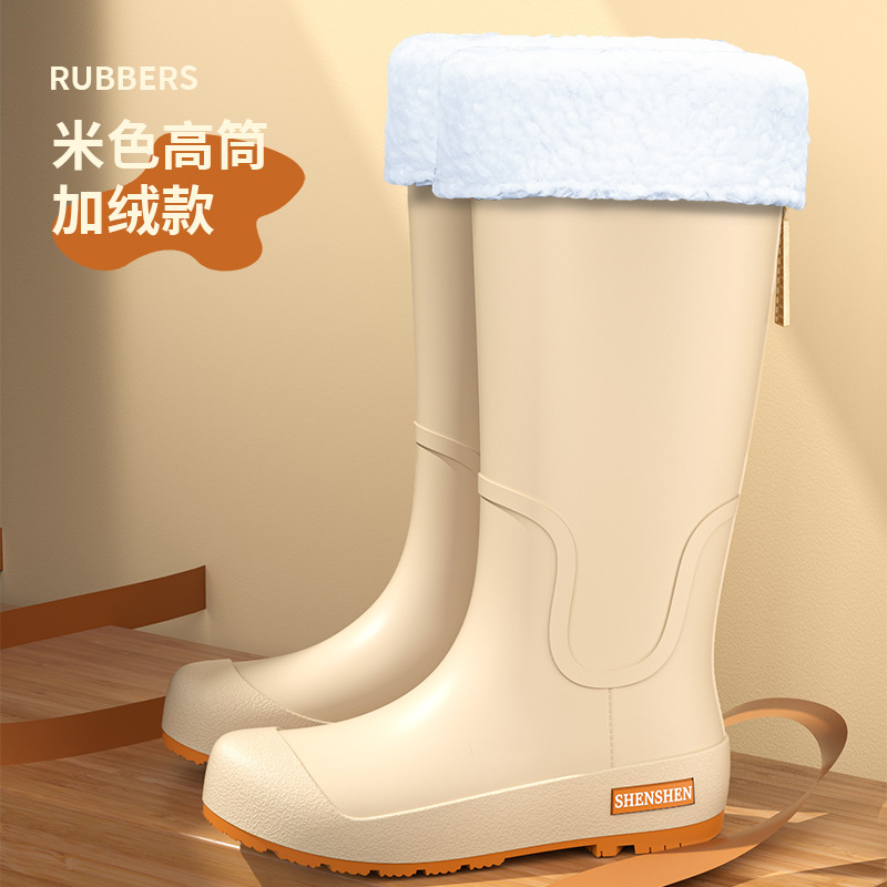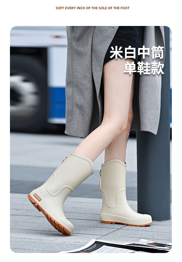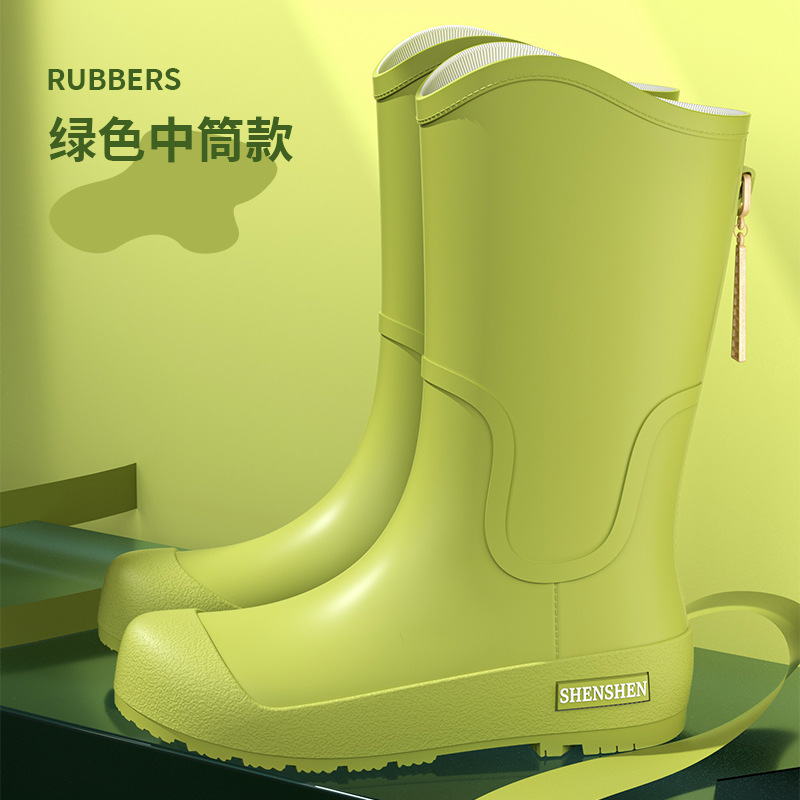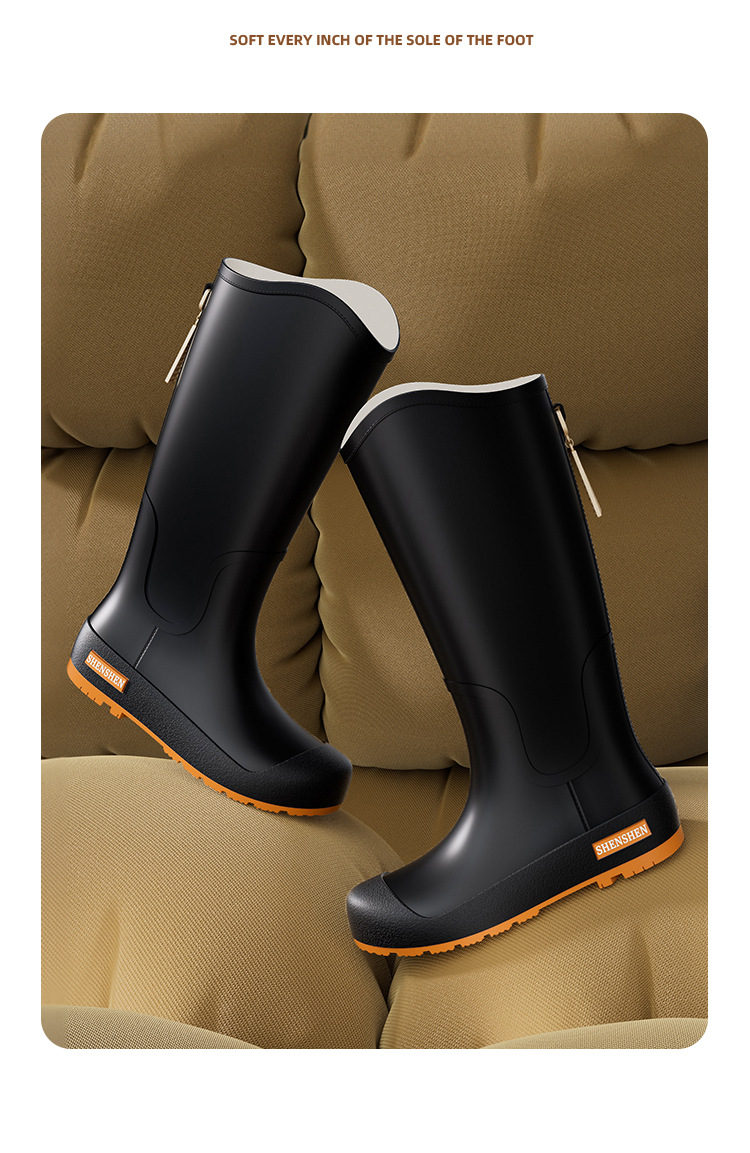 일본식 고층 비 신발 여성 유행 외부 착용 미끄럼 방지 방수 내마모성 통합 고무 신발 주방 긴 부드러운 하단 비 신발
