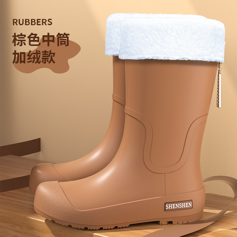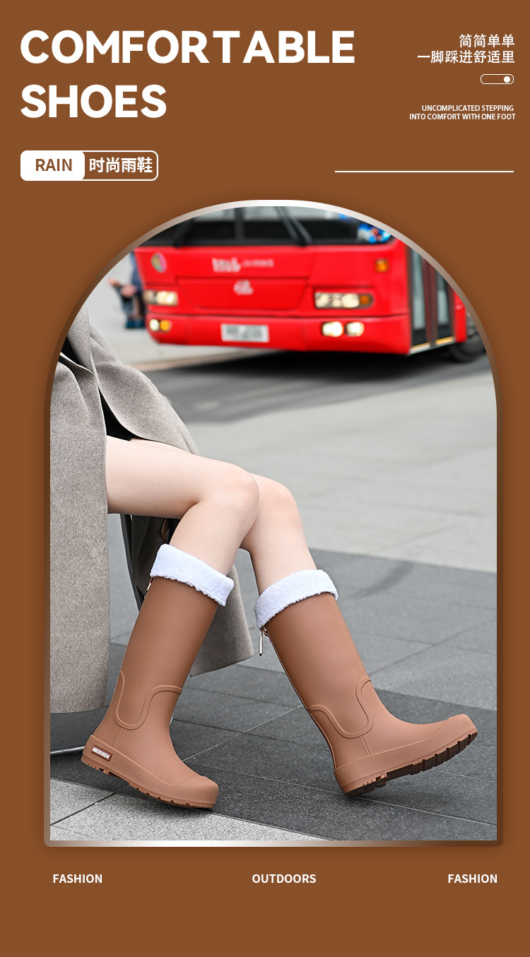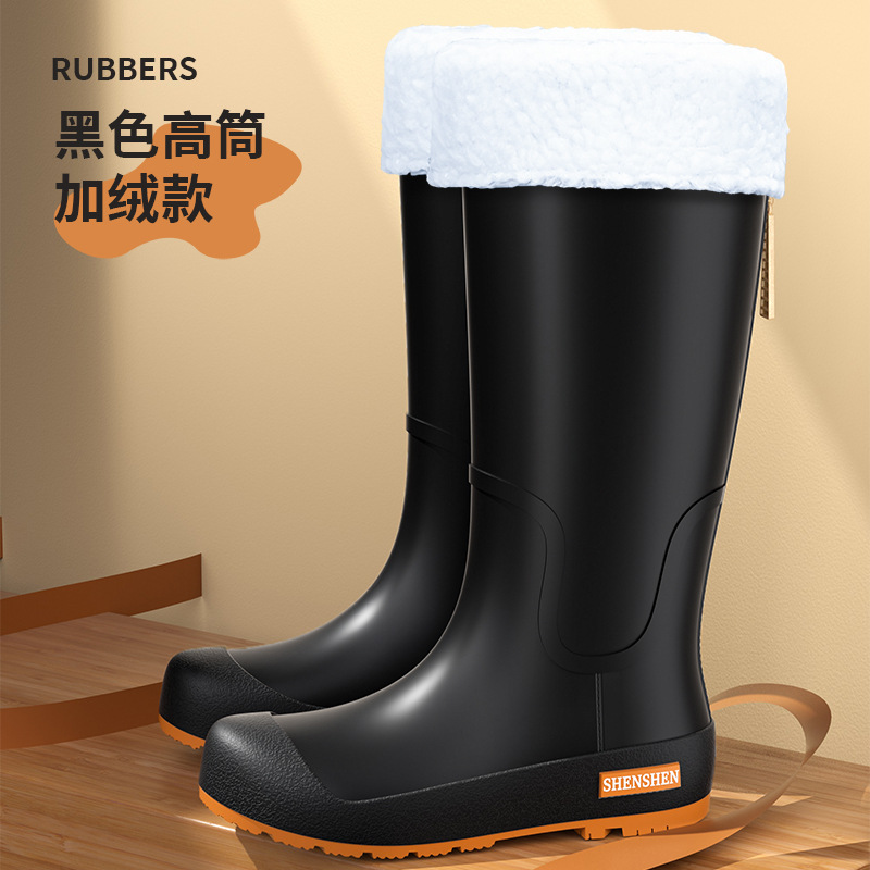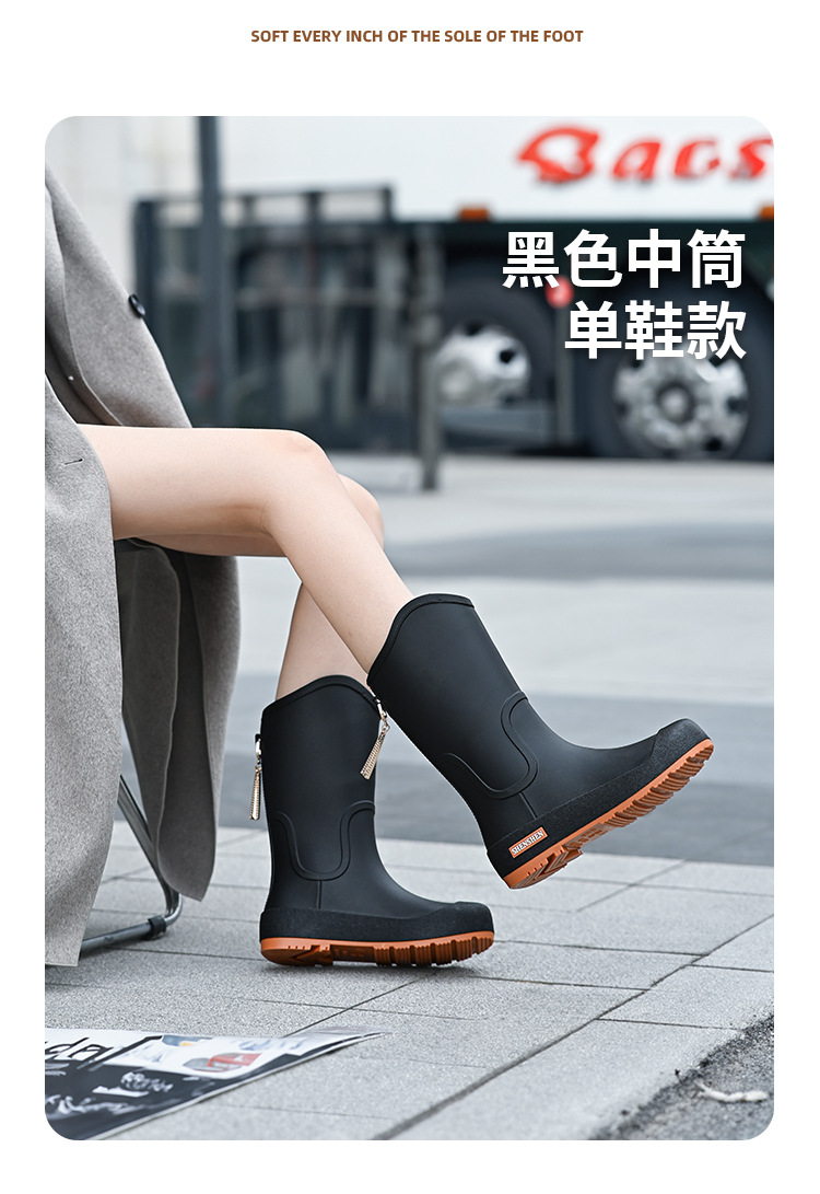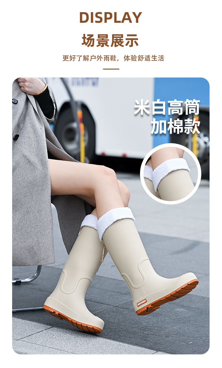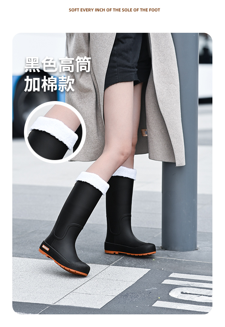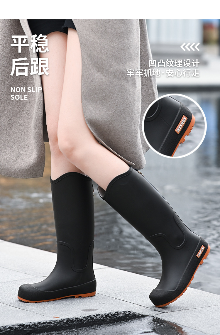 일본식 고층 비 신발 여성 유행 외부 착용 미끄럼 방지 방수 내마모성 통합 고무 신발 주방 긴 부드러운 하단 비 신발스토어 가기