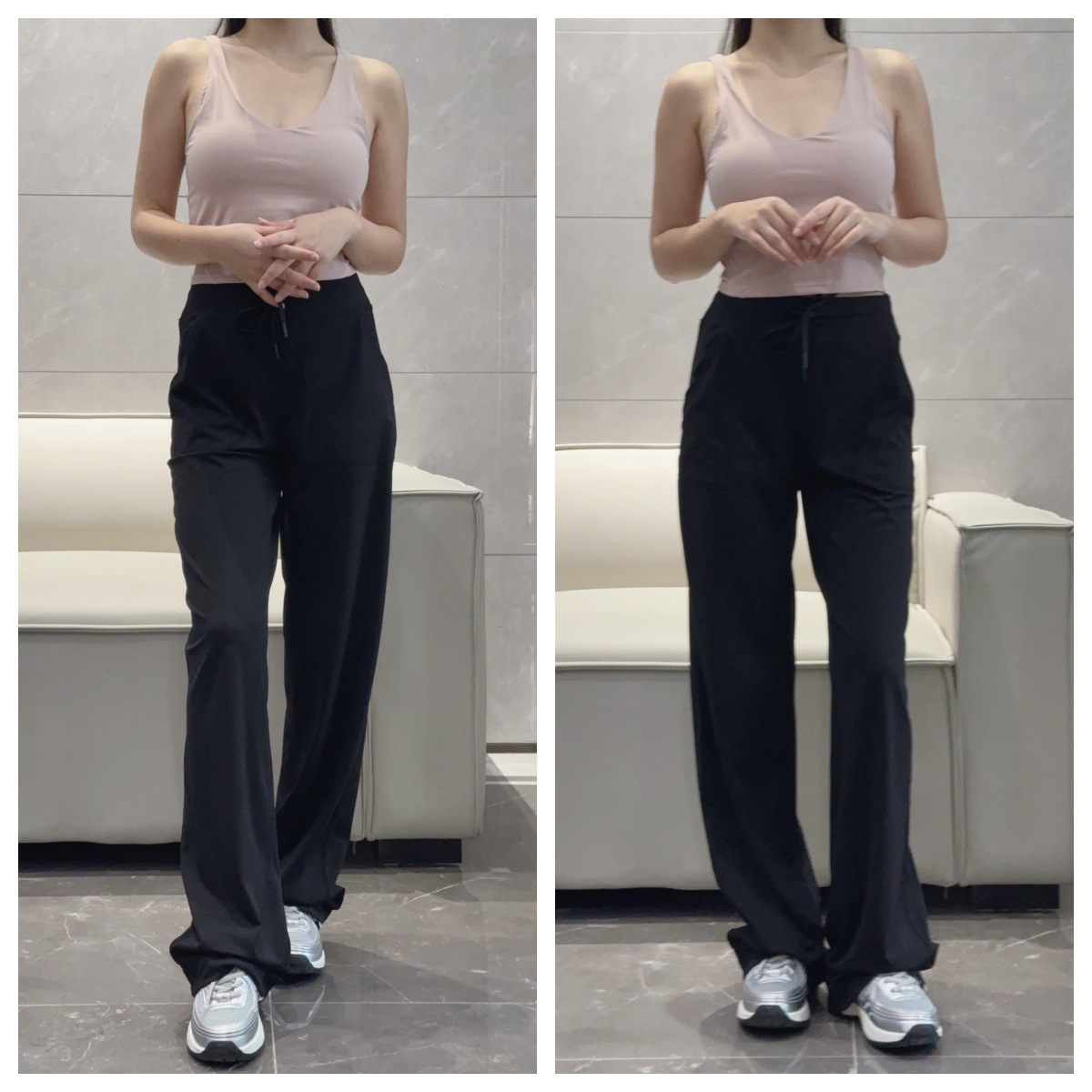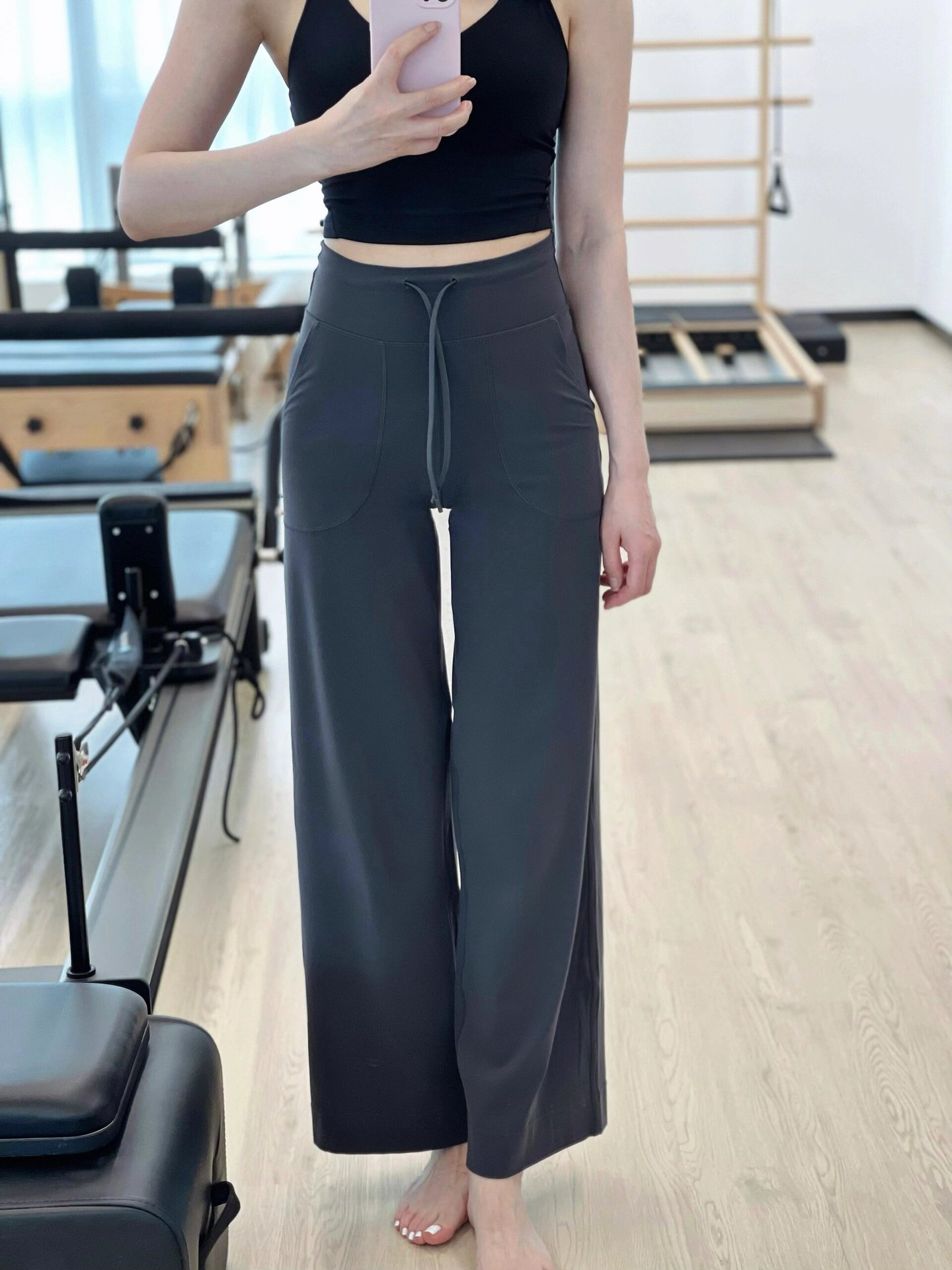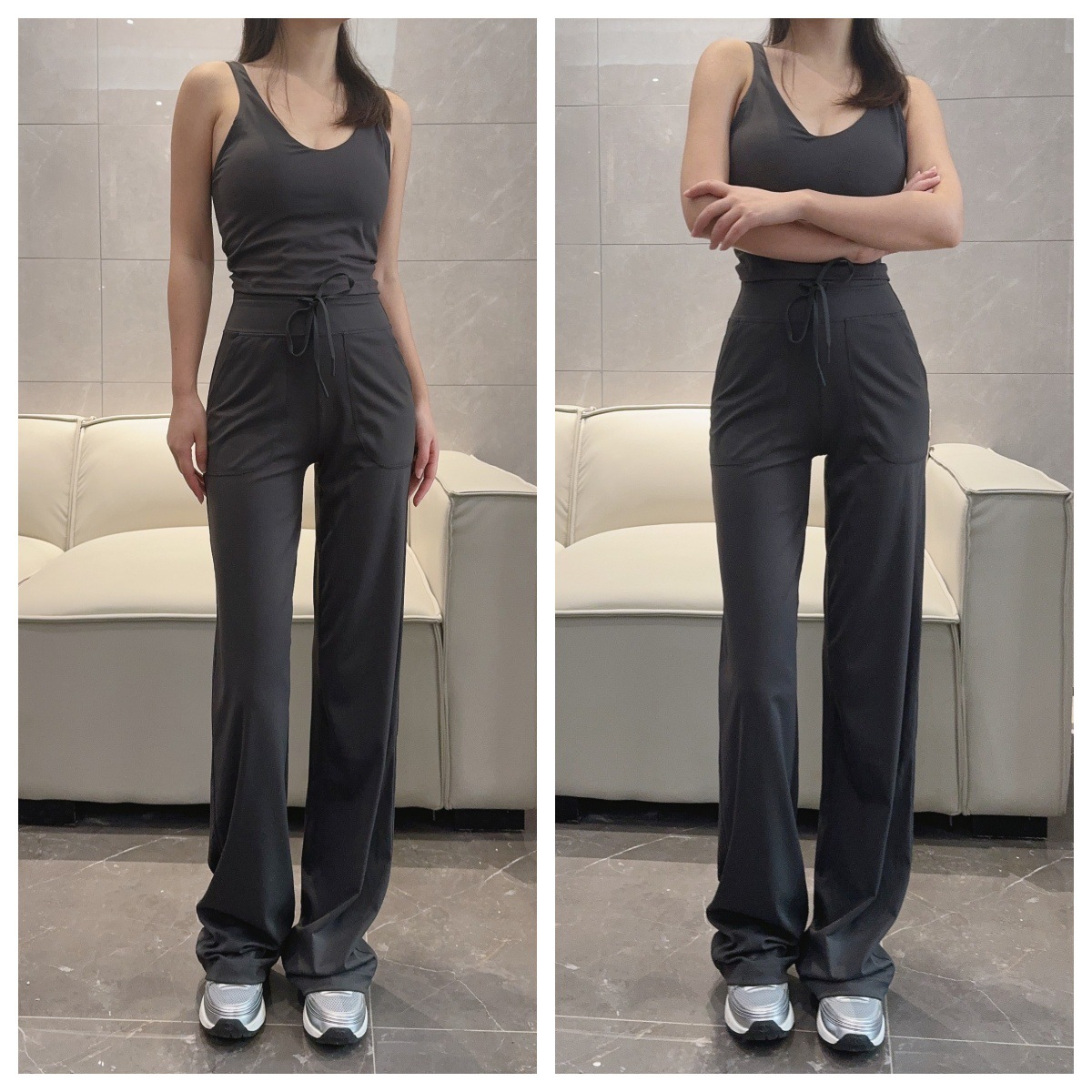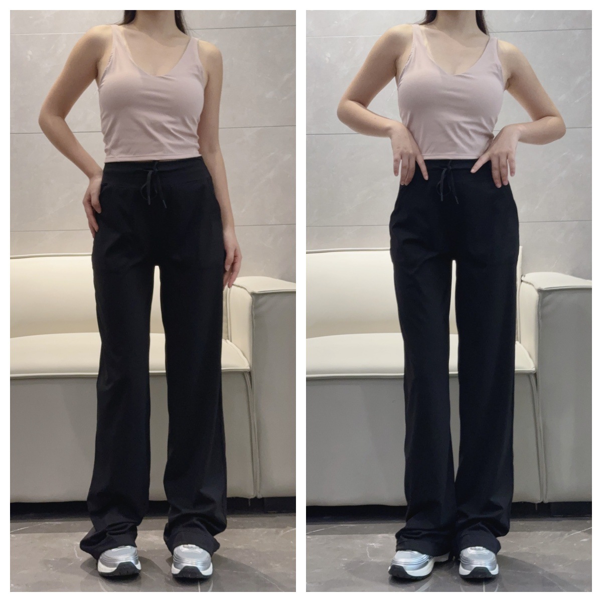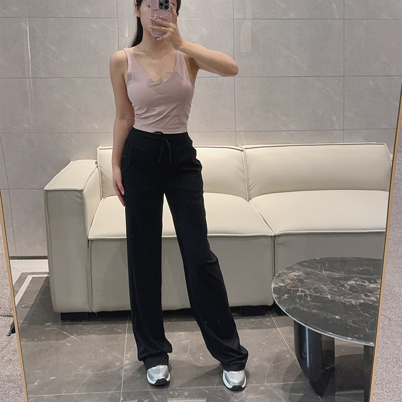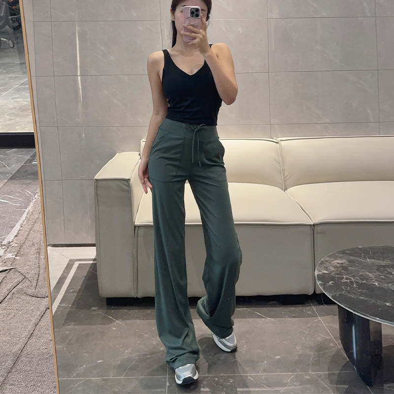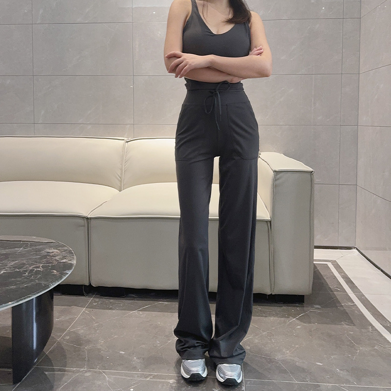 Lulu throwbackstill 요가 스트레이트 레그 와이드 레그 팬츠 여성의 드로우 스트링 높은 허리 투약 느슨한 좁은 바지스토어 가기
