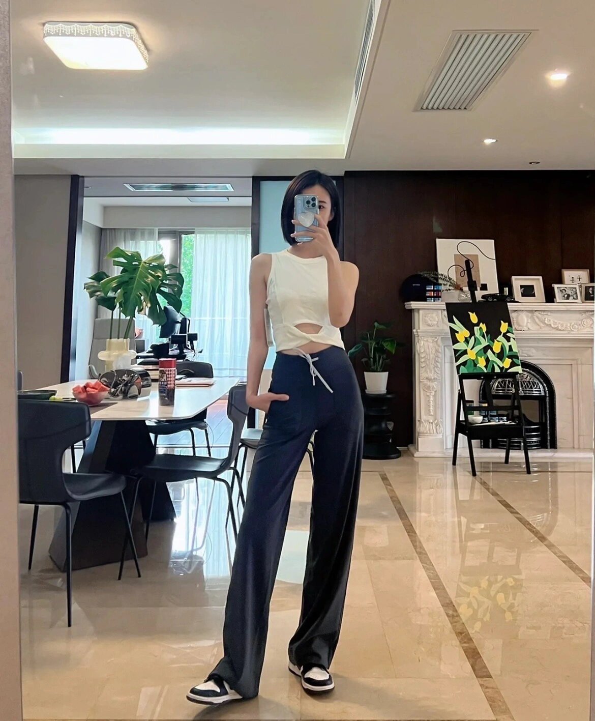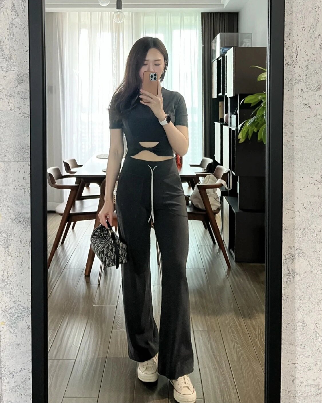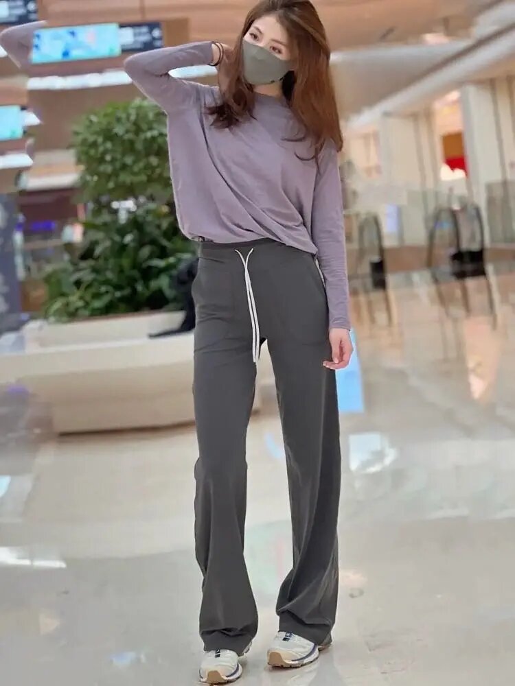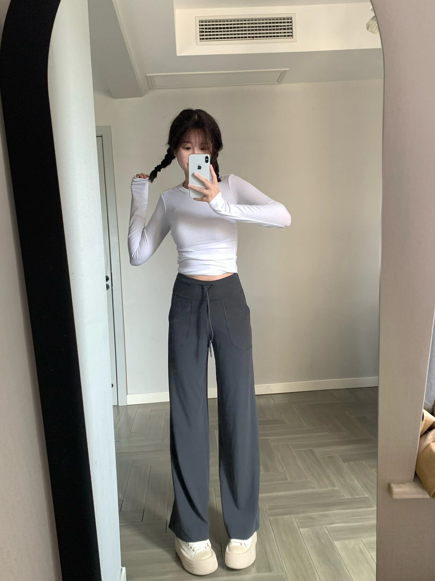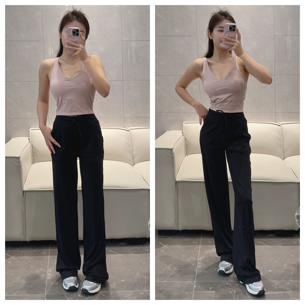 Lulu throwbackstill 요가 스트레이트 레그 와이드 레그 팬츠 여성의 드로우 스트링 높은 허리 투약 느슨한 좁은 바지스토어 가기