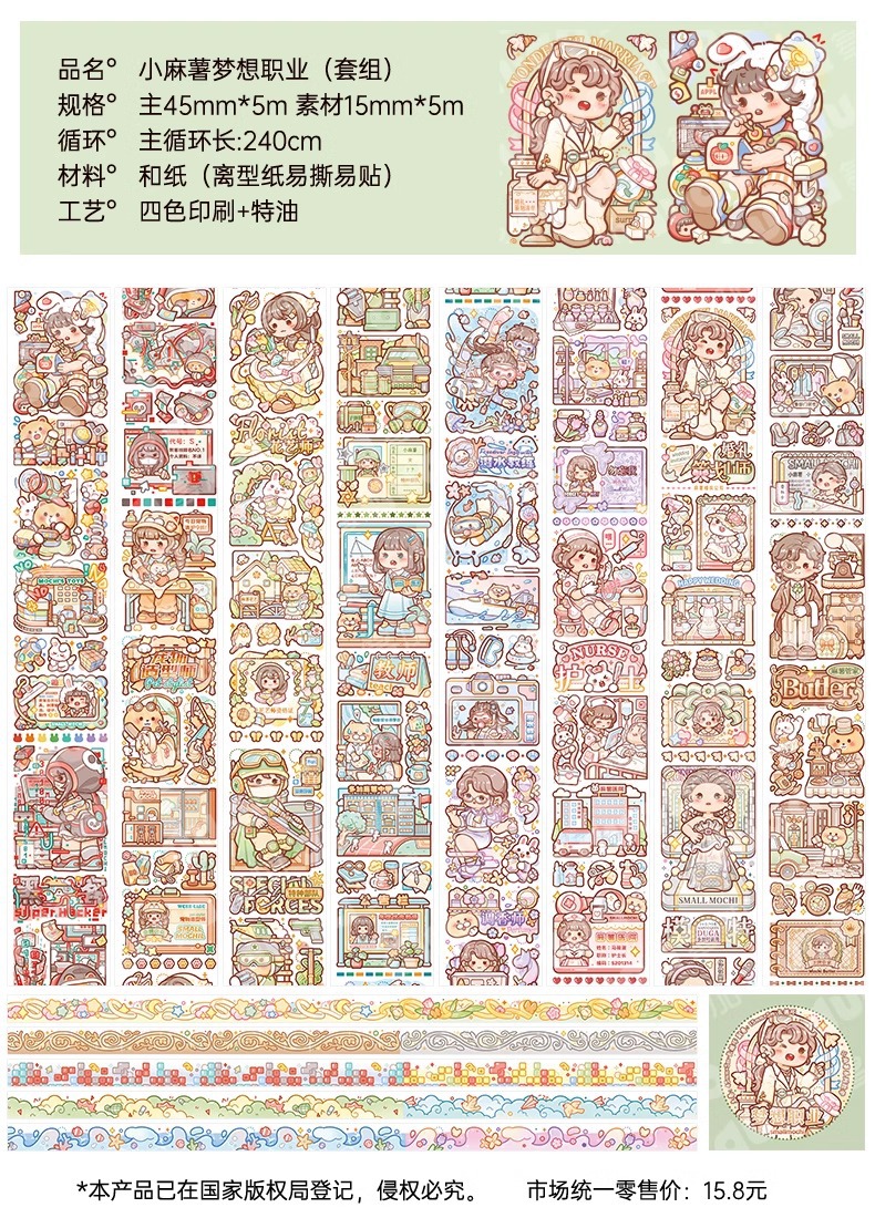 작은 감자 테이프 꿈 전문 세트 새로운 손 계정 테이프 전체 세트 특수 오일 및 종이 손 계정 테이프