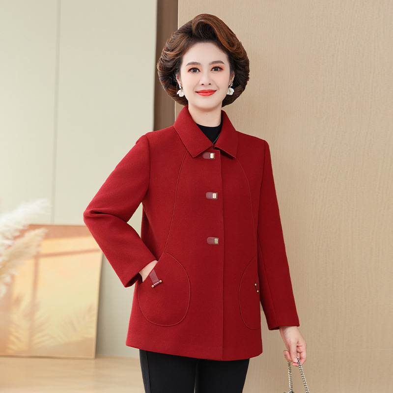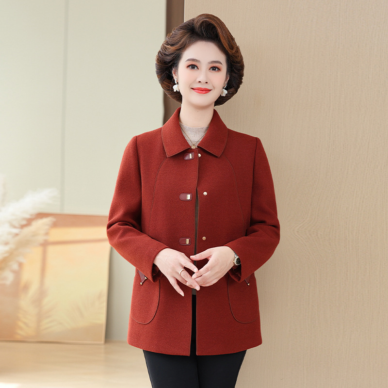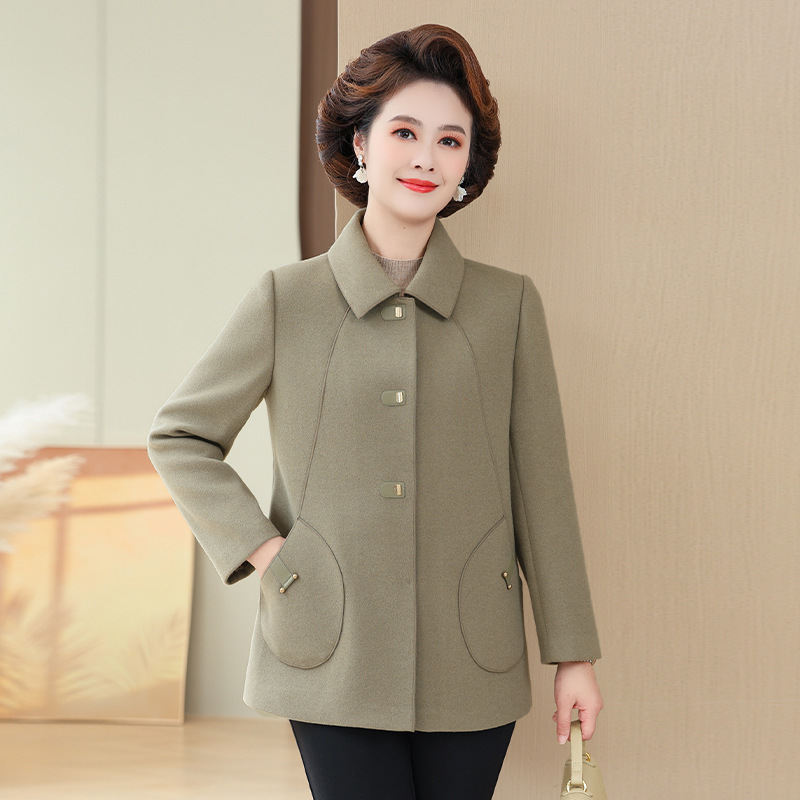 어머니의 캐시미어 모직 코트 중년 여성 하이 엔드 서양식 양면 모직 코트 중년 및 노인 가을 및 겨울 코트스토어 가기