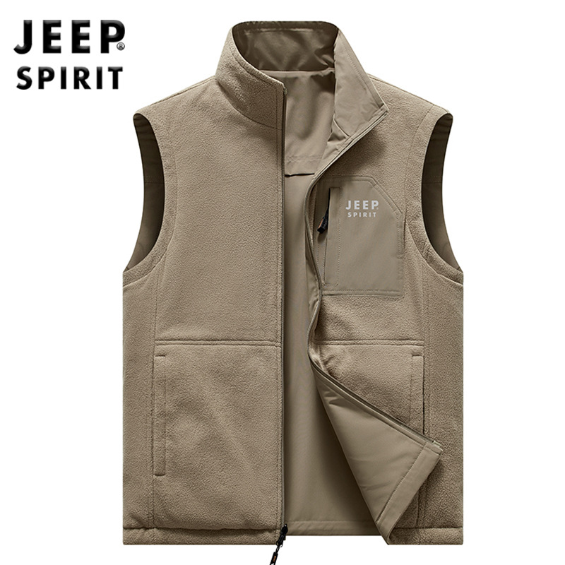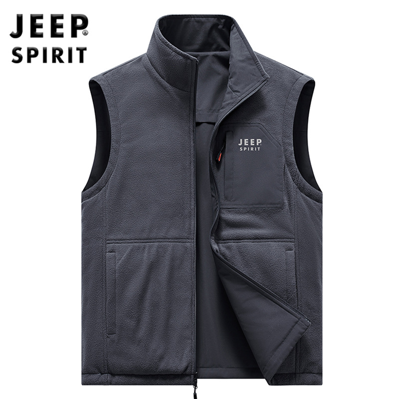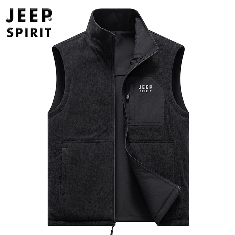 지프 캐주얼 2024 가을 겨울 양면 착용 스탠드 칼라 조끼 빅사이즈 루즈핏 민소매 조끼 남성용 6688